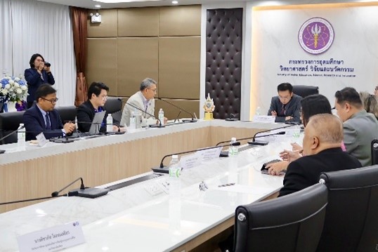 วันอังคารที่ 5 พฤศจิกายน 2567 เวลา 11.00 น.กองส่งเสริมและประสานเพื่อประโยชน์ทางวิทยาศาสตร์ วิจัยและนวัตกรรม โดยสำนักงานโครงการพัฒนาบัณฑิตศึกษาและวิจัยด้านวิทยาศาสตร์และเทคโนโลยี ได้จัดการประชุมหารือ เรื่อง การจัดตั้งศูนย์ความเป็นเลิศด้านการศึกษาทั่วไปและการพัฒนาทักษะข้ามสายงานในสถาบันอุดมศึกษา (Center of Excellence for General Education and Transferable Skills)ณ ห้องประชุมชั้น 4 อาคารพระจอมเกล้า สป.อว. (ถนนโยธี) ร่วมกับการประชุมผ่านสื่อการประชุมออนไลน์ โดยใช้โปรแกรม Zoom Meeting โดยมี ศาสตราจารย์ ดร.ศุภชัย ปทุมนากุล ปลัดกระทรวงการอุดมศึกษา วิทยาศาสตร์ วิจัยและนวัตกรรม เป็นประธาน นายเอกพงศ์ มุสิกะเจริญ ผอ.กปว. ดร.เอกชัย เขื่อนมณี ผยส. อาจารย์จากมหาวิทยาลัยที่เกี่ยวข้อง ข้าราชการและเจ้าหน้าที่ สป.อว. เบื้องต้นที่ประชุมกำหนดให้จัดทำข้อเสนอโครงการ การจัดตั้งศูนย์ความเป็นเลิศด้านการศึกษาทั่วไปฯ ให้แล้วเสร็จภายใน 12 พฤศจิกายน 2567 เพื่อนำเสนอต่อที่ประชุมคณะกรรมการการอุดมศึกษา ในวันที่ 21 พฤศจิกายน 2567 พร้อมกันนี้กำหนดให้จัดตั้งคณะกรรมการอำนวยการ คณะกรรมการบริหาร และคณะทำงานจำนวน 4 ชุด และมอบหมายให้สำนักงานโครงการพัฒนาบัณฑิตศึกษาฯ ทำหน้าที่เป็นฝ่ายเลขานุการเพื่อสนับสนุนการดำเนินงานในด้านที่เกี่ยวข้องต่อไป