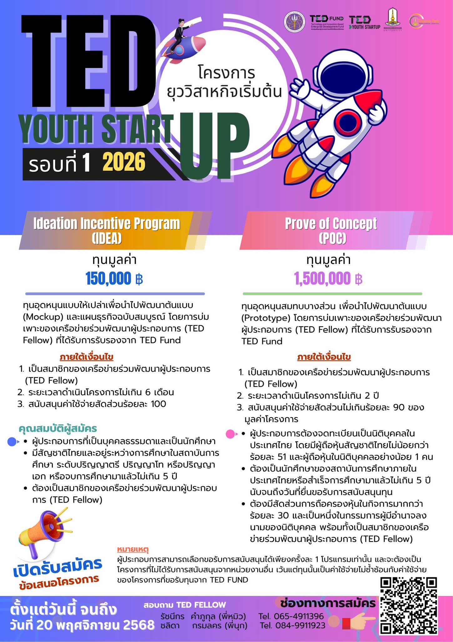 🚀ขยายเวลารับสมัคร! โครงการ “TED Youth Startup 2026” รอบที่ 1