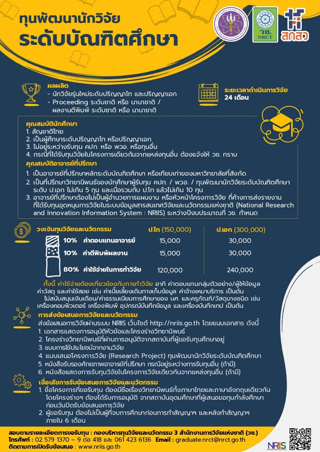1. ทุนพัฒนานักวิจัยระดับบัณฑิตศึกษา