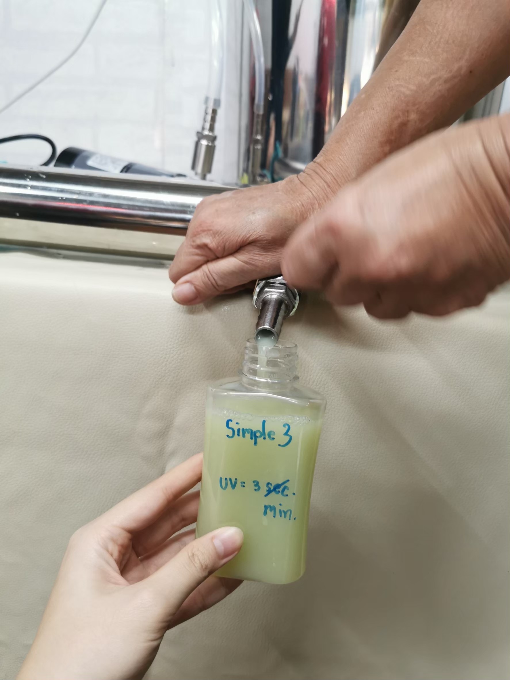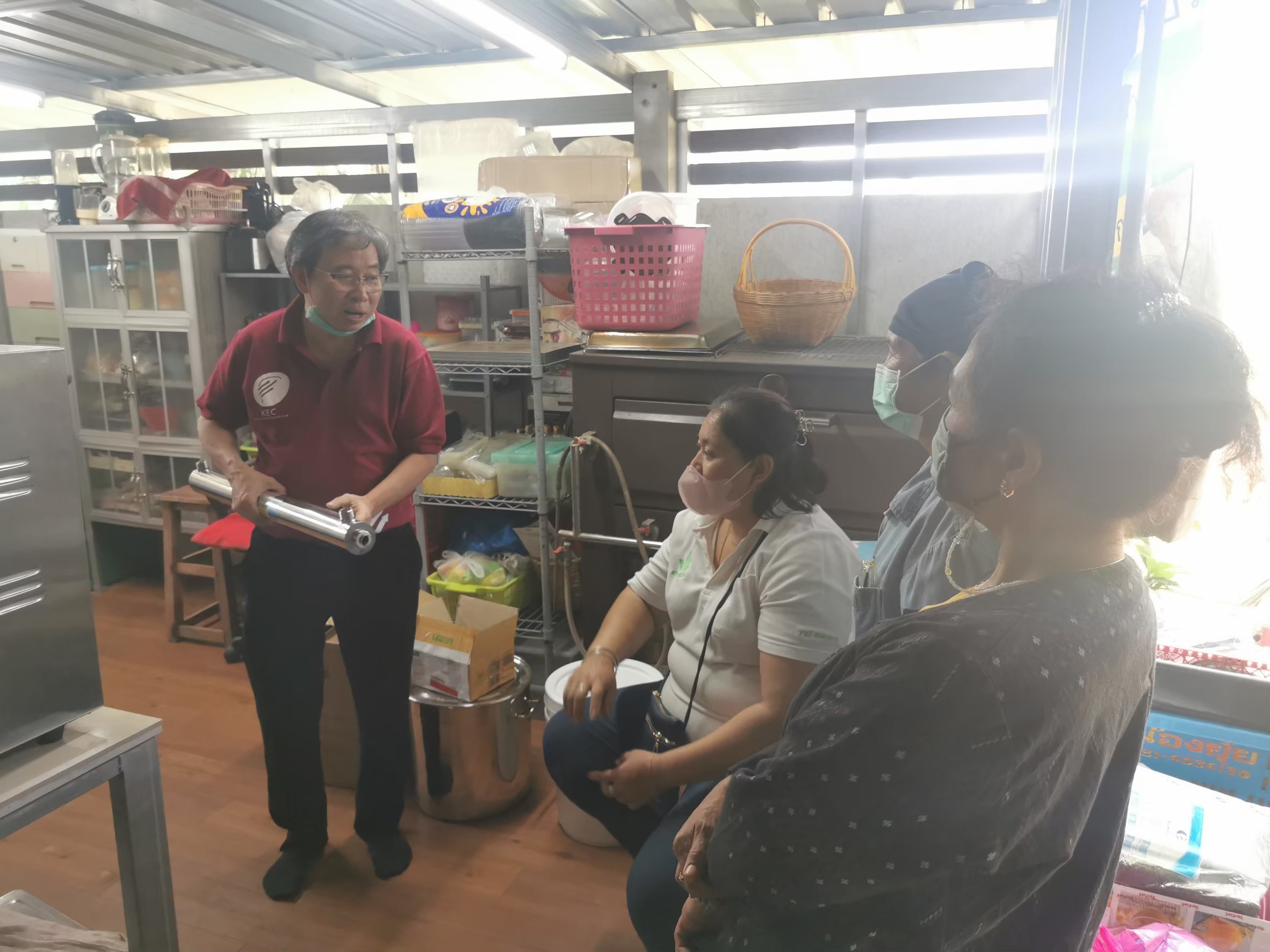 ไตรมาส 3 การให้คำปรึกษา และบริการข้อมูลเทคโนโลยี มหาวิทยาลัยเทคโนโลยีพระจอมเกล้าธนบุรี กิจกรรมที่ 3.1 วันที่ 25 เมษายน 2566 : การต่อยอดการให้คำปรึกษา และถ่ายทอดเทคโนโลยีเรื่องการใช้เครื่อง UVที่พัฒนาขึ้น เพื่อการใช้ฆ่าเชื้อจุลินทรีย์ในน้ำผลไม้ สืบเนื่องจากวิสาหกิจชุมชนปาณิสรา ตำบลหนองนกไข่ จังหวัดราชบุรี มีสมาชิกจำนวน 29 คน ปลูกฝรั่งพันธ์กิมจูและแป้นสีทอง เพื่อขายผลสด ได้เข้าขอรับคำปรึกษา เรื่อง การแปรรูปฝรั่ง ในฤดูกาลที่ราคาฝรั่งตกต่ำ และทีมที่ปรึกษาได้ลงพื้นที และให้คำแนะนำ ในไตรมาสที่ 2 เรื่องการแปรรูปเป็นน้ำฝรั่ง ซึ่งจะขายได้ราคาดีกว่า โดยใช้ฝรั่งตกเกรด และคั้นน้ำฝรั่งด้วยวิธีการสกัดเย็น เพื่อหลีกเลี่ยงการทำลายวิตามินเนื่องจากความร้อน จึงอาจมีเชื้อจุลินทรีย์ปนเปื้อน และทำให้มีอายุการเก็บสั้น ทีมผู้เชี่ยวชาญจึงแนะนำการทำความสะอาดผลฝรั่งเบื้องต้น ด้วย โอโซน และ ทำการพัฒนาเครื่อง UV สำหรับอุตสาหกรรมขนาดเล็ก การดำเนินงาน 1.ผู้เชี่ยวชาญ มหาวิทยาลัยเทคโนดลยีพระจอมเกล้านบุรี ได้ต่อยอดการให้คำปรึกษา โดยการออกแบบ เครื่องฆ่าเชื้อในน้ำผลไม้ ด้วยแสง UV จากนั้นทำการเขียนข้อเสนอโครงการ การยืดอายุน้ำฝรั่งคั้น ด้วยเทคนิค UV Pasteurizationร และได้รับงบสนับสนุนการสร้างเครื่องมือ จากแผนงานการส่งเสริมการนำนวัตกรรมไปใช้ประโยชน์ในพื้นที่เพื่อพัฒนาสังคมและชุมชน (P7) 2. การจัดอบรมถ่ายทอดการใช้เครื่องฆ่าเชื้อน้ำฝรั่ง ด้วย แสง UV ให้แก่ ผู้ปลูกฝรั่งใน ตำบลหนองนกไข่ จำนวน 30 ราย ณ วิสาหกิจชุมชนปาณิสรา ตำบลหนองนกไข่ อำเภอกระทุ่มแบน จังหวัดสมุทรสาคร โดยมีหัวข้อการบรรยายในเรื่อง การถนอมอาหารและหลักปฏิบัติที่ดี การควบคุมคุณภาพน้ำผลไม้ หลักการทำงานของเครื่องฆ่าเชื้อด้วย UV และ Ozone ระบบไฟฟ้า การสาธิตและฝึกทักษะด้านปฏิบัติการ การใช้เครื่องยืดอายุน้ำฝรั่งคั้นสด ด้วยรังสี UV การแก้ปัญหา เมื่อระบบขัดข้อง การทำความสะอาด และวิธีดูแลรักษา ผลการดำเนินงาน