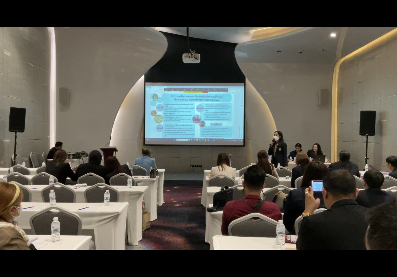 รายงานไตรมาส 4 กิจกรรม 4.15 วันที่ 14 สิงหาคม 2566 เวลา 12.30 -17.00 น. ร่วมกิจกรรม ถอดบทเรียนการดำเนินงานเครือข่ายคลินิกเทคโนโลยี สู่การพัฒนาจังหวัด ในงานประชุมเชิงปฏิบัติการเครือข่าย อว. เพื่อพัฒนาศักยภาพจังหวัด ด้วยวิทยาศาสตร์ วิจัยและนวัตกรรม ประจำปี 2566 ณ ศูนย์แสดงสินค้าและการประชุมอิมแพ็ค เมืองทองธานี จังหวัดนนทบุรี โดยเข้ารับฟังและนำเสนอโครงการที่ได้รับงบประมาณประจำปีงบประมาณ พ.ศ.๒๕๖๖ ภายใต้แพลตฟอร์ม TCS/NCB/BCE/SCI ของกลุ่มเครือข่ายภาคกลางและภาคตะวันออก จำนวน 22 หน่วยงาน จำนวน ๒๘ โครงการ ทำการนำเสนอผลสำเร็จโครงการที่ได้รับงบสนับสนุน คือแพลตฟอร์ม โครงการบริการให้คำปรึกษาและข้อมูลเทคโนโลยี มหาวิทยาลัยเทคโนโลยีพระจอมเกล้าธนบุรี ปีงบประมาณ 2566 โดย ดร. วรวิทย์ โกสลาทิพย์ ผู้จัดการคลีนิคเทคโนยี และ ผศ. ดร. ทัศวัลย์ คัมภีระพันธุ์ ที่ปรึกษาและผู้ประสานงาน คลินิกเทคโนโลยี มหาวิทยาลัยเทคโนโลยีพระจอมเกล้าธนบุรี ณ ห้อง Venus 4 ผลการดำเนินงาน :รายงานข้อมูลการดำเนินงานให้แก่คณะกรรมการ และรับฟังผลสำเร็จของคลินิก มหาวิทยาลัยอื่นๆ ในเครือข่าย เพื่อนำมาพิจารณามาบูรณาการทำงานร่วมกันหากมีเป้าหมายที่สอดคล้องกัน หรือให้ความช่วยเหลือซึ่งกันและกันได้ ได้รับทราบข้อสรุป และข้อเสนอแนะจากคณะกรรมการ ในเรื่อง ต่างๆ เช่น ยังไม่ค่อยเห็นการนำเสนอผลงานที่นำไปต่อยอด การคิดค่า B/C ratio ที่ยังไม่ถูกต้อง เป็นต้น รายงานโดย ผศ.ดร.ทัศวัลย์ คัมภีระพันธุ์ วันที่รายงาน 10/09/2566 [15401] |