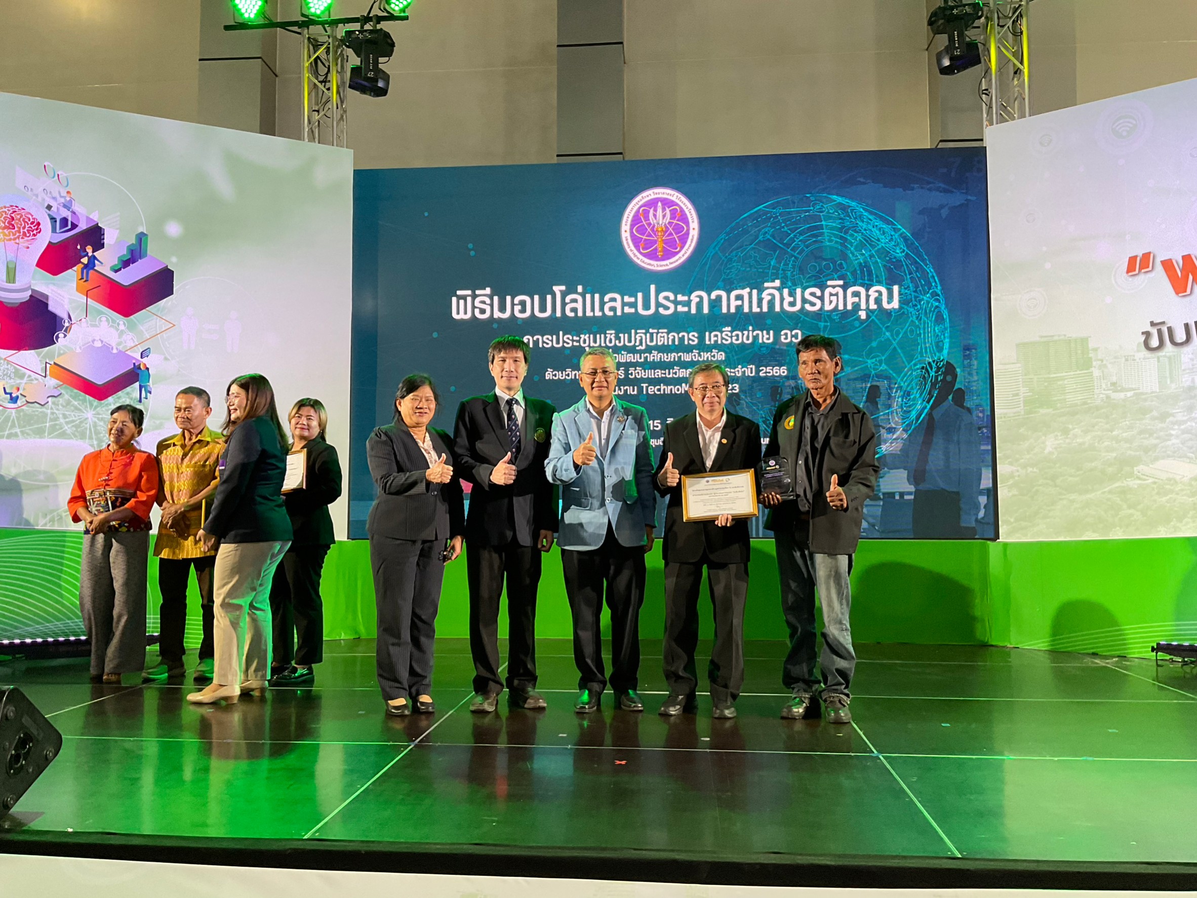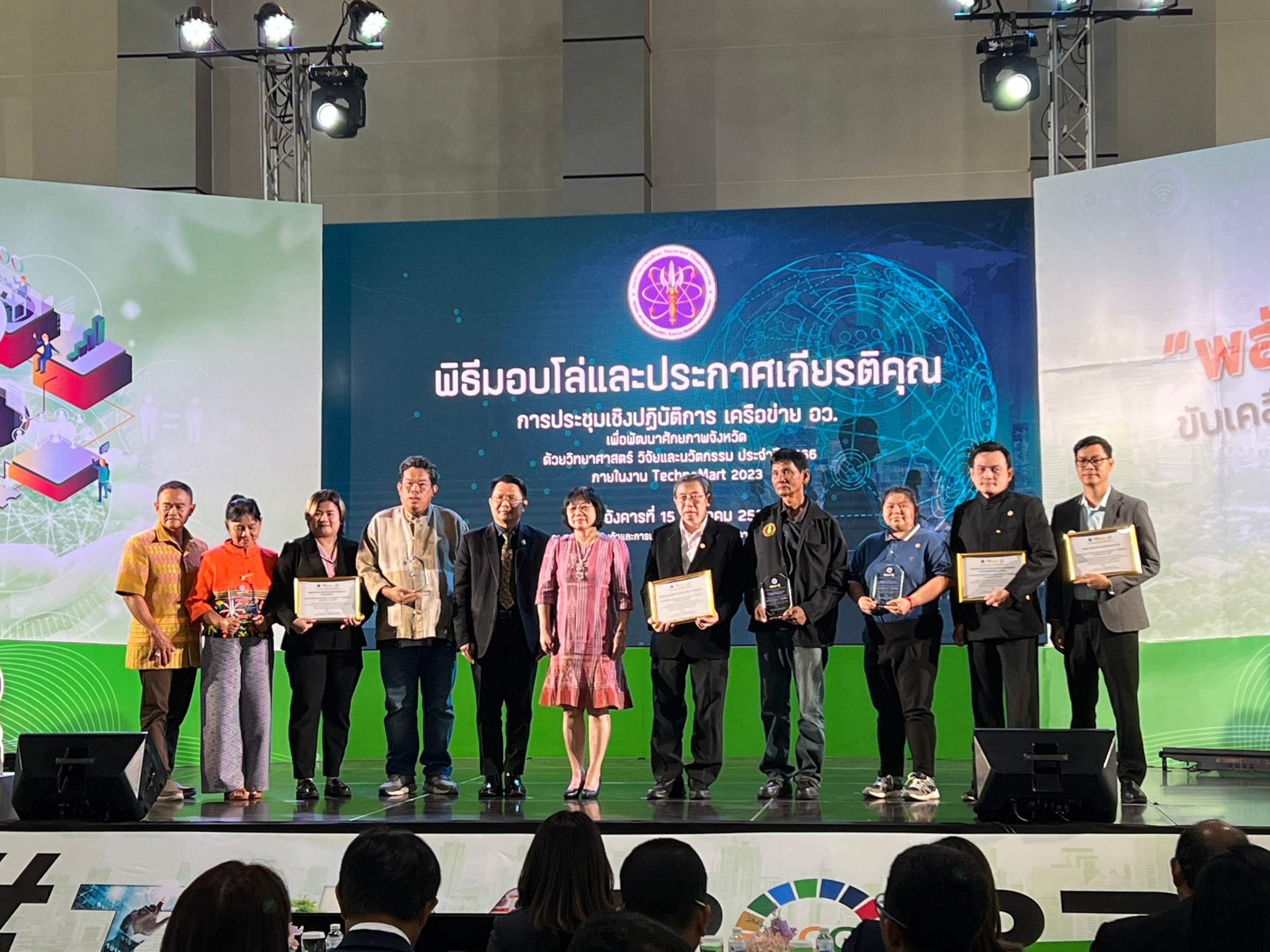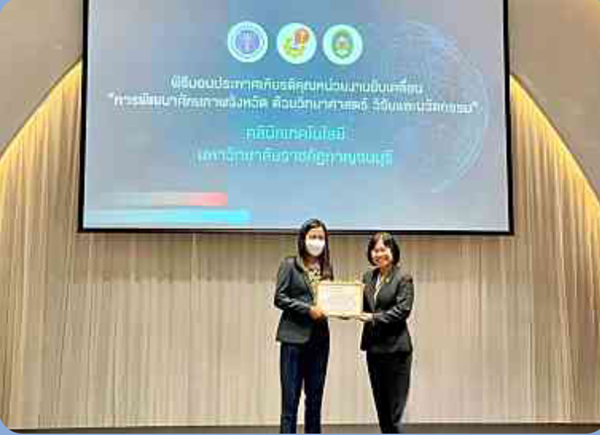 รายงานไตรมาส 4 กิจกรรมที 4.17 วันที่ 15 สิงหาคม 2566 ร่วมกิจกรรม พิธีมอบโล่และประกาศเกียรติคุณ หมู่บ้านวิทยาศาสตร์ ระดับดีเด่น จำนวน 13 แห่ง และผู้ประกอบการชุมชน ระดับดีเด่น จำนวน ๔ แห่ง ในงานประชุมเชิงปฏิบัติการเครือข่าย อว. เพื่อพัฒนาศักยภาพจังหวัด ด้วยวิทยาศาสตร์ วิจัยและนวัตกรรม ประจำปี 2566 ณ ศูนย์แสดงสินค้าและการประชุมอิมแพ็ค เมืองทองธานี จังหวัดนนทบุรี การดำเนินงาน คลีนิคเทคโนโลยี มหาวิทยาลัยเทคโนโลยีพระจอมเกล้าธนบุรี ได้รับวงบประมาณสนับสนุนในโครงการ ในแพลตฟอร์มเพิ่มศักยภาพธุรกิจชุมชน (Business Community Enterprise: BCE) เพื่อพัฒนาวิสาหกิจชุมชนแปรรูปและสร้างมูลค่าจากเปลือก ใบ และต้นสับปะรด ใน ปี 2564 และ 2565 โดยสามารถทำให้ วิสาหกิจชุมชนมี รายได้จากการตีเส้นใยสับปะรด พร้อมพัฒนาเครื่องมื่อที่ใช้ในการปรกอบกิจการ จนได้เส้นใยที่มีคุณภาพสูง ตามความต้องการของลูกค้า สามารถเพิ่มรายได้จากการขายเส้นใยสับปะรดแห้ง กิโลกรัมละ 250 -300 บาทเป็นกิโลกรัมละ 380 -400 บาท และนำมาแปรรูปเป็นผ้าจากเส้นใยสับปะรด แปรรูปเป็นสินค้าหัตถกรรมที่เป็นสินค้าของชุมชนเอง ผลการดำเนินงาน สป อว ได้พิจารณาโครงการในแพลตฟอร์มเพิ่มศักยภาพธุรกิจ(Business Community Enterprise: BCE) ปี 2564 และ 2565 ที่มีผลงานดีเด่น จำนวน 4 แห่ง โดยโครงการ วิสาหกิจชุมชนแปรรูปและสร้างมูลค่าจากเปลือก ใบ และต้นสับปะรด เป็นหนึ่งในโครงการที่ได้รับพิจารณา ให้เป็นโครงการดีเด่น เข้ารับโล่รางวัล และ ประกาศนียบัตร จาก นางสาวสุณีย์ เลิศเพียรธรรมหัวหน้าผู้ตรวจราชการกระทรวงการอุดมศึกษา วิทยาศาสตร์ วิจัยและนวัตกรรม นายสมชาย อุไกรหงษา ประธานวิสาหกิจชุมชน และ ดร วรวิทย์ โกสลาทิพย์ หัวหน้าโครงการ เป็นผู้เข้ารับรางวัลดังกล่าว โดยมี ผศ. ดร.ตุลา จูฑะรสก คณบดีคณะวิทยาศาสตร์ มหาวิทยาลัยเทคโนโลยีพระจอมเกล้าธนบุรี เข้าร่วมแสดงความยินดีด้วย รายงานโดย ผศ.ดร.ทัศวัลย์ คัมภีระพันธุ์ วันที่รายงาน 18/09/2566 [15633] |