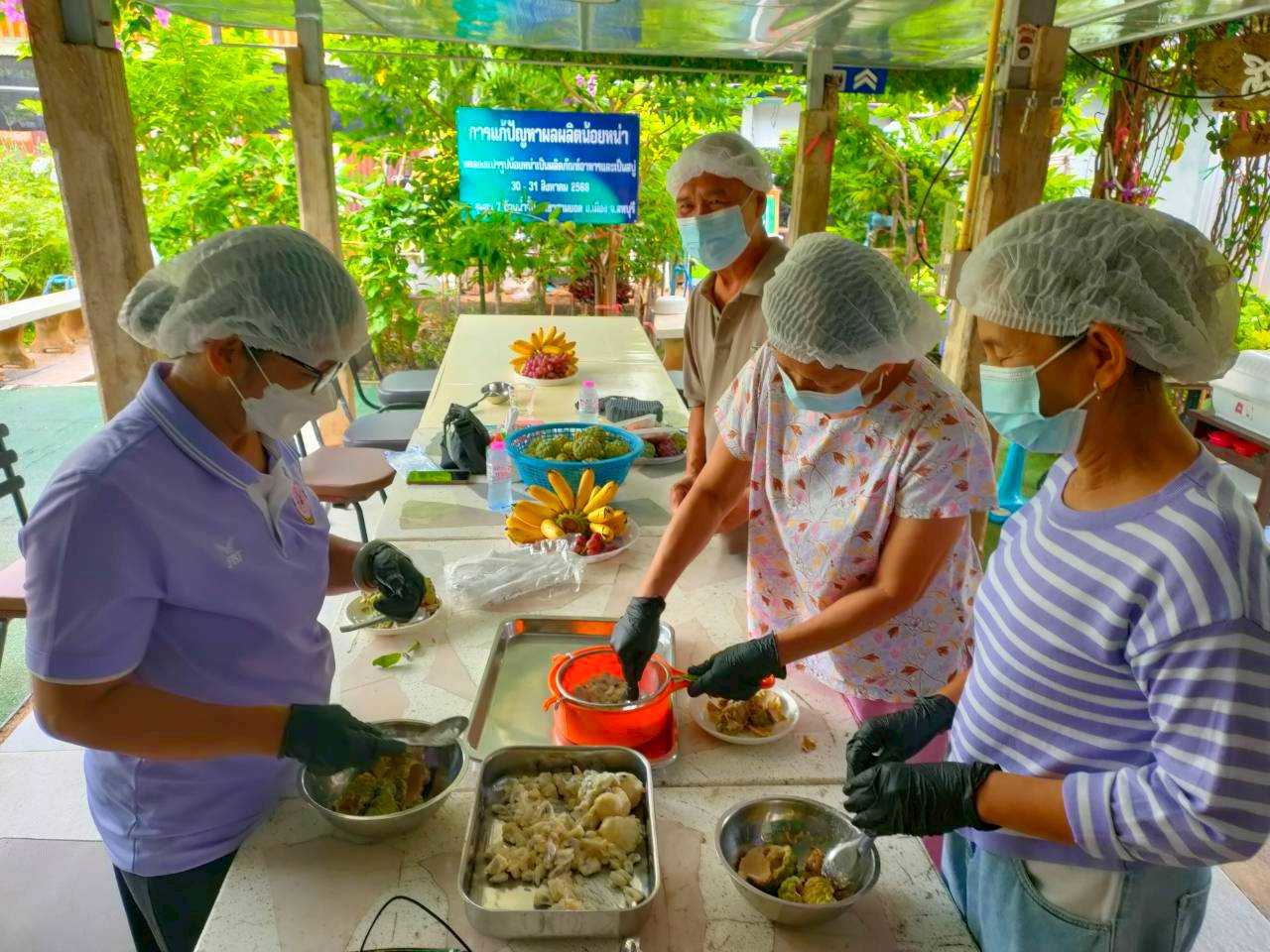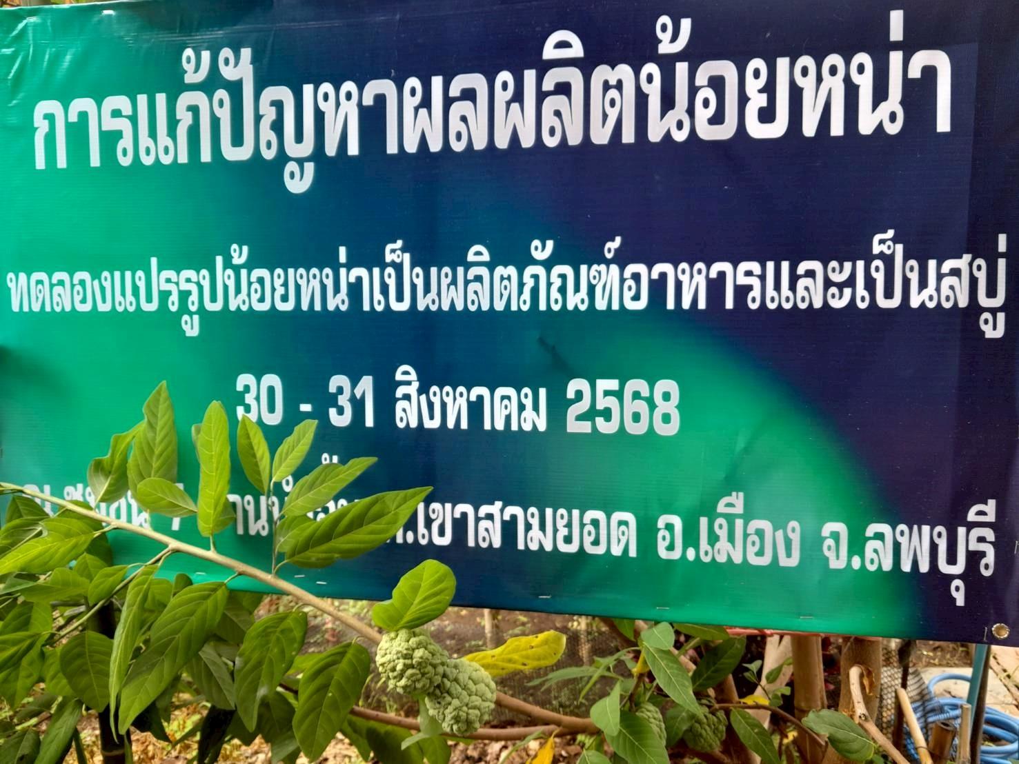 เมื่อวันที่ 30-31 สิงหาคม 2568 นำโดย ผู้ช่วยศาสตราจารย์ ดร.ภาราดร งามดี ได้ลงพื้นที่ ณ ชุมชนผู้ปลูกน้อยหน่าบ้านน้ำจั้น ตั้งอยู่ที่หมูที่ 2 ตำบลเขาสามยอด อำเภอเมือง จังหวัดลพบุรี ซึงผู้นำชุมชนได้แจ้งปัญหาเข้ามาทางสำนักงานคลินิกเทคโนโลยี มหาวิทยาลัยราชภัฏเทพสตรี เรื่อง การเน่าเสียของผลผลิตน้อยหน่า ทางคลินิกเทคโนโลยีจึงประสานงานไปทางผู้ช่วยศาสตราจารย์ ดร.ภาราดร งามดี ผู้ที่มีเชี่ยวชาญทางด้านวิทยาศาสตร์การอาหาร พร้อมทีมวิทยากร เพื่อลงพื้นที่แก้ปัญหาดังกล่าว ทางผู้ช่วยศาสตราจารย์ ดร.ภาราดร งามดี และทีมวิทยากรได้จัดทำองค์ความรู้และถ่ายทอดเทคโนโลยีการแปรรูปอาหารโดยการทำให้น้อยหน่าที่ได้รับผลกระทบแปรรูปเป็นกัมมี่น้อยหน่า และลูกอมน้อยหน่า ในส่วนการถ่ายทอดองค์ความรู้ลำดับที่ 2 คือการแปรรูปผลิตภัณฑ์น้อยหน่าให้เป็นสบู่กรีเซอรีน ทางผู้เข้าร่วมอบรมได้รับความรู้ที่ได้รับนำไปประยุกต์ใช้และแก้ปัญหาผลผลิตน้อยหน่าที่เสียหายได้