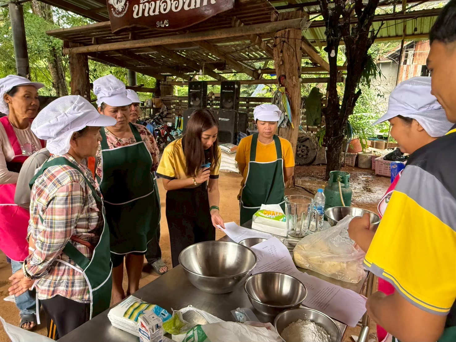 วันที่ 29 กรกฎาคม 2568 คลินิกเทคโนโลยี มหาวิทยาลัยราชภัฏกาญจนบุรี ลงพื้นที่ถ่ายทอดเทคโนโลยีด้าน "การแปรรูปและพัฒนาผลิตภัณฑ์จากผลไม้ท้องถิ่น (ทุเรียน)" โดยวิทยากร ผู้ช่วยศาสตราจารย์ณัฐณิชา ทวีแสงและอาจารย์สุวิมล กะตากูล เรเกอร์ส คณะวิทยาศาสตร์และเทคโนโลยี ณ วิสาหกิจชุมชนกลุ่มสตรีพัฒนาสะพานลาว ตำบลสหกรณ์นิคม อำเภอทองผาภูมิ จังหวัดกาญจนบุรี