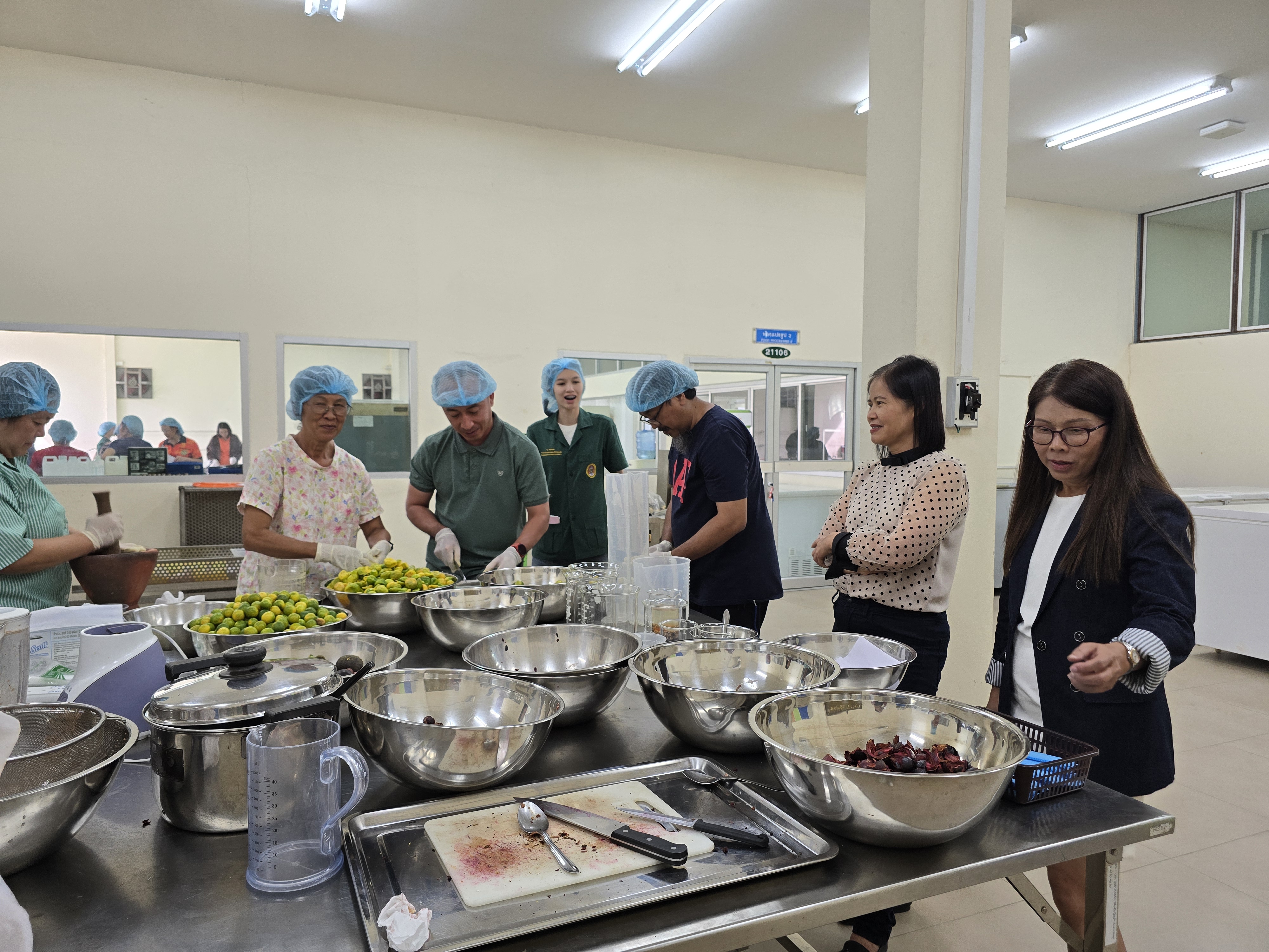 รายงานผลการดำเนินงาน ไตรมาสที่ 3 ประจำปีงบประมาณ 2568 เดือนเมษายน 2568 - มิถุนายน 2568 กิจกรรมที่ 4 ให้คำปรึกษาการพัฒนาศักยภาพสินค้าเกษตร จังหวัดตราด สำนักงานเกษตรและสหกรณ์จังหวัดตราด กำหนดจัดฝึกอบรมเกษตรกรโครงการ ฝึกอบรมเชิงปฏิบัติการเพื่อพัฒนาศักยภาพสินค้าเกษตรวิสาหกิจชุมชนบ้านห้วยแร้ง ภายใต้โครงการสินค้าเกษตรและบริการมูลค่าสูง 1 ท้องถิ่น 1 สินค้าเกษตรมูลค่าสูง ประจำปึงบประมาณ พ.ศ. 2568 โดยมี วัตถุประสงค์เพื่อดำเนินการพัฒนาผลิตภัณฑ์หรือบรรจุภัณฑ์เพื่อเพิ่มมูลค่าให้สูงขึ้นตามแผนความต้องการ การพัฒนาสินค้าเกษตรแปรรูปมูลค่าสูงของวิสาหกิจชุมชนบ้านห้วยแร้ง อำเภอเมือง จังหวัดตราด ชนิดพืชสับปะรดตราดสีทอง โดยใช้งานวิจัย/เทคโนโลยี/นวัตกรรมที่เกี่ยวข้องในการพัฒนาผลิตภัณฑ์ซึ่งวิสาหกิจชุมชน สามารถดำเนินการผลิตและจำหน่ายได้ในเชิงพาณิชย์อย่างต่อเนื่อง ในการนี้ สำนักงานเกษตรและสหกรณ์จังหวัดตราด จึงขอความอนุเคราะห์ท่านสนับสนุนวิทยากรจากมหาวิทยาลัยราชภัฏรำไพพรรณี เป็นวิทยากรอบรมให้ความรู้ โดยมีทีมวิทยากรไปให้ความรู้จำนวน 3 ท่าน ได้แก่ 1. ผู้ช่วยศาสตราจารย์ ดร.เดือนรุ่ง เบญจมาศ ตำแหน่ง ที่ปรึกษาอธิการบดี มหาวิทยาลัยราชภัฎรำไพพรรณี (ผู้เชี่ยวชาญด้านการแปรรูปผลผลิตทางการเกษตร) 2. นายคฑาวุธ สว่างดี ตำแหน่ง เจ้าหน้าที่คลินิกเทคโนโลยี 3. นางสาวสุวนันท์ เนื่องแนวน้อย ตำแหน่ง เจ้าหน้าที่วิจัยและพัฒนาผลิตภัณฑ์ ในโครงการฝึกอบรมเชิงปฏิบัติการเพื่อพัฒนาศักยภาพสินค้าเกษตรวิสาหกิจชุมชนบ้านห้วยแร้ง ภายได้โครงการสินค้าเกษตรและบริการมูลค่าสูง 1 ท้องถิ่น 1 สินค้าเกษตรมูลค่าสูง ประจำปีงบประมาณ พ.ศ.2568 ในวันที่ 6 มิถุนายน 2568 เวลา 08.30 – 17.00 น. ณ ห้องประชุมเกษตรจังหวัดตราด อำเภอเมือง จังหวัดตราด กิจกรรมการให้คำปรึกษาจะมีการบรรยายการผลิตอาหารให้เป็นไปตามข้อกำหนด GMP และการพัฒนาผลิตภัณฑ์คอมบูชาสับปะรด (เป็นผลิตภัณฑ์ที่วิจัยและพัฒนาโดยศูนย์วิจัยและพัฒนานวัตกรรมสินค้าเกษตรและอาหารภาคตะวันออก) วิทยากรบรรยาย โดย ผู้ช่วยศาสตราจารย์ ดร.เดือนรุ่ง เบญจมาศ และการฝึกปฏิบัติการแปรรูปผลิตภัณฑ์คอมบูชา สำเร็จรูป วิทยากรสาธิตและฝึกปฏิบัติโดย นายคฑาวุธ สว่างดี และ นางสาวสุวนันท์ เนื่องแนวน้อย มีผู้เข้ารับการบรรยายและฝึกอบรม จำนวน 12ท่าน ประกอบด้วยนักวิชาการส่งเสริมการเกษตร จำนวน 5 ท่าน และสมาชิกกลุ่มบ้านห้วยแร้ง จำนวน 7 ท่าน - ผลิตภัณฑ์ที่ได้คือ คอมบูชาสับปะรด - ผลิตภัณฑ์ที่ทำการต่อยอดหลังจากการอบรม คือ คอมบูชาสับปะรด ผสมขิง (พัฒนาต่อยอ