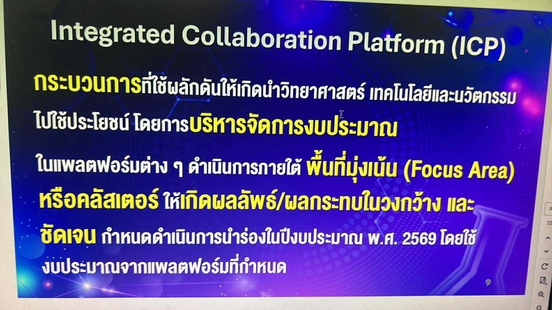 คลินิกเทคโนโลยี เข้าร่วมประชุมเชิงปฏิบัติการเรื่อง “การพัฒนาศักยภาพเครือข่ายขับเคลื่อนและส่งเสริมการใช้ประโยชน์งานด้านวิทยาศาสตร์ วิจัยและนวัตกรรม ในระดับภูมิภาค” ปีงบประมาณ พ.ศ. 2568 พื้นที่ภาคตะวันออกเฉียงเหนือ ตั้งแต่วันที่ 21 - 22 กันยายน 2568 ณ อาคารอำนวยการอุทยานวิทยาศาสตร์ภูมิภาค ภาคตะวันออกเฉียงเหนือ จังหวัดขอนแก่น รายงานโดย นายสมิง ศรีกา วันที่รายงาน 27/09/2568 [20306] |