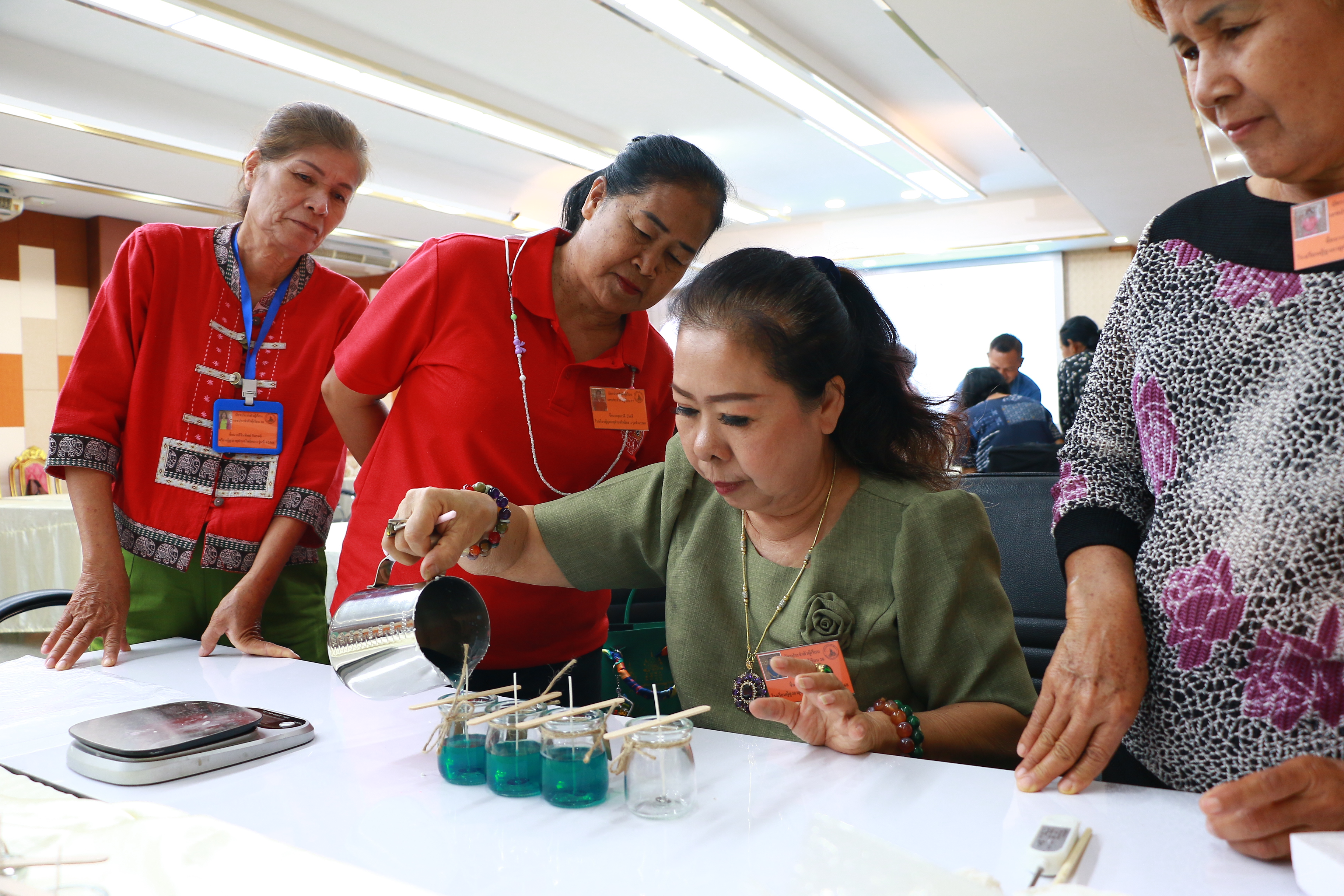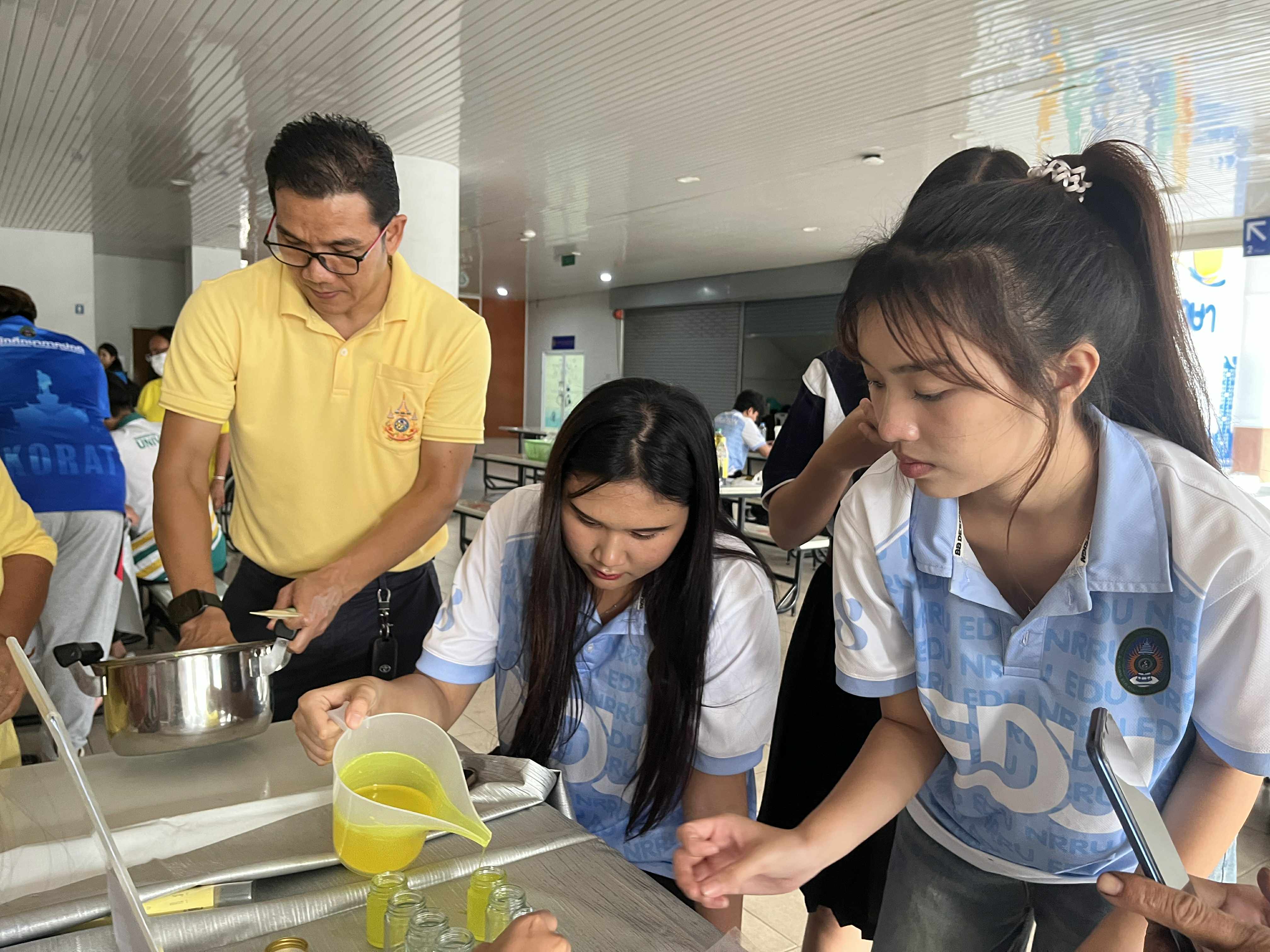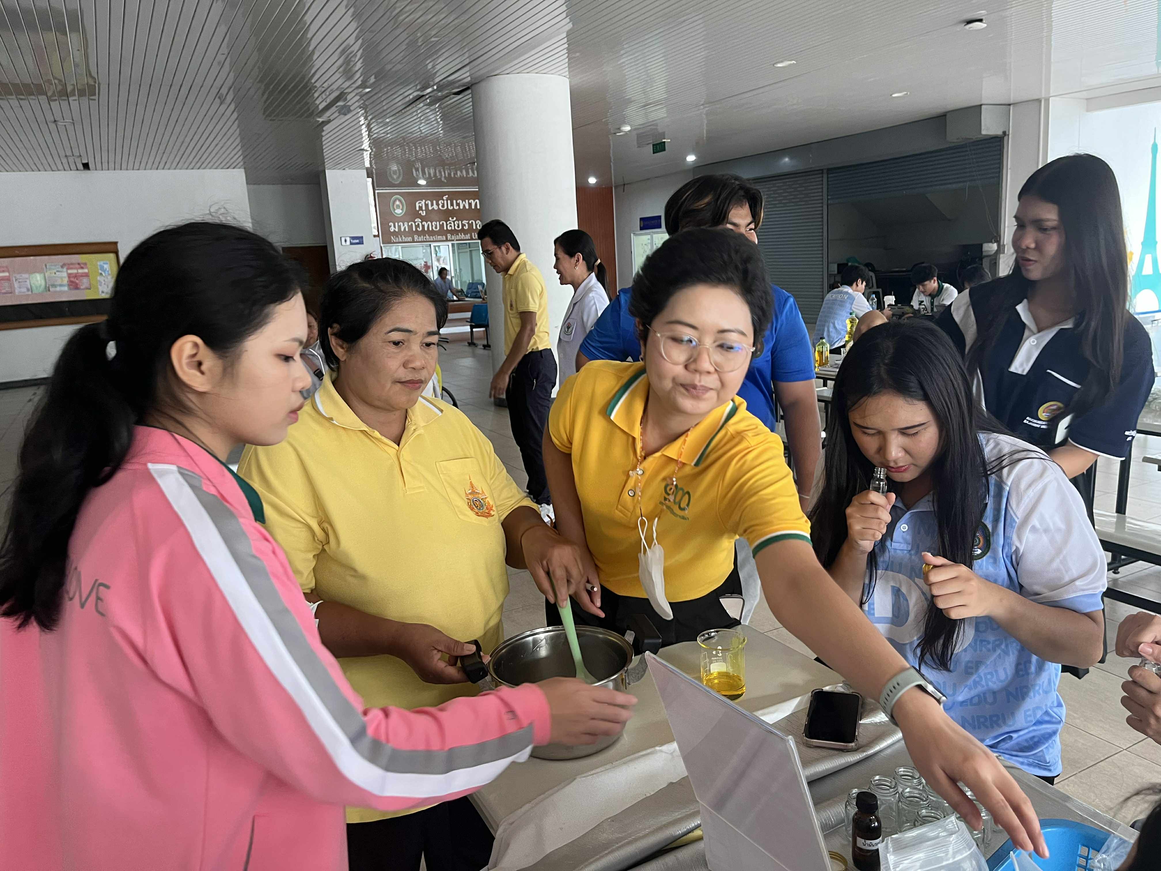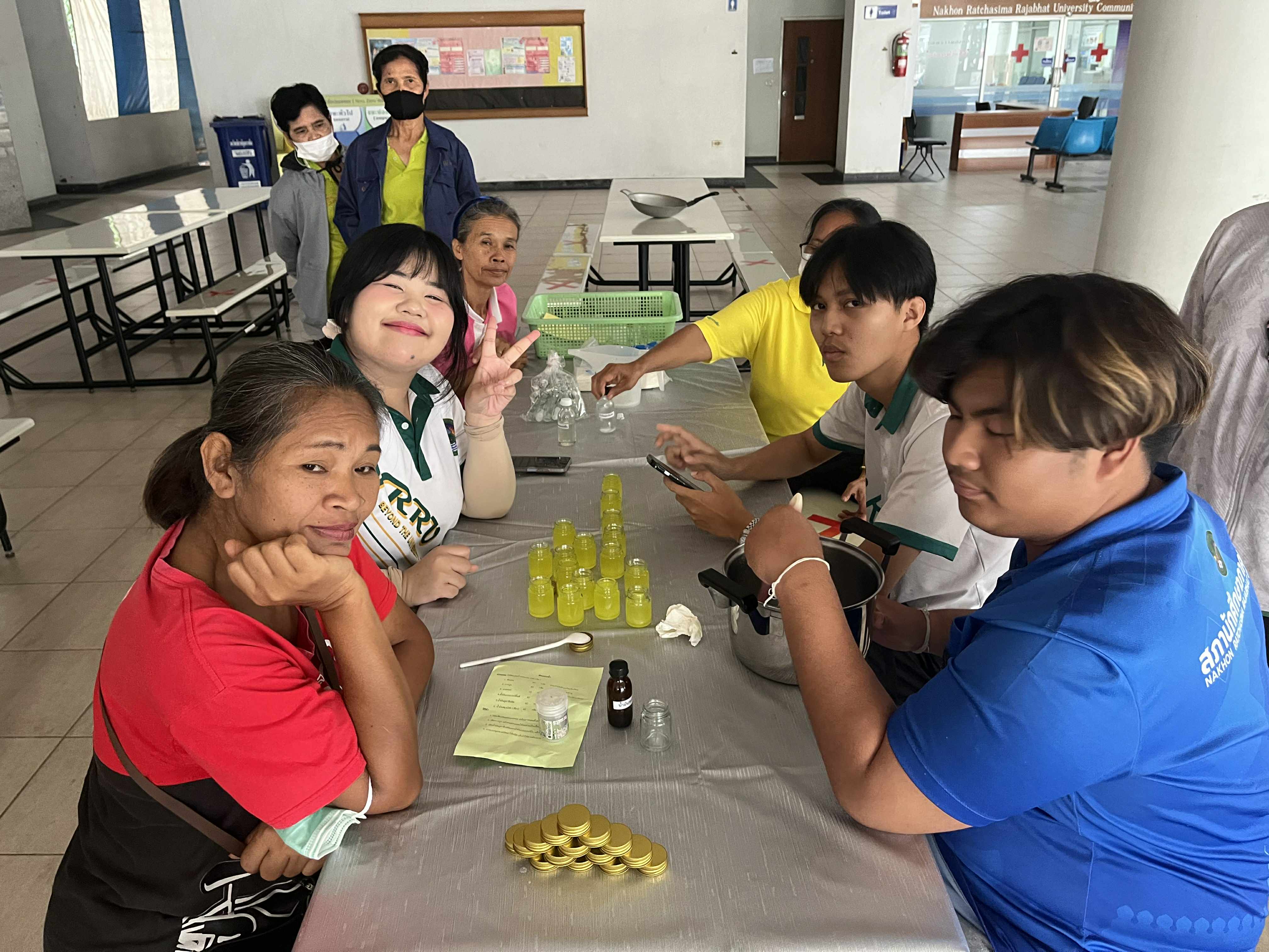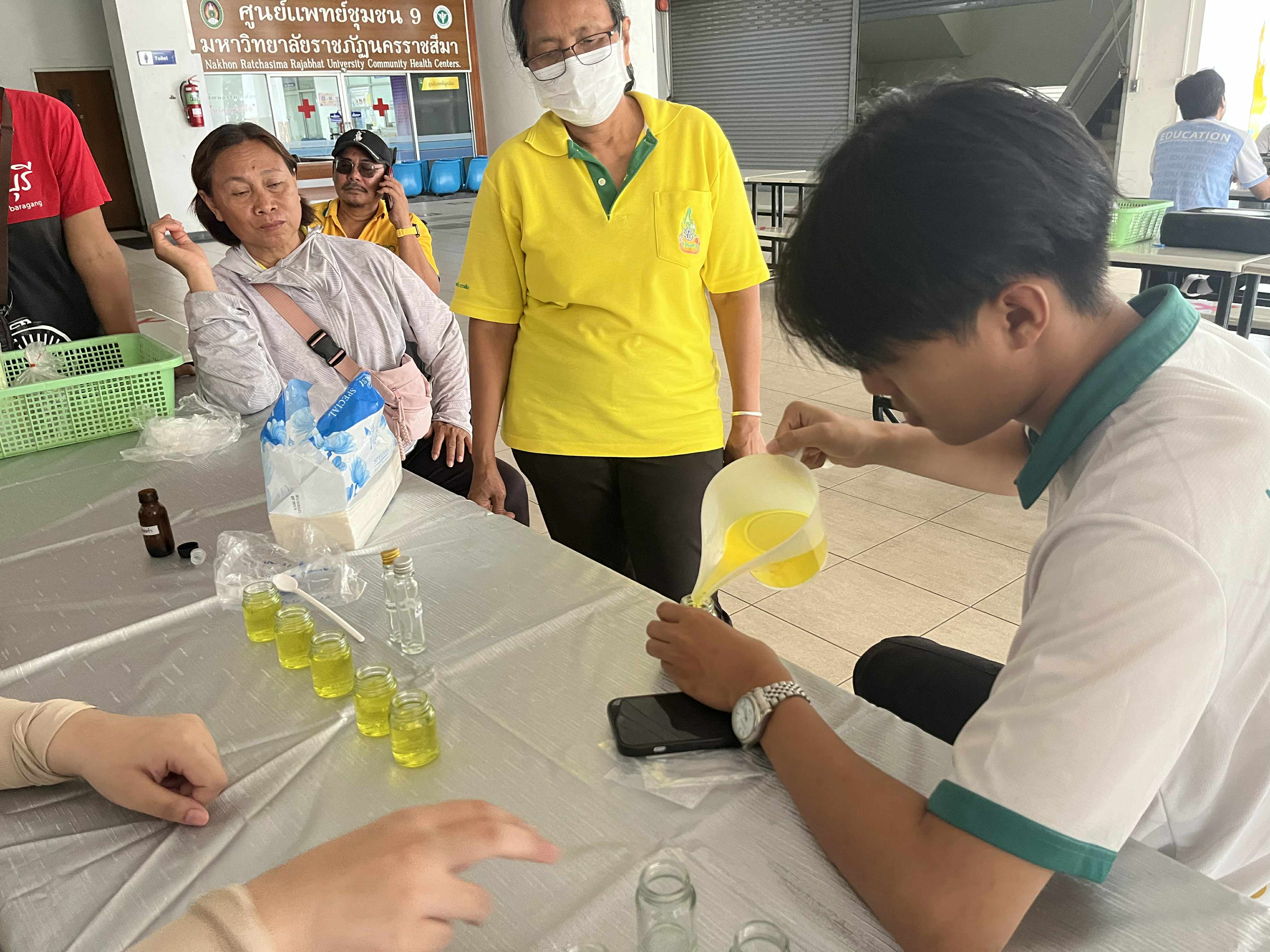 เมื่อวันที่ 29 พฤษภาคม 2568 คลินิกเทคโนโลยี ร่วมกับ โครงการอนุรักษ์พันธุกรรมพืชอันเนื่องมาจากพระราชดำริ สมเด็จพระกนิษฐาธิราชเจ้า กรมสมเด็จพระเทพรัตนราชสุดาฯ สยามบรมราชกุมารี จัดการอบรมเชิงปฏิบัติการเกี่ยวกับการแปรรูปสมุนไพรจากพืชท้องถิ่น โดยบุคลากรจากศูนย์วิทยาศาสตร์ ลงพื้นที่ให้บริการวิชาการ ณ ชุมชนมหาชัย ตำบลในเมือง อำเภอเมืองนครราชสีมา จังหวัดนครราชสีมา เพื่อดำเนินการจัดการอบรมเชิงปฏิบัติการในหัวข้อ “การผลิตผลิตภัณฑ์สเปรย์ตะไคร้หอมไล่ยุง และเทียนหอมอโรม่า”ภายในกิจกรรมดังกล่าว กลุ่มเป้าหมายซึ่งเป็นผู้สูงอายุในชุมชน จำนวน 50 คน ได้มีโอกาสเรียนรู้กระบวนการผลิตผลิตภัณฑ์จากสมุนไพรผ่านการถ่ายทอดองค์ความรู้โดยบุคลากรผู้เชี่ยวชาญจากศูนย์วิทยาศาสตร์ พร้อมฝึกปฏิบัติจริงในทุกขั้นตอนของการผลิต โดยผลิตภัณฑ์ที่ได้รับการถ่ายทอดความรู้ประกอบด้วย
