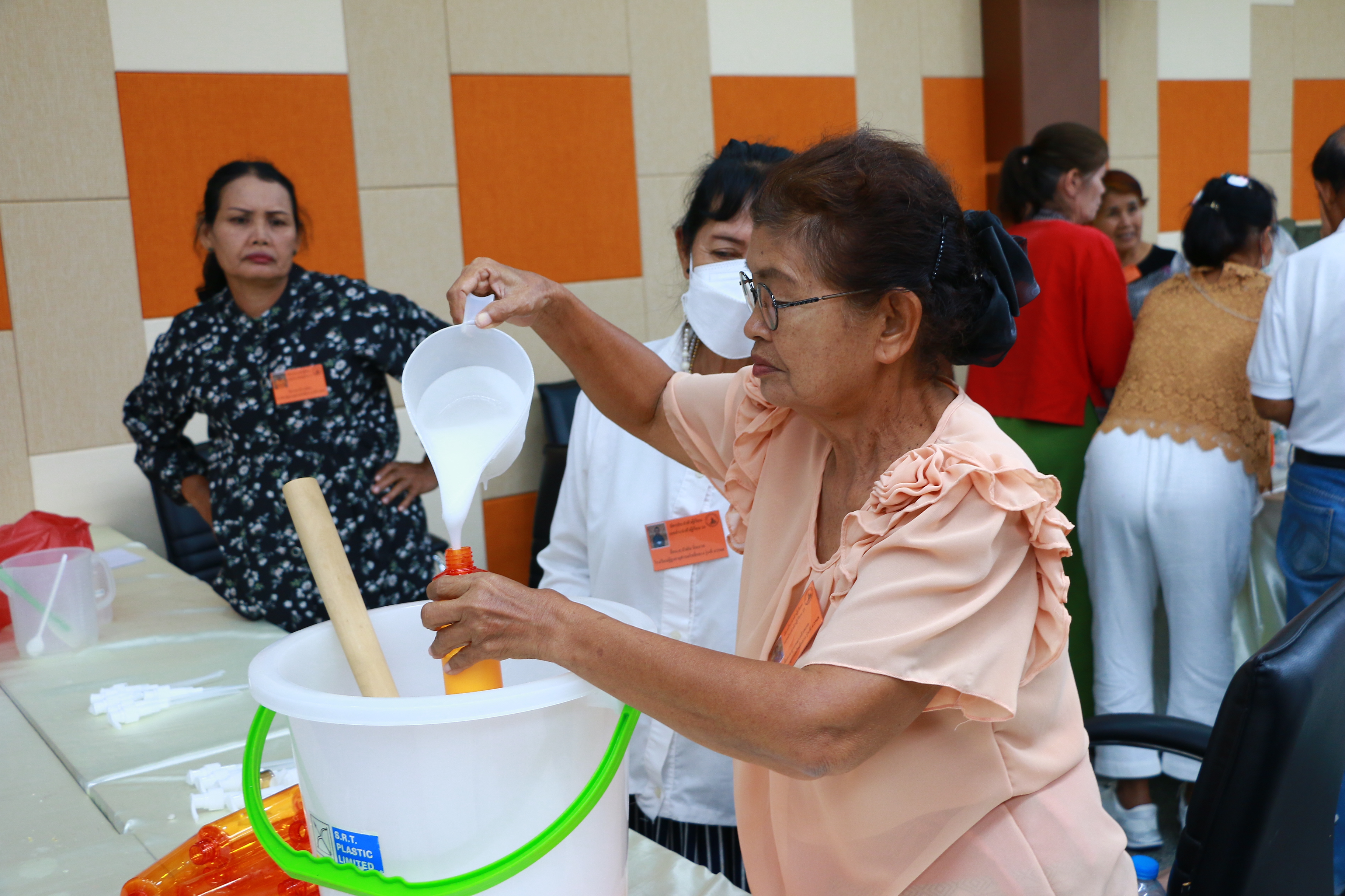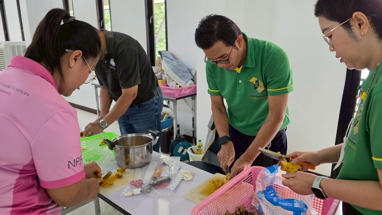 เมื่อวันที่ 13 มิถุนายน พ.ศ. 2568คลินิกเทคโนโลยี ศูนย์วิทยาศาสตร์ คณะวิทยาศาสตร์และเทคโนโลยี มหาวิทยาลัยราชภัฏนครราชสีมา เป็นวิทยากรในการจัดอบรมเชิงปฏิบัติการ ภายใต้โครงการชุมชนผู้สูงอายุอย่างมีคุณภาพ ด้วยนวัตกรรมบูรณาการสามสอ คณะสาธารณสุขศาสตร์ ณ โรงเรียนผู้สูงอายุ องค์การบริหารส่วนตำบลหนองเหลือม อำเภอเฉลิมพระเกียรติ จังหวัดนครราชสีมา โดย นายยุทธนา ตอสกุล และนางสาวพิชญานิน ปลื้มสุด พร้อมด้วยบุคลากรศูนย์วิทยาศาสตร์ ร่วมเป็นวิทยากรฝึกอบรม ในหัวข้อ “การผลิตผลิตภัณฑ์น้ำยาล้างจานสมุนไพร ” ภายในกิจกรรมดังกล่าว กลุ่มเป้าหมายซึ่งเป็นผู้สูงอายุในชุมชนได้มีโอกาสเรียนรู้กระบวนการผลิตผลิตภัณฑ์น้ำยาล้างจาน ผ่านการถ่ายทอดองค์ความรู้โดยบุคลากรผู้เชี่ยวชาญจากศูนย์วิทยาศาสตร์ พร้อมฝึกปฏิบัติจริงในทุกขั้นตอนของการผลิต กิจกรรมครั้งนี้มีวัตถุประสงค์เพื่อถ่ายทอดความรู้และทักษะผลิตผลิตภัณฑ์น้ำยาล้างจานแก่ชุมชน เพื่อให้ผู้เข้าร่วมซึ่งเป็นผู้สูงอายุสามารถนำความรู้ไปปรับใช้ได้ในครัวเรือนของตนเอง รวมไปถึงการสร้างงานสร้างอาชีพเสริมได้อย่างยั่งยืน นอกจากนี้ยังส่งเสริมสุขภาวะทางกาย และใจผ่านการเรียนรู้แบบมีส่วนร่วม สร้างความสัมพันธ์ที่ดีในชุมชน รายงานโดย นายยุทธนา ตอสกุล วันที่รายงาน 17/06/2568 [19214] |