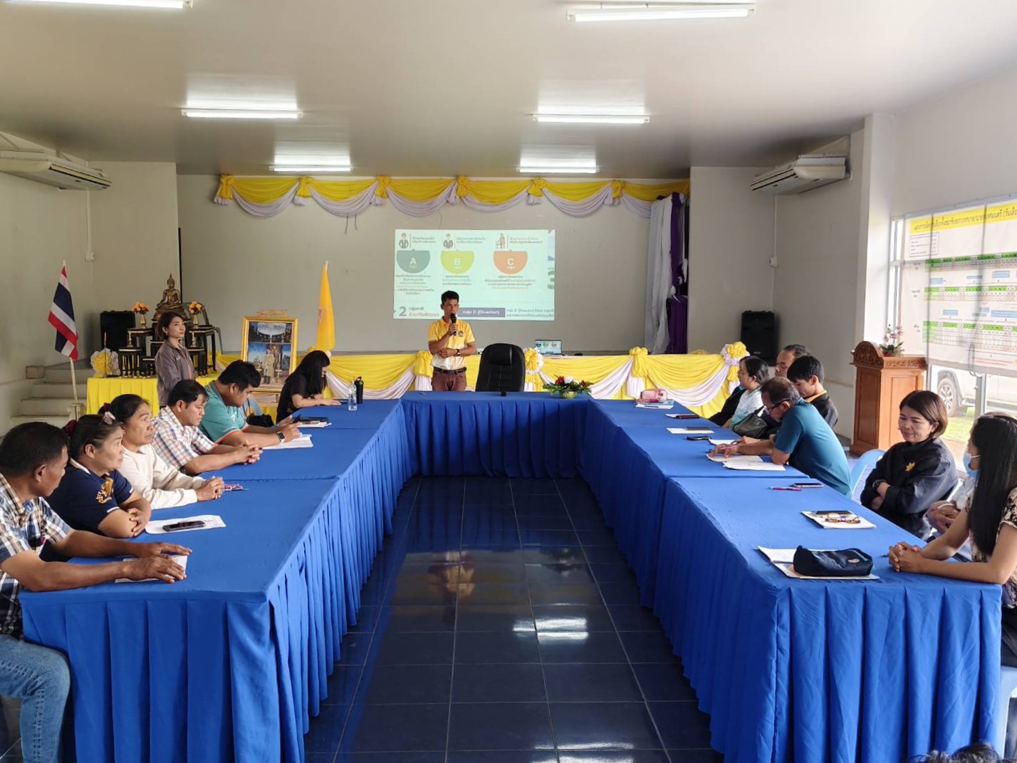 คลินิกเทคโนโลยี มหาวิทยาลัยเทคโนโลยีสุรนารี นำโดย อาจารย์ ดร.ศิริลักษณ์ ชุมเขียว ผู้ช่วยผู้อำนวยการเทคโนธานี ฝ่ายบริการวิชาการและพันธกิจสัมพันธ์กับสังคม พร้อมด้วยเจ้าหน้าที่ จัดประชุมสำรวจข้อมูลครัวเรือนยากจน เพื่อพัฒนาโมเดลแก้จนอย่างยั่งยืน ณ สำนักงานเทศบาลตำบลบ่อปลาทอง อำเภอปักธงชัย จังหวัดนครราชสีมา โดยมี นายทิพย์ ดีพรมราช นายกเทศมนตรีตำบลบ่อปลาทอง ให้เกียรติกล่าวต้อนรับ