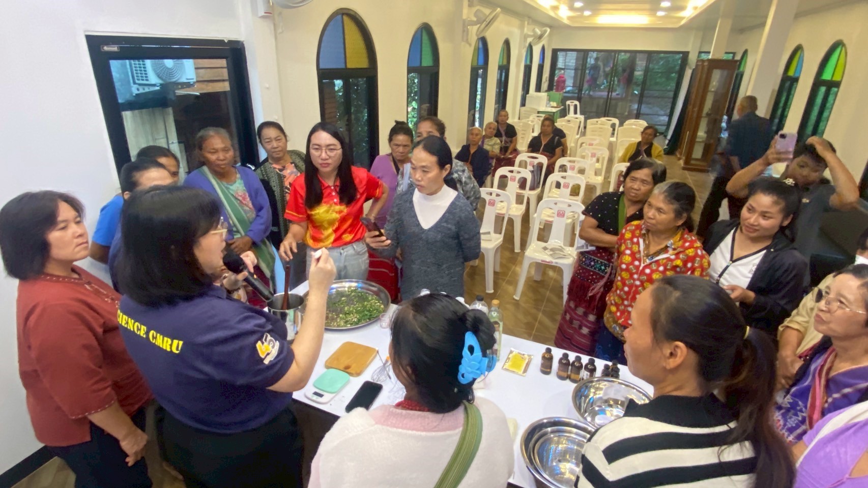 เมื่อวันที่ 16 สิงหาคม 2568 งานคลินิกเทคโนโลยี มหาวิทยาลัยราชภัฏเชียงใหม่ ได้ลงพื้นที่ให้บริการให้คำปรึกษาเรื่อง “การผลิตสเปรย์ตะไคร้หอมมาตรฐานชุมชน” แก่กลุ่มชุมชนบ้านแม่ไคร้และบ้านปางมะกล้วย ณ โลชิ บ้านแม่ไคร้ ตำบลป่าแป๋ อำเภอแม่แตง จังหวัดเชียงใหม่ กิจกรรมดังกล่าวได้รับเกียรติจาก อาจารย์รัฐพรรณ สันติอโนทัย วิทยากรผู้เชี่ยวชาญ ในการให้คำปรึกษา ความรู้และเทคนิคในการพัฒนาผลิตภัณฑ์สมุนไพร เพื่อสร้างมาตรฐานและเพิ่มมูลค่าให้กับสินค้าในชุมชน ตลอดจนเป็นแนวทางในการต่อยอดผลิตภัณฑ์ให้สามารถแข่งขันในตลาดได้อย่างยั่งยืน