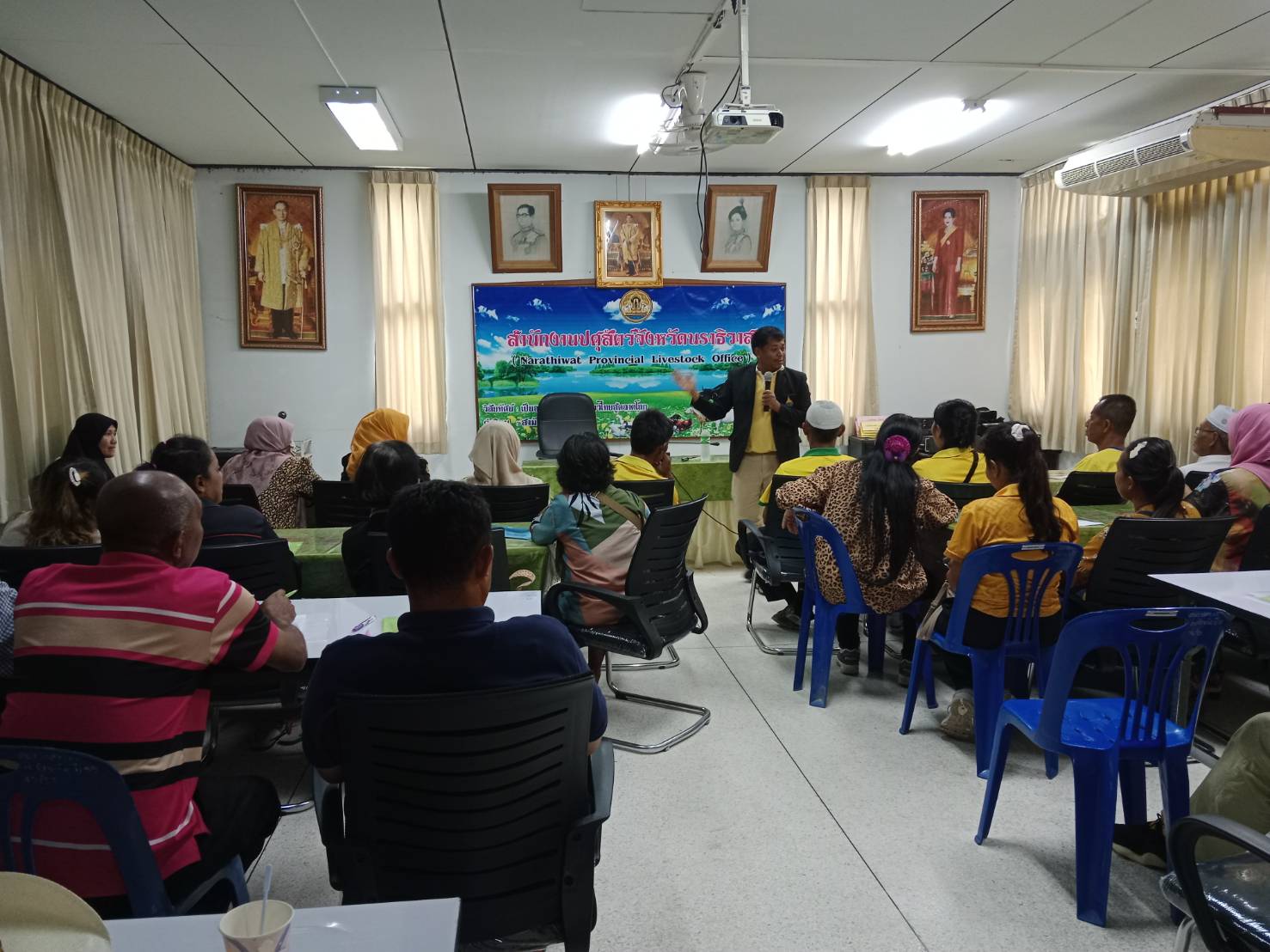เมื่อวันที่ 8 พฤษภาคม 2568 ทางคลินิกเทคโนโลยี ได้ร่วมอบรมถ่ายทอดเทคโนโลยี ให้กับเกษตรกรผู้เลี้ยงโคเนื้อ ภายใต้โครงการ การเพิ่มประสิทธิภาพการบริหารจัดการฟาร์มโคเนื้อด้วยเทคโนโลยีและนวัตกรรมเพื่อยกระดับเศรษฐกิจของพื้นที่จังหวัดนราธิวาส โดยกิจกรรมดังกล่าว มีผู้เข้าร่วม 20 คน จัดขึ้น ณ ห้อง AG 509 คณะเกษตรศาสตร์ มหาวิทยาลัยนราธิวาสราชนครินทร์ ในกิจกรรม ได้มีการถ่ายทอดเทคโนโลยี กระบวนการ และขั้นตอนในการเตรียมพื้นหนังโค สำหรับนำมา พัฒนาเป็นผลิตภัณฑ์แปรรูป แคบวัว และเนื้อแดดเดียวพร้อมทาน โดยมีกระบวนการทำดังนี้ 1. การทำแคบวัวเป็นกระบวนการที่ต้องใช้ความประณีตและความสะอาด เริ่มจากการคัดเลือกหนังวัวที่สดใหม่ ไม่มีขนตกค้าง จากนั้นล้างหนังวัวให้สะอาด และขูดขนออกให้หมด ก่อนจะนำไปต้มในน้ำเดือดพร้อมเกลือเล็กน้อย เพื่อให้หนังนุ่มและลดกลิ่นคาว เมื่อต้มจนสุกดีแล้วจึงนำขึ้นมาพักให้เย็น แล้วหั่นเป็นชิ้นขนาดพอดีคำหลังจากนั้น ให้นำชิ้นหนังวัวที่หั่นแล้วไปตากแดดแรงประมาณ 1–2 วันจนแห้งสนิท หรือใช้ตู้อบลมร้อนแทนหากต้องการความรวดเร็ว เมื่อแห้งดีแล้วจึงนำไปทอดครั้งแรกด้วยไฟอ่อน เพื่อให้น้ำมันแทรกเข้าไปในเนื้อหนัง แล้วพักไว้ให้เย็นสนิทจากนั้นจึงทอดซ้ำครั้งที่สองด้วยไฟแรงจัด เพื่อให้หนังวัวพองตัวและกรอบฟูเต็มที่ เมื่อลงจากกระทะให้สะเด็ดน้ำมันและพักให้เย็นก่อนบรรจุลงในถุงหรือภาชนะที่ปิดสนิท เพื่อป้องกันความชื้นและคงความกรอบของแคบวัวให้นานที่สุด โดยอาจปรุงรสเพิ่มเติมในขั้นตอนสุดท้ายเพื่อเพิ่มความหลากหลายของรสชาติ เช่น รสเค็ม รสพริก หรือสมุนไพรต่างๆ ตามต้องการ