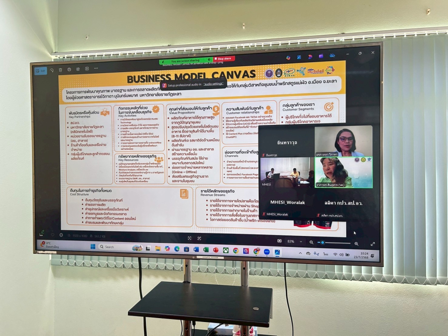 วันที่ 26 มีนาคม 2568 เวลา 15.00 – 15.30 น. คณะทำงาน นำโดย รองศาสตราจารย์ ดร.นาฏสุดา ภูมิจำนงค์ มหาวิทยาลัยมหิดล ได้รับมอบหมายจากสำนักงานปลัดกระทรวงการอุดมศึกษา วิทยาศาสตร์ วิจัยและนวัตกรรมให้เข้าตรวจติดตามและประเมินผลการดำเนินงานที่ได้รับการสนับสนุนงบประมาณภายใต้กิจกรรมส่งเสริมการนำวิทยาศาสตร์ เทคโนโลยีและนวัตกรรม (วทน.) เพื่อเพิ่มศักยภาพการผลิตและเศรษฐกิจชุมชน แพลตฟอร์มบริการให้คำปรึกษาและข้อมูลเทคโนโลยี (Technology Consulting Service : TCS) ปีงบประมาณ พ.ศ. 2567 โดยอาจารย์ ดร.อัจฉราพร ยกขุน ผู้จัดการคลินิกเทคโนโลยี มหาวิทยาลัยราชภัฏยะลา นำเสนอผลการดำเนินงานโครงการการบริการให้คำปรึกษาและแก้ไขปัญหาเทคโนโลยีในชุมชนภาคใต้ชายแดน ปีงบประมาณ พ.ศ. 2567 พร้อมนางสาวลักษ์ขณาวดี ชุ่มแก้ว เจ้าหน้าที่บริหารงานทั่วไปคลินิกเทคโนโลยี และผู้ประกอบการ คุณอรี ศักดิมาตร ประธานกลุ่มวิสาหกิจชุมชนน้ำพริกสูตรแม่ผัว และคุณไซนับ ดอหิง ประธานกลุ่มวิสาหกิจชุมชนปลาส้มบ้านบาตูมัส เข้ารับการตรวจประเมินและให้ข้อมูลเกี่ยวกับการดำเนินงานของโครงการฯ ในรูปแบบออนไลน์ผ่านระบบ Zoom meeting รายงานโดย นางสาวลักษ์ขณาวดี ชุ่มแก้ว วันที่รายงาน 02/04/2568 [18854] |