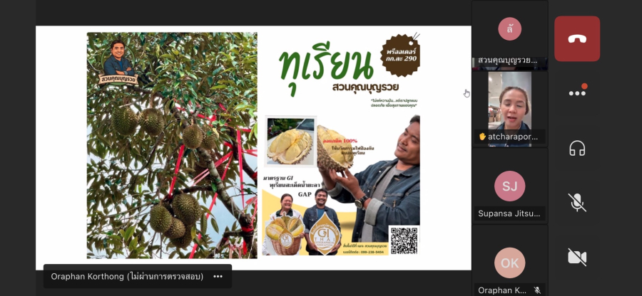 การประชุมจัดขึ้นในรูปแบบออนไลน์ผ่านระบบ Microsoft Teams มีวัตถุประสงค์เพื่อถ่ายทอดแนวทาง แนวปฏิบัติ และการสนับสนุนที่เกี่ยวข้องกับการส่งเสริมศักยภาพผู้ประกอบการท้องถิ่นในการขยายช่องทางการตลาดและยกระดับคุณภาพผลิตภัณฑ์ทุเรียนสะเด็ดน้ำ สินค้า GI จังหวัดยะลา สู่ตลาดออนไลน์อย่างเป็นระบบและยั่งยืน