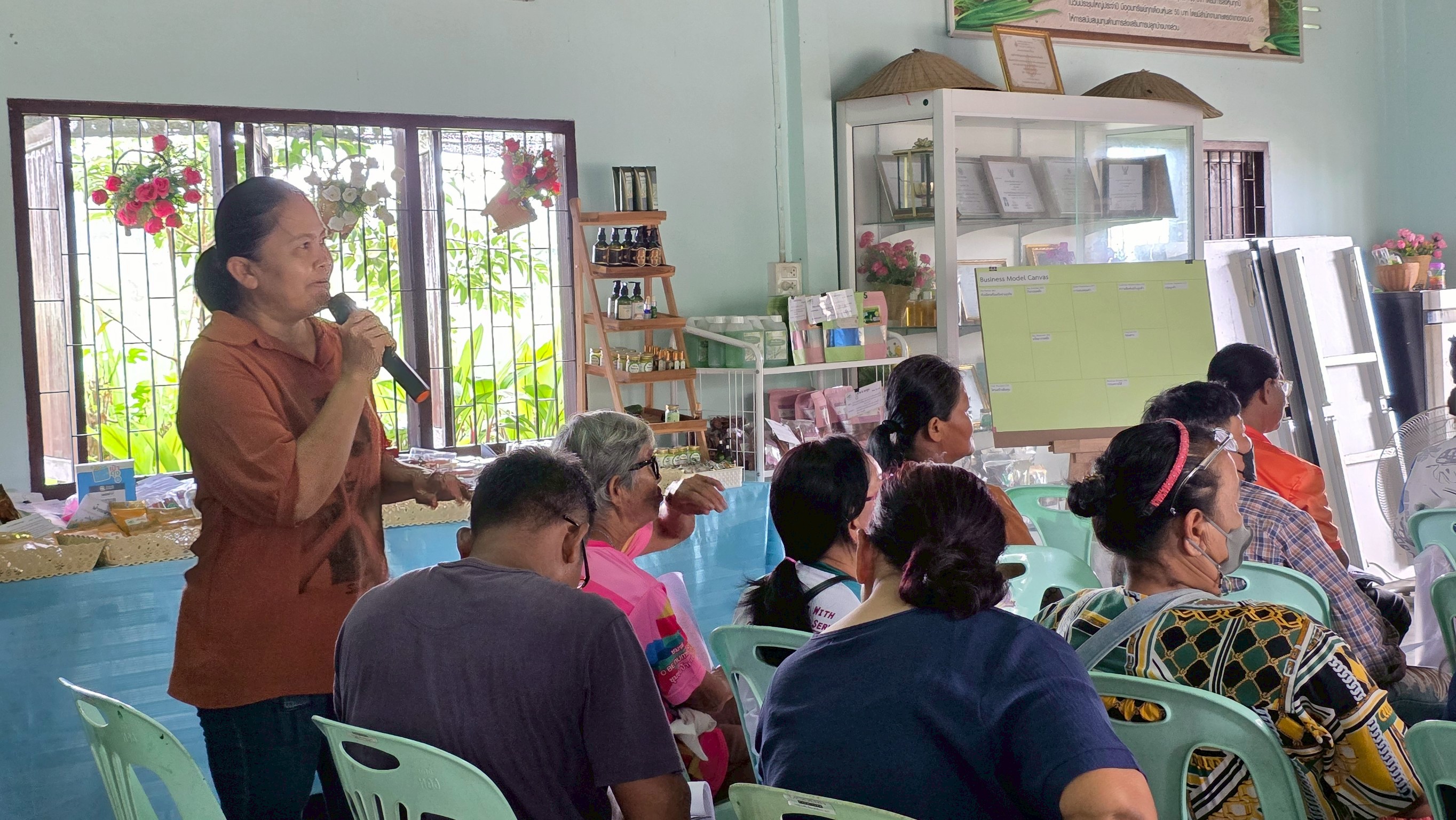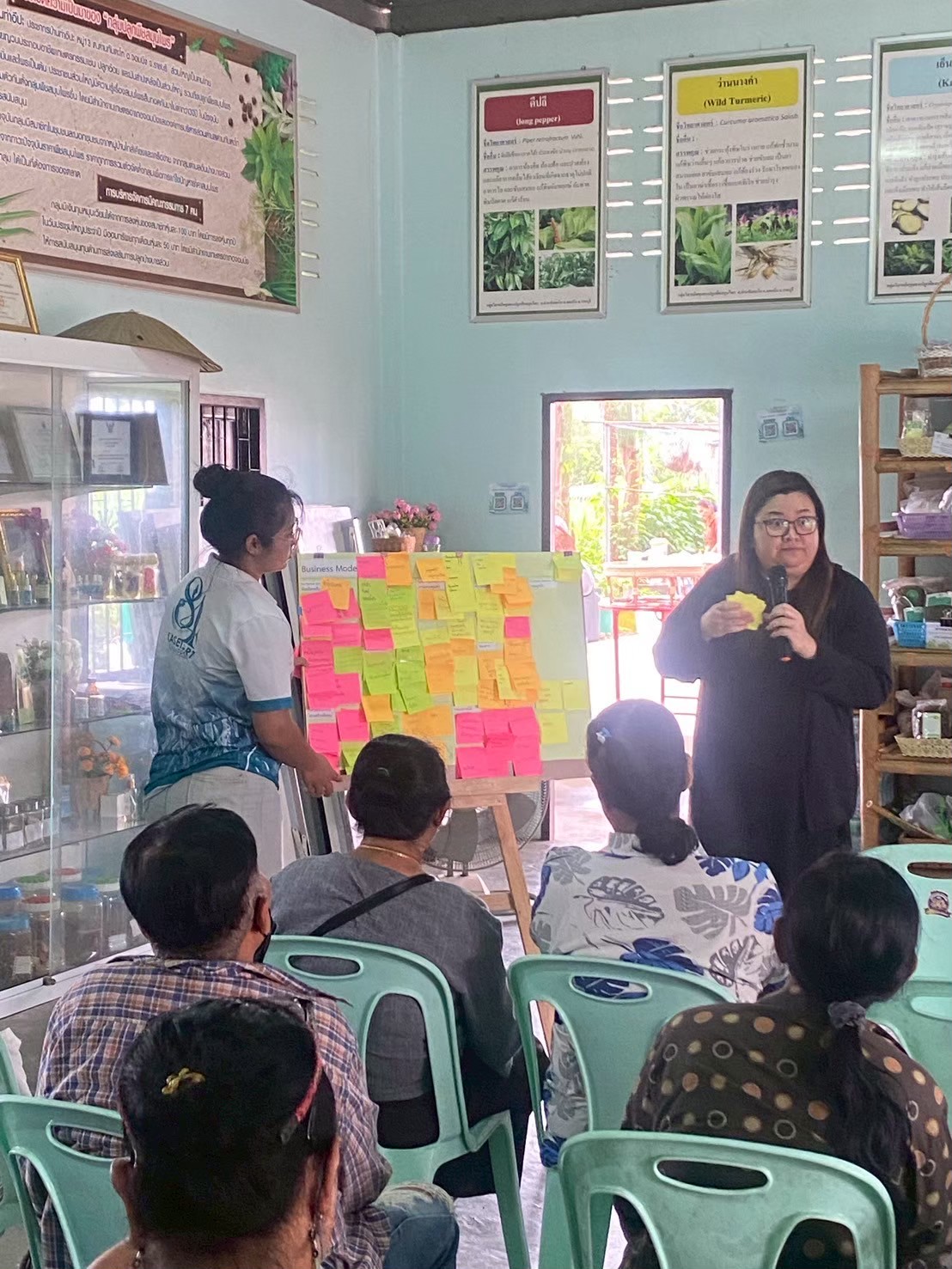 โครงการน้ำมันหอมระเหยจากสมุนไพรสู่ผลิตภัณฑ์ Eco friendly ปีที่ 3 ได้จัดการอบรมถ่ายทอดองค์ความรู้ เรื่อง แนวทางการเพิ่มมูลค่าตลาดเชิงพาณิชย์ สำหรับสินค้าสมุนไพรเพื่อเพิ่มโอกาสทางธุรกิจ และการฝึกปฏิบัติ การสร้างโมเดลธุรกิจสำหรับพัฒนาสินค้าเกษตรด้วย Business Model Canvas (BMC) วิทยากรโดย อ.ดร.สุชีรา มาตยภูธร อาจารย์ภาควิชาส่งเสริมและนิเทศศาสตร์เกษตร คณะเกษตร กำแพงแสน ผู้เข้าอบรมได้เรียนรู้การวิเคราะห์ความต้องการของตลาดผลิตภัณฑ์สมุนไพร พฤติกรรมผู้บริโภค การเลือกตลาดเป้าหมาย การคิดต้นทุนการผลิตสินค้าและกลยุทธ์การกำหนดราคาสินค้า ซึ่งทำให้สามารถเข้าใจทิศทางของตลาดผลิตภัณฑ์สมุนไพรและวางแผนในการผลิตผลิตภัณฑ์สมุนไพรให้มีคุณค่าและตรงตามความต้องการของผู้บริโภค สามารถตั้งราคาสินค้าให้สอดคล้องกับคุณภาพสินค้าและต้นทุน