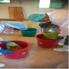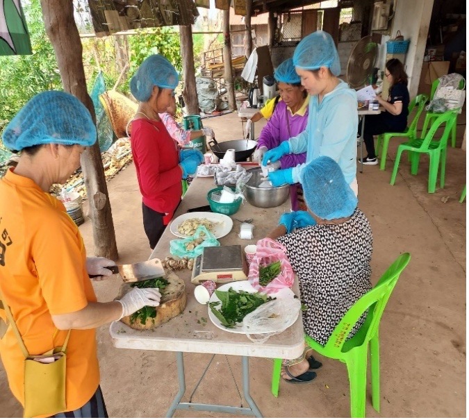 กิจกรรมที่ 3 อบรมให้ความรู้หลักสูตรการผลิตข้าวเม่าและผลิตภัณฑ์อาหารแห้งตามมาตรฐาน GMP และแนวทางการผลิตข้าวเม่าให้ได้ อย. จำนวน 11,800 บาท วันที่ 26 พฤษภาคม 2568 กิจกรรมการบรรยาย เรื่อง การผลิตข้าวเม่าและผลิตภัณฑ์อาหารแห้งตามมาตรฐาน GMP 420 โดย นางสาวอาภานันท์ เอี่ยมสำราญ เภสัชกร โรงพยาบาลโพนสวรรค์ จ.นครพนม จำนวนผู้เข้าร่วมอบรม 30 คน ณ ที่ทำการวิสาหกิจชุมชนกลุ่มข้าวเม่าหวานบ้านนาล้อม - ได้ให้ความรู้กับสมาชิกวิสาหกิจชุมชน และได้ตรวจประเมินสถานที่ผลิตข้าวเม่าบรรจุถุงสุญญากาศ และให้คำแนะนำเพื่อปรับปรุงแก้ไขตามหลักเกณฑ์ GMP 420 พร้อมให้คำแนะนำเพื่อจัดทำเอกสารที่เกี่ยวข้อง - กิจกรรมเสวนา/ประชุม แนวทางการผลิตข้าวเม่าให้ได้ อย. และการแก้ไข/ปรับปรุงตามคำแนะนำของเภสัชกร โดย รศ.ดร.พรประภา ชุนถนอม - กำหนดแผนการปฏิบัติงานให้สมาชิกกลุ่มดำเนินการแก้ไขตามข้อแนะนำ โดยเฉพาะห้องบรรจุสินค้าต้องปฏิบัติให้ถูกสุขลักษณะ ส่วนการแยกเมล็ดข้าวออกจากรวง การล้างข้าว การแยกเมล็ดข้าวลีบออก และการคั่วข้าว ได้วางแผนร่วมกันให้เตรียมผลิตในส่วนที่อยู่นอกอาคารผลิต เพราะเป็นสินค้าที่มีความเสี่ยงสูง และเมื่อคั่วข้าวเม่าสุกแล้วจึงลำเลียงเข้าสู่โรงงานเพื่อผึ่งให้เย็น ตำ เอาแกลบออก ชั่งน้ำหนัก และบรรจุ - ได้ร่วมปรึกษาหารือเพื่อหาแนวทางในการผลิตข้าวเม่าให้ได้ อย. โดยการวางแบบแปลนเพื่อกำหนดไลน์การผลิตข้าวเม่า และไลน์การผลิตอาหารแห้ง เช่น ชาข้าวผสมสมุนไพร ตามมาตรฐาน GMP 420 โดยต้องปรับพื้นให้เรียบ สร้างเตาคั่วข้าวเม่าเพื่อลดควันและมีประสิทธิภาพในการใช้พลังงานจากฟืนมากขึ้น โดยออกแบบเป็นเตาชีวมวลที่ใช้อิฐและปูนซีเมนต์ชนิดทนความร้อนสูง วิสาหกิจชุมชนกลุ่มข้าวเม่าหวานบ้านนาล้อม ได้ทำการปรับปรุงอาคารผลิตโดยรื้อหลังคาเดิมออก และเปลี่ยนหลังคาใหม่ เสาไม้ภายในโรงงานได้เปลี่ยนเป็นใช้ปูนซีเมนต์โอบ ส่วนภายนอกอาคารผลิตได้ตัดต้นไม้บริเวณรอบอาคารออก และต่อเติมอาคารผลิตเพื่อขยายโรงงานให้รองรับการเตรียมวัตถุดิบตั้งแต่การแยกเมล็ดข้าวออกจากรวง จนถึงคั่วข้าวเม่า เพื่อป้องกันฝุ่นและควันปนเปื้อนในอาคารผลิต และอยู่ในระหว่างการปรับปรุงอาคารผลิต คาดว่าจะแล้วเสร็จในเดือนสิงหาคม 2568