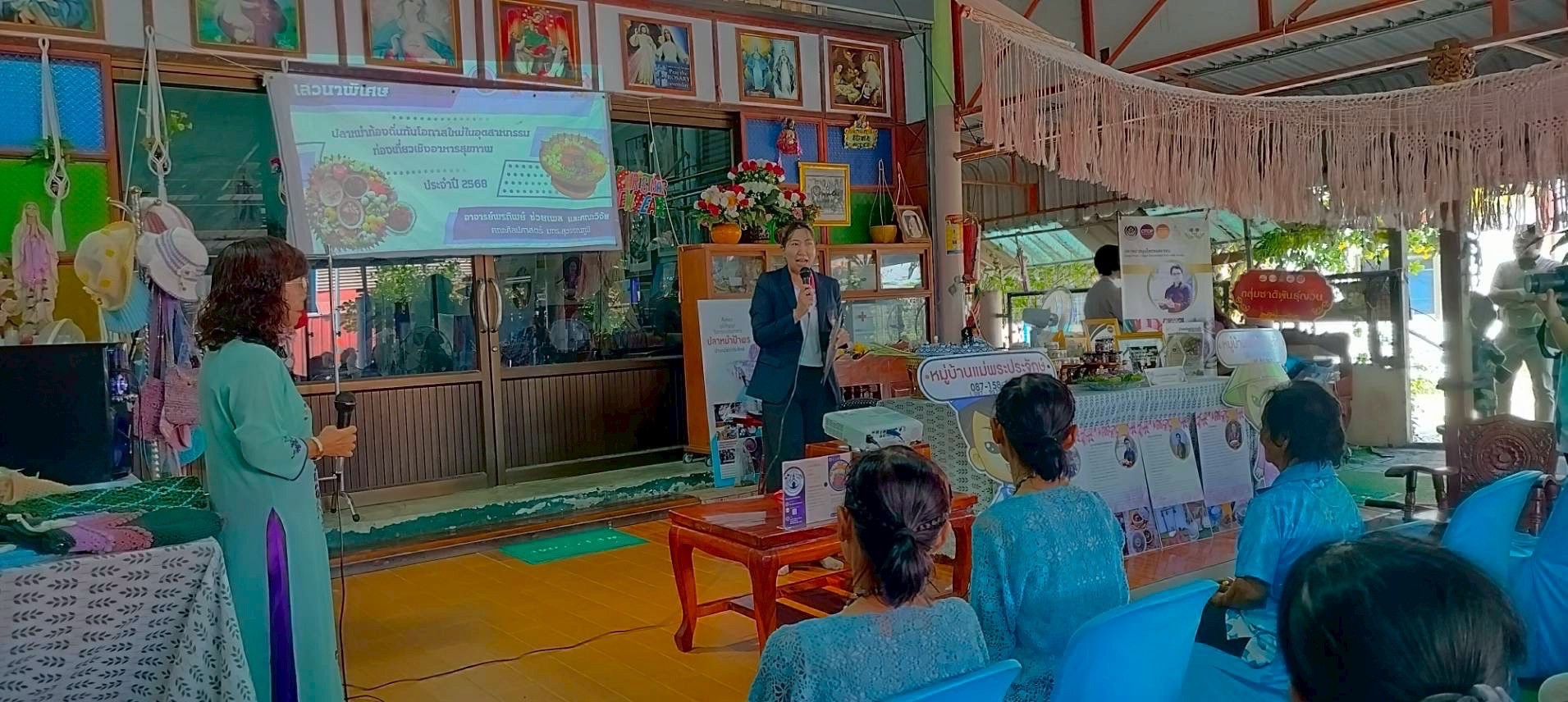 กิจกรรมที่ 5.4บรรยายให้ความรู้ ภายใต้หัวข้อ: แนวทางการยกระดับผลิตภัณฑ์ปลาหมำสู่มาตรฐานผลิตภัณฑ์ชุมชน (มผช.) โครงการได้จัดกิจกรรมบรรยายให้ความรู้แก่สมาชิกวิสาหกิจชุมชนปลาหมำป้าพร ณ ศูนย์เรียนรู้บ้านแม่ประจักษ์ หัตถกรรมเปลญวน – ปลาหมำ อำเภอสองพี่น้อง จังหวัดสุพรรณบุรี เพื่อส่งเสริมให้สมาชิกวิสาหกิจชุมชนตระหนักถึงความสำคัญของการพัฒนาคุณภาพสินค้าให้ได้มาตรฐานผลิตภัณฑ์ชุมชน (มผช.) โดยได้รับเกียรติจากคุณจิดาภา พลายละมูล นักวิชาการมาตรฐานจากสำนักงานอุตสาหกรรมจังหวัดสุพรรณบุรี เป็นวิทยากรบรรยายให้ความรู้และให้คำปรึกษาเกี่ยวกับกระบวนการยกระดับผลิตภัณฑ์ปลาหมำสู่การรับรองมาตรฐาน มผช. ซึ่งสาระสำคัญของการบรรยายประกอบด้วย
