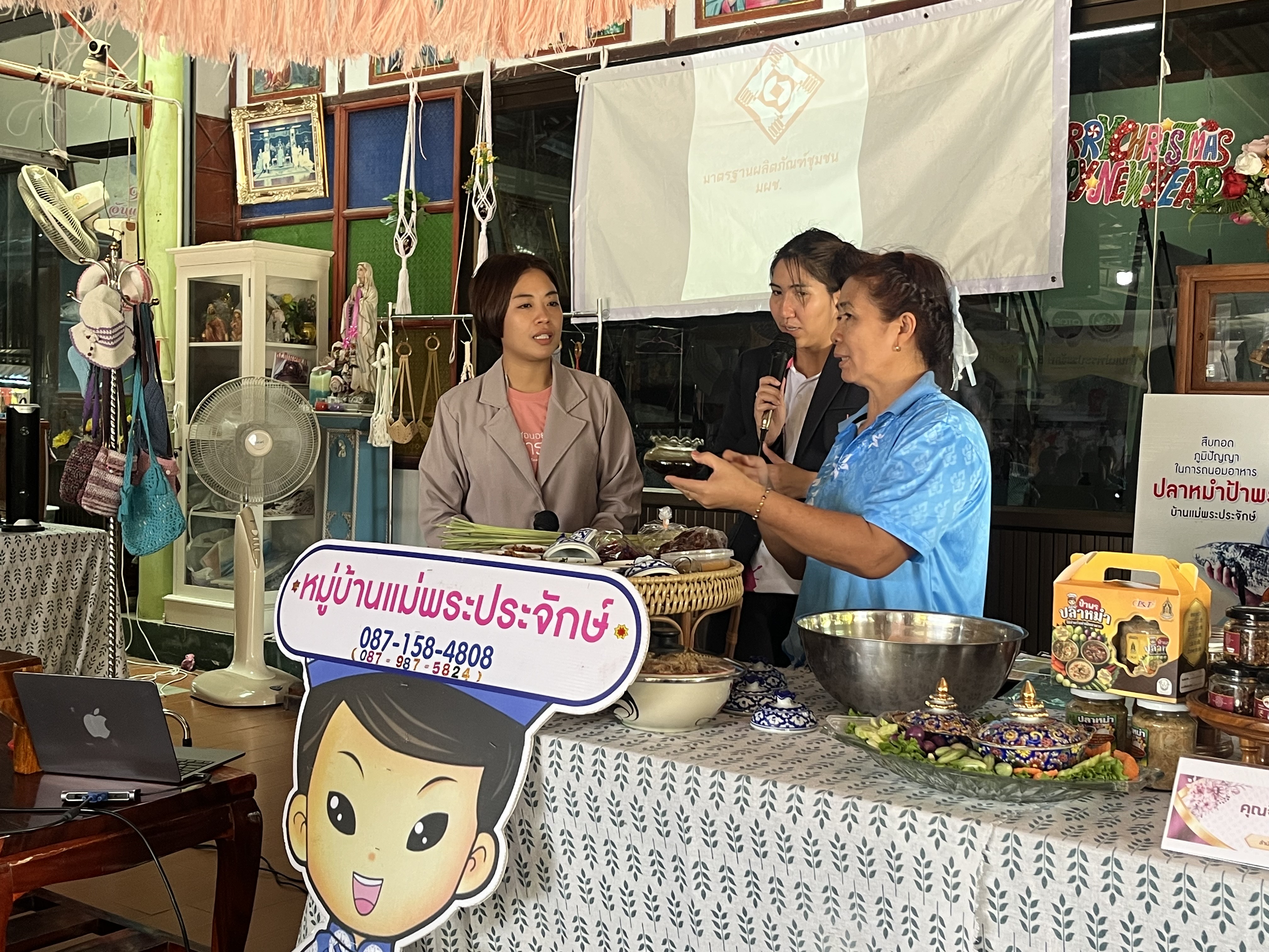 กิจกรรมที่ 5.5บรรยายให้ความรู้ ภายใต้หัวข้อ: :“การจัดเตรียมเอกสารเพื่อขอรับรองมาตรฐานผลิตภัณฑ์ชุมชน (มผช.) อย่างมีประสิทธิภาพ” โครงการได้จัดกิจกรรมบรรยายให้ความรู้แก่สมาชิก วิสาหกิจชุมชนปลาหมำป้าพร ณ ศูนย์เรียนรู้วิสาหกิจชุมชนปลาหมำป้าพร ตำบลต้นตาล อำเภอสองพี่น้อง จังหวัดสุพรรณบุรี กิจกรรมนี้จัดขึ้นเพื่อเตรียมความพร้อมและพัฒนาทักษะการจัดการเอกสารอย่างเป้นระบบ สำหรับกระบวนการยื่นขอรับรองมาตรฐานผลิตภัณฑ์ชุมชน (มผช.) ให้เป็นไปอย่างมีคุณภาพและสอดคล้องตามข้อกำหนดของหน่วยงานที่เกี่ยวข้อง ซึ่งเป็นขั้นตอนสำคัญในการยกระดับผลิตภัณฑ์ปลาหมำสู่ตลาดที่กว้างขึ้น โดยได้รับเกียรติจากคุณจิดาภา พลายละมูลนักวิชาการมาตรฐานจากสำนักงานอุตสาหกรรมจังหวัดสุพรรณบุรี เป็นวิทยากรบรรยายและให้คำปรึกษาเชิงลึกในประเด็นดังต่อไปนี้