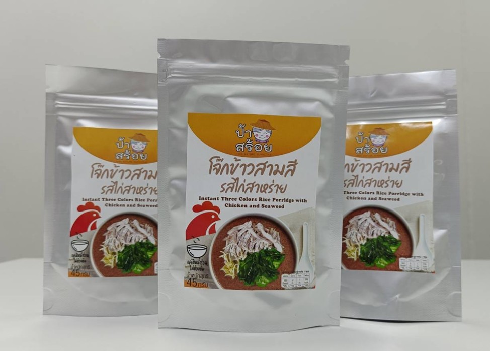 โจ๊กข้าวสามสี รสไก่สาหร่าย หอม อร่อย ได้คุณค่า จากข้าวชุมชนสุโขทัย ผลิตภัณฑ์จาก วิสาหกิจชุมชนข้าวบุญสว่าง 104 บ้านหนองบัว หมู่ 4 ตำบลไกรใน อำเภอกงไกรลาศ จังหวัดสุโขทัย โจ๊กกึ่งสำเร็จรูปที่ผสมผสาน ข้าวสามสี (ข้าวขาว ข้าวแดง ข้าวไรซ์เบอร์รี) กับ ไก่แท้และสาหร่ายคุณภาพดี ให้รสชาติกลมกล่อม พร้อมทั้งคุณค่าทางโภชนาการ จุดเด่นของโจ๊กข้าวสามสีทำจาก ข้าวปลอดภัยในชุมชน สุโขทัย มีใยอาหาร วิตามิน และแอนโทไซยานินจากข้าวไรซ์เบอร์รี ใช้วัตถุดิบธรรมชาติ ปรุงรสพอดี เด็กทานได้ ผู้ใหญ่ทานดี สะดวก รวดเร็ว เพียงเติมน้ำร้อน รอไม่กี่นาที ก็ได้โจ๊กหอมอร่อยพร้อมรับประทาน สนับสนุน วิสาหกิจชุมชนไทย และเพิ่มรายได้ให้เกษตรกรในพื้นที่ ขนาดบรรจุ & ราคา ซอง 45 กรัม ราคาจำหน่ายเพียง 25 บาท/ซอง (คุ้มค่า อิ่มอร่อย ได้สุขภาพ และช่วยชุมชน)