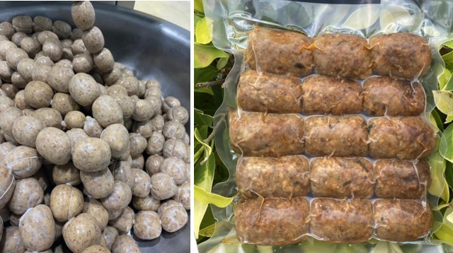เป็นผลิตภัณฑ์ไส้กรอกรสลาบหัวปลี พร้อมรับประทาน ผ่านกรรมวิธีผลิตได้มาตรฐาน อย. อีกทั้งคุณภาพของไส้กรอกมีส่วนผสมที่เน้นวัตถุดิบที่มีคุณภาพ ที่เก็บรักษาภายใต้ภาชนะปิดสนิทได้มาตรฐาน ที่บรรจุในกล่องอีกชั้นเพื่อความสะดวกในการนำผลิตภัณฑ์เข้าไมโครเวฟได้ โดยไม่ต้องหาภาชนะอื่นเพื่อเพิ่มความสะดวกในการนำมารับประทาน ผลิตภัณฑ์สามารถเก็บรักษาไว้ในตู้เย็นได้ 30วันโดยรสชาติไม่เปลี่ยนแปลง ปริมาณบรรจุ/ราคาขาย ปริมาณบรรจุ 9ลูก ราคากล่องละ 65บาท
