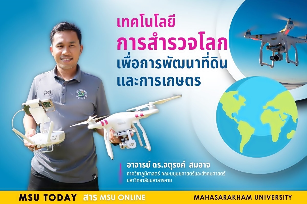 ปัจจุบันเทคโนโลยีการสำรวจโลกเพื่อการพัฒนาที่ดินและการเกษตรกำลังมีบทบาทสำคัญในการพัฒนาที่ดินและการเกษตรในยุคปัจจุบัน ด้วยความสามารถในการเก็บรวบรวม วิเคราะห์ และแสดงข้อมูลพื้นที่ผ่านดาวเทียมและระบบสารสนเทศภูมิศาสตร์ (GIS) เทคโนโลยีนี้ช่วยให้สามารถวางแผนการใช้ที่ดินอย่างมีประสิทธิภาพ ติดตามการเปลี่ยนแปลงของสภาพแวดล้อม และเพิ่มผลผลิตทางการเกษตรได้อย่างยั่งยืน โดยนักวิจัยมหาวิทยาลัยมหาสารคามได้คิดค้น พัฒนาเทคโนโลยีที่จะเข้ามาช่วยในการพัฒนางานวิจัยด้านการประยุกต์ใช้เทคโนโลยีการสำรวจทรัพยากรด้วยดาวเทียมสำหรับติดตามการใช้ที่ดินและการเกษตร ของ ดร.จตุรงค์ สมอาจ ตำแหน่ง อาจารย์สังกัด ภาควิชาภูมิศาสตร์ คณะมนุษยศาสตร์และสังคมศาสตร์ โทร 043 754 369