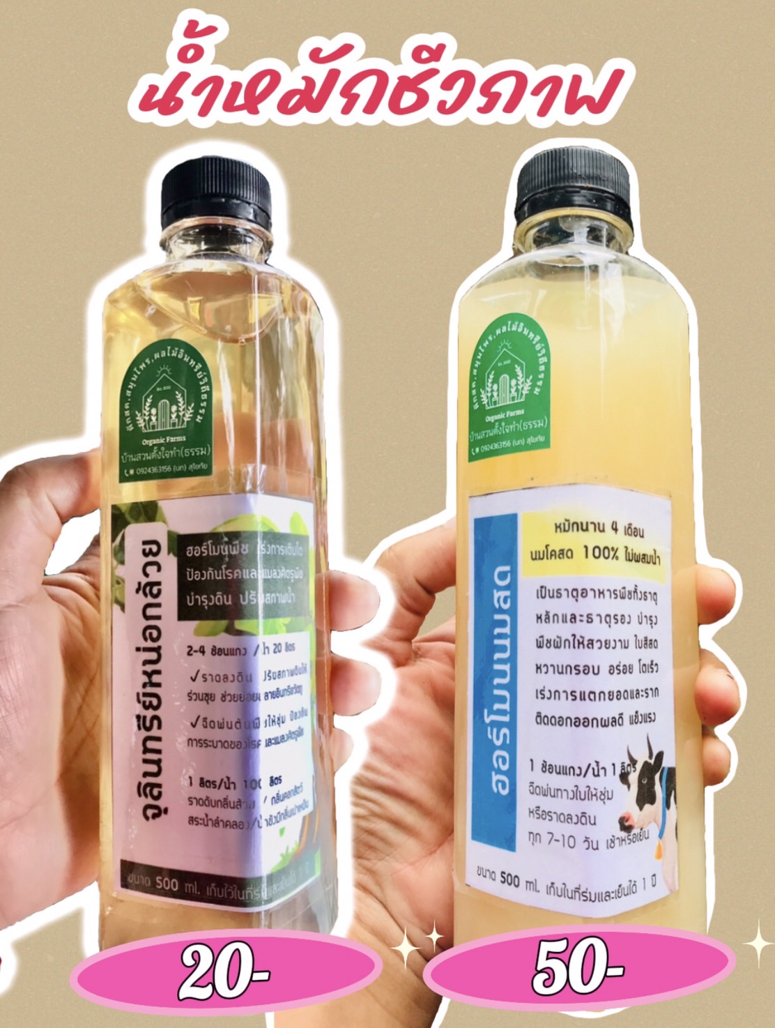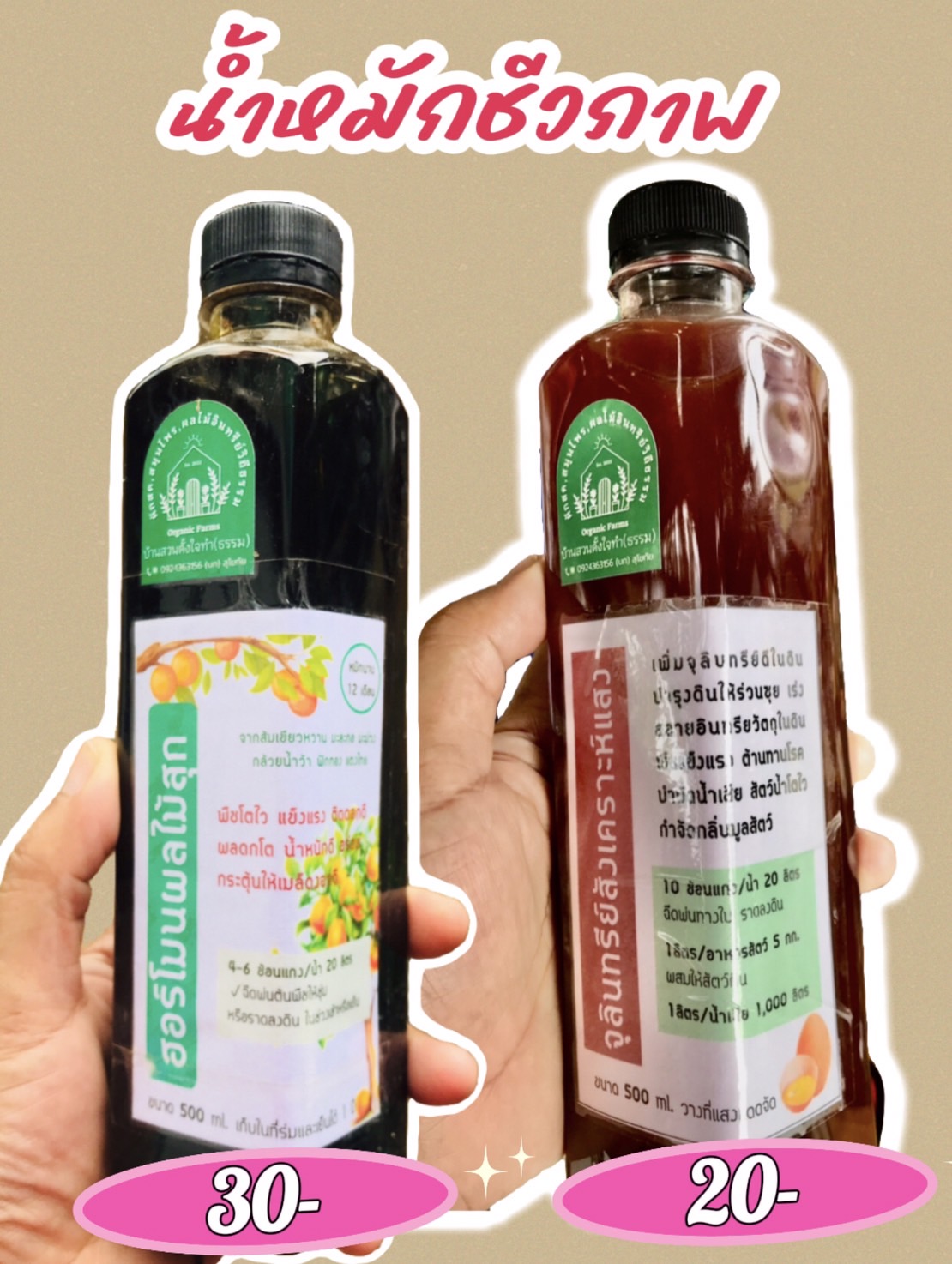 - ฮอร์โมนผลไม้สุก ผลิตจากส้มเขียวหวาน มะละกอ มะม่วง กล้วยน้ำว้า ฟักทอง แตงไทย ช่วยให้พืชโตไว แข็งแรง ติดดอกดี ผลดกโต น้ำหนักดี อร่อย กระตุ้นให้เมล็ดออกดี