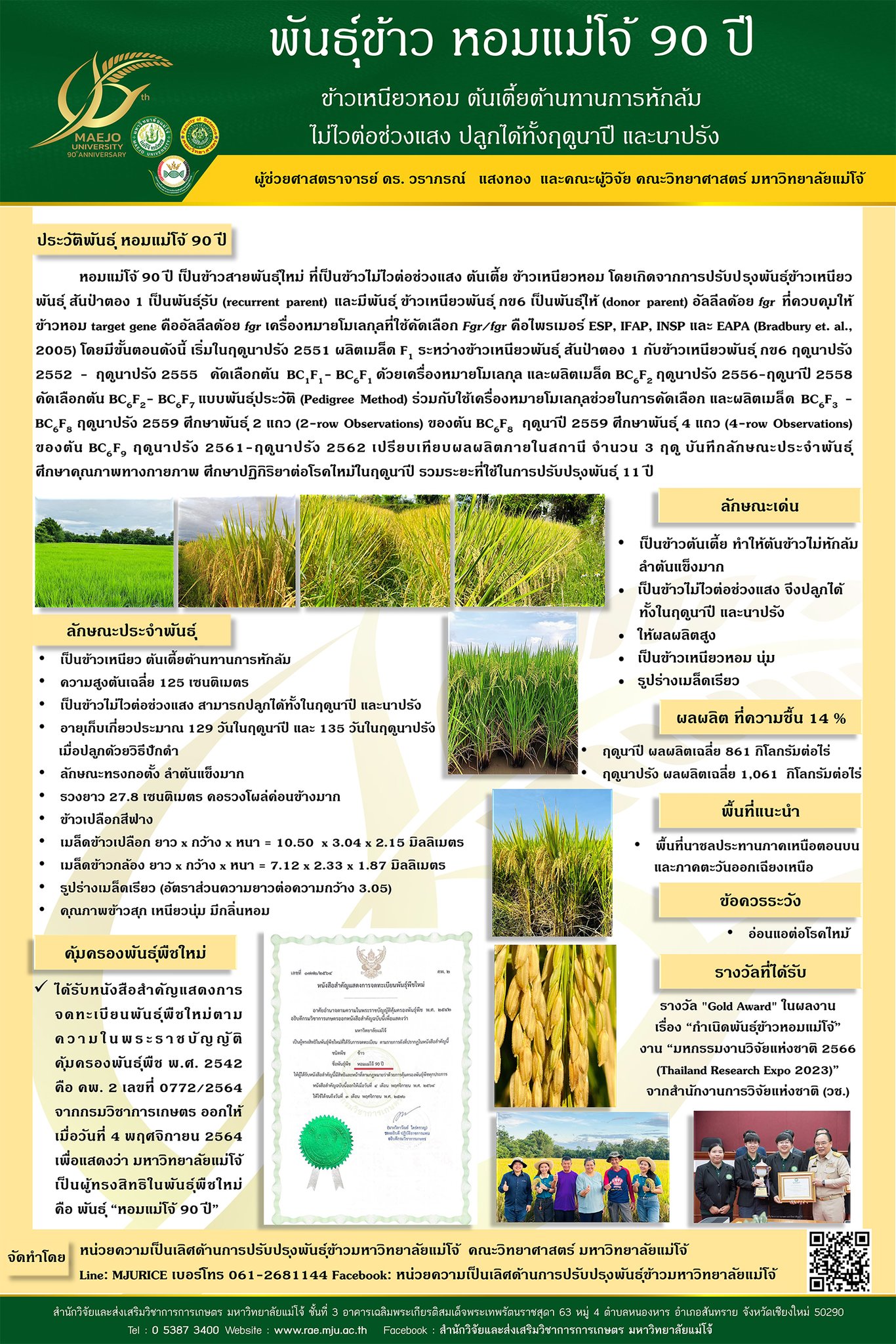 พันธุ์ข้าวหอมแม่โจ้ 90 ปี ชม 3 ครั้ง