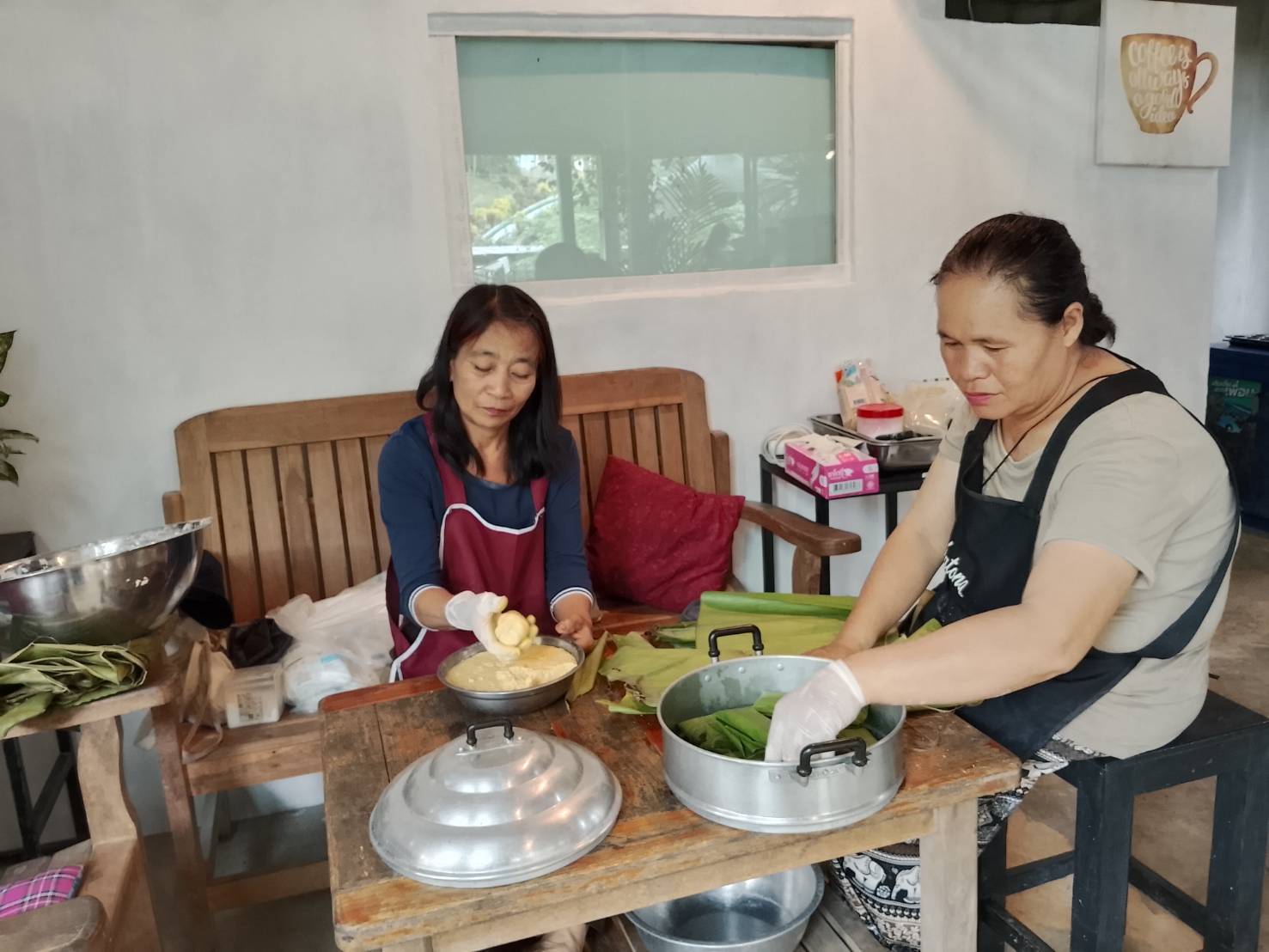 กิจกรรมที่ 1การยกระดับผลิตภัณฑ์ชุมชนเข้าสู่มาตรฐานของชุมชนบ้านนาตอง และจัดแสดงสินค้าชุมชน โดยวิทยากร เภสัชกรหญิง รติพร สำเภานนท์ สำนักงานสาธารณสุขจังหวัด และผู้ช่วยศาสตราจารย์ ดร.สมบัติ กันบุตร ในวันที่ 23 พฤษภาคม 2568
