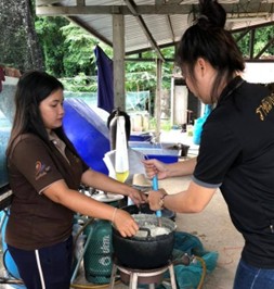 กิจกรรมที่ 2จัดฝึกอบรมและถ่ายทอดองค์ความรู้การยกระดับการผลิตอาหารปลาต้นทุนต่ำที่มีคุณค่าทางโภชนาการที่เหมาะสมต่อการเจริญเติบโตของปลาหมอตาล และเทคนิคการเลี้ยงการให้อาหาร เพื่อลดระยะเวลาในการเลี้ยงให้สั้น ในภาคปฏิบัติ ณ ชุมชนชีววิถีบ้านไผ่ขอดอน ตำบลไผ่ขอดอน อำเภอเมือง จังหวัดพิษณุโลก จำนวนผู้รับบริการ : 50 คน งบประมาณที่ใช้ : 75,800 บาท วิทยากร : คุณภาณุเดช สุโกมล : คุณเนติ บุญกลั่นสอน : ผศ.จารวี เลิกสายเพ็ง : อาจารย์ประวัติ ปรางสุรางค์ ผลการดำเนินงาน : สมาชิกเกษตรกรไม่เพียงแต่ได้รับความรู้ด้านทฤษฎีเกี่ยวกับการผลิตอาหารปลาที่มีต้นทุนต่ำและมีคุณค่าทางโภชนาการเท่านั้น แต่ยังได้ฝึกปฏิบัติจริงในการจัดทำสูตรอาหารปลาหมอตาล ตั้งแต่การคัดเลือกวัตถุดิบท้องถิ่น เช่น รำข้าว ปลายข้าว กากถั่วเหลือง กากมะพร้าว รวมถึงวัตถุดิบโปรตีนจากธรรมชาติที่หาได้ง่ายในชุมชน เช่น ไส้เดือน ปลาเป็ด หรือเศษเหลือจากการเกษตรและการประมง นำมาผ่านกระบวนการผสมตามสัดส่วนที่เหมาะสมเพื่อให้ได้คุณค่าทางโภชนาการครบถ้วน เกษตรกรได้เรียนรู้การใช้เครื่องมือและอุปกรณ์ที่จำเป็น เช่น เครื่องบด เครื่องผสม และเครื่องอัดเม็ด เพื่อผลิตอาหารเม็ดขนาดที่เหมาะสมกับช่วงวัยของปลาหมอตาล พร้อมทั้งการทดลองให้อาหารที่ผลิตขึ้นจริงกับปลาในบ่อเลี้ยง เพื่อสังเกตการกินอาหาร การเจริญเติบโต และสุขภาพของปลา นอกจากนี้ เกษตรกรยังสามารถประยุกต์สูตรอาหารให้สอดคล้องกับวัตถุดิบที่มีอยู่ตามฤดูกาลหรือตามความพร้อมในพื้นที่ เช่น การปรับสัดส่วนโปรตีนจากพืชและสัตว์ให้เหมาะสมกับราคาตลาด เพื่อลดต้นทุนการผลิตโดยไม่กระทบต่อคุณภาพของอาหารปลา รวมถึงการพัฒนาสูตรอาหารเสริมที่มีสมุนไพรท้องถิ่น เพื่อช่วยเสริมภูมิคุ้มกันและลดการใช้สารเคมี ผลจากการเรียนรู้เชิงปฏิบัติและการทดลองใช้จริง ทำให้เกษตรกรสามารถปรับใช้สูตรอาหารเหล่านี้ได้อย่างเหมาะสมกับสภาพฟาร์มของตนเอง เกิดทักษะในการผลิตอาหารปลาใช้เอง ลดการพึ่งพาอาหารสำเร็จรูปจากท้องตลาด ช่วยลดต้นทุนการเลี้ยง เพิ่มผลผลิต และทำให้สามารถนำความรู้ไปต่อยอดเพื่อสร้างรายได้ที่มั่นคงและยั่งยืน ![]() ![]() ![]() ![]() รายงานโดย นางสาวชฎาพร ประทุมมา วันที่รายงาน 25/09/2568 [5620] |