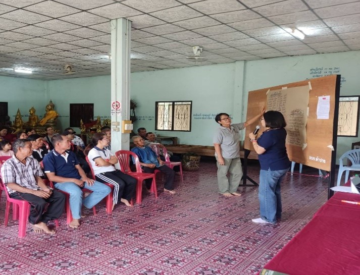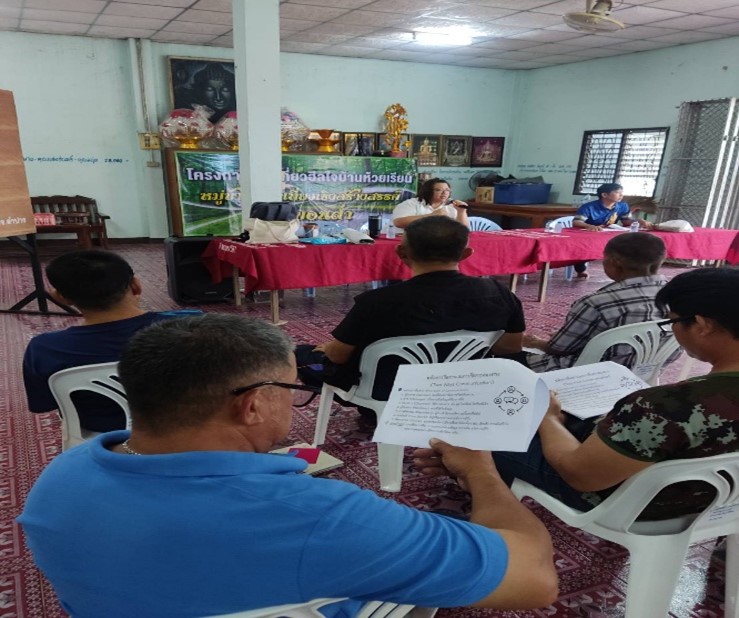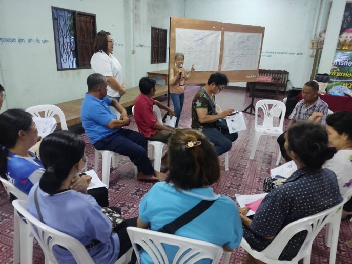 กิจกรรมที่ 1 ร่วมพูดคุยกับผู้นำชุมชน และตัวแทนคนชุมชน ในการดำเนินกิจกรรมของโครงการ เพื่อเตรียมความพร้อมของชุมชนในการเข้าร่วมทำกิจกรรม โดยผู้นำชุมชนจะแจ้งรายละเอียดของกิจกรรมให้กับผู้เข้ารับการอบรมทราบ และนัดวัน เวลา สถานที่ในการดำเนินกิจกรรมต่อไป