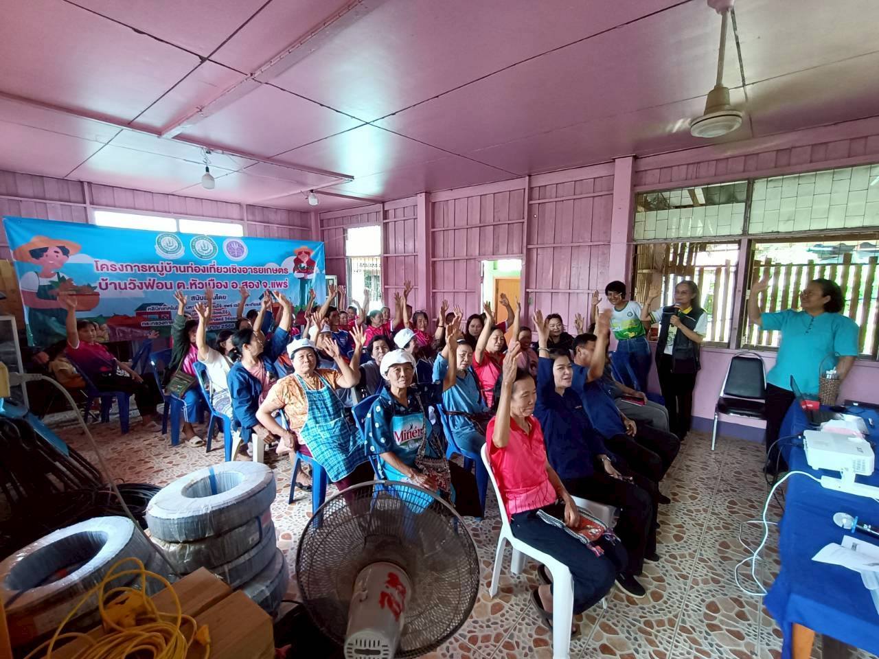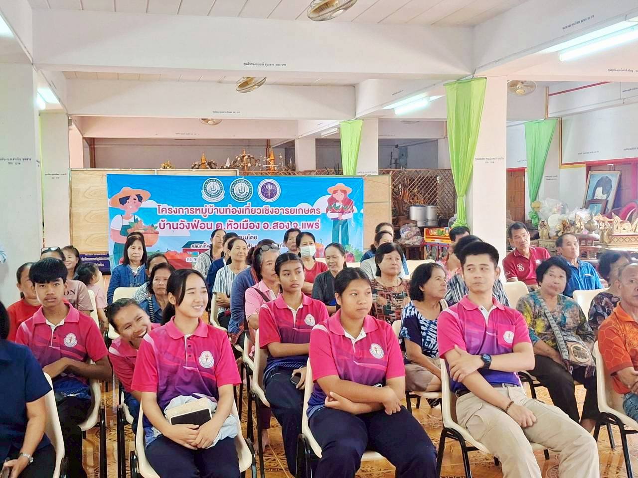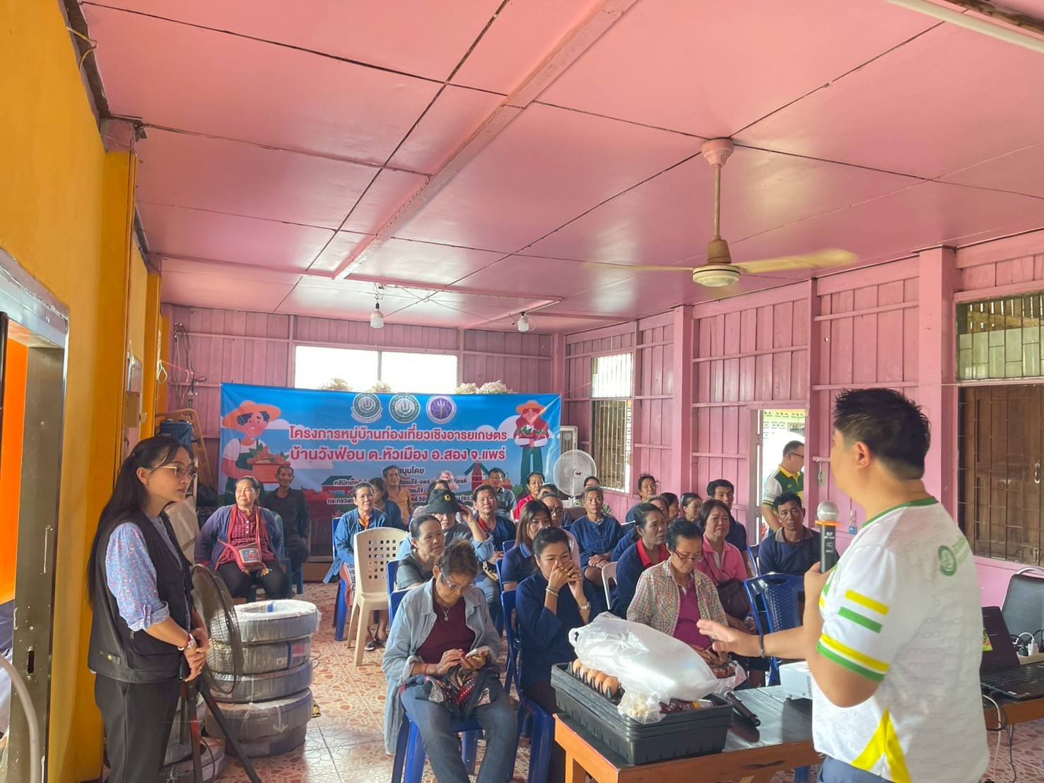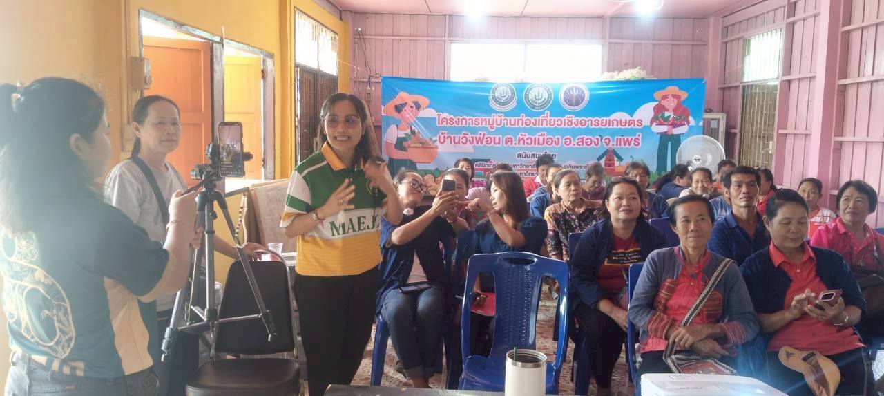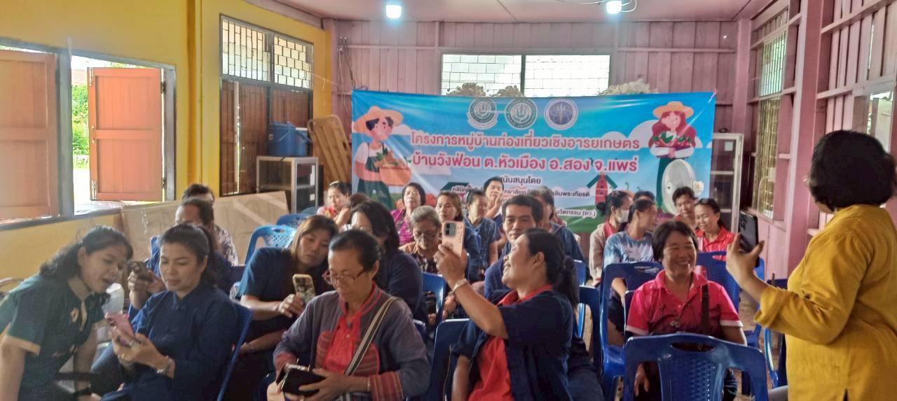 วันที่ 19 ก.ค. 68 จัดโครงการอบรมหลักสูตร"รูปแบบการท่องเที่ยวเชิงอารยเกษตร และการสำรวจทรัพยากร การท่องเที่ยวชุมชน ภายใต้โครงการ หมู่บ้านท่องเที่ยวเชิงอารยเกษตร บ้านวังฟ่อน ตำบลหัวเมือง อำเภอสอง จังหวัดแพร่ โดย ผู้ร่วมกิจกรรมและผู้มีส่วนได้ส่วนเสีย กลุ่มเป้าหมายหลักชาวบ้าน/กลุ่มเกษตรกรในชุมชนบ้านวังฟ่อน เยาวชนและผู้นำชุมชน จำนวน 50 คน ชุมชนได้รับองค์ความรู้ในการสร้างรูปแบบการท่องเที่ยวเชิงอารยเกษตร เกิดการมีส่วนร่วมของคนในพื้นที่ในการสำรวจและพัฒนาเส้นทางท่องเที่ยว เกิดความเข้าใจในการเชื่อมโยงการเกษตร วัฒนธรรม และการท่องเที่ยว ชุมชนสามารถจัดทำเส้นทางการท่องเที่ยวเชิงอารยเกษตรได้จริง เกิดเครือข่ายการท่องเที่ยวชุมชนร่วมกับหน่วยงานสนับสนุน ชุมชนมีโอกาสสร้างรายได้เสริมจากการท่องเที่ยว ควบคู่ไปกับการเกษตร บ้านวังฟ่อนมีภาพลักษณ์ใหม่ เป็น “หมู่บ้านต้นแบบการท่องเที่ยวเชิงอารยเกษตร”