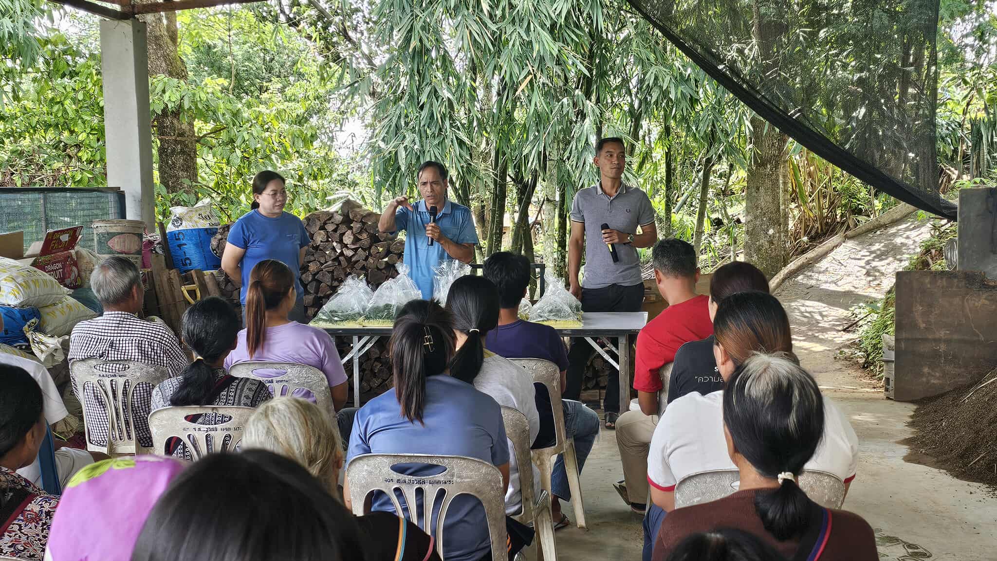 การเสริมสร้างศักยภาพผู้นำเกษตรกรเพื่อสร้างสร้างเครือข่ายการผลิตในรูปแบบอินทรีย์ผลักดันให้สมาชิกกลุ่มเข้าเป็นสมาชิกกลุ่ม PGS Organic เชียงราย ดำเนินการอบรมและลงพื้นที่ในชุมชนเบื้องต้น วันที่ 28 กันยายน 2568 วิทยากร คือ อาจารย์ ดร.ทัศนีย์ ธรรมติน บรรยายในหัวข้อเรื่อง การพัฒนาการเป็นผู้นำเกษตรกรและสร้างเครือข่ายการผลิตในรูปแบบอินทรีย์