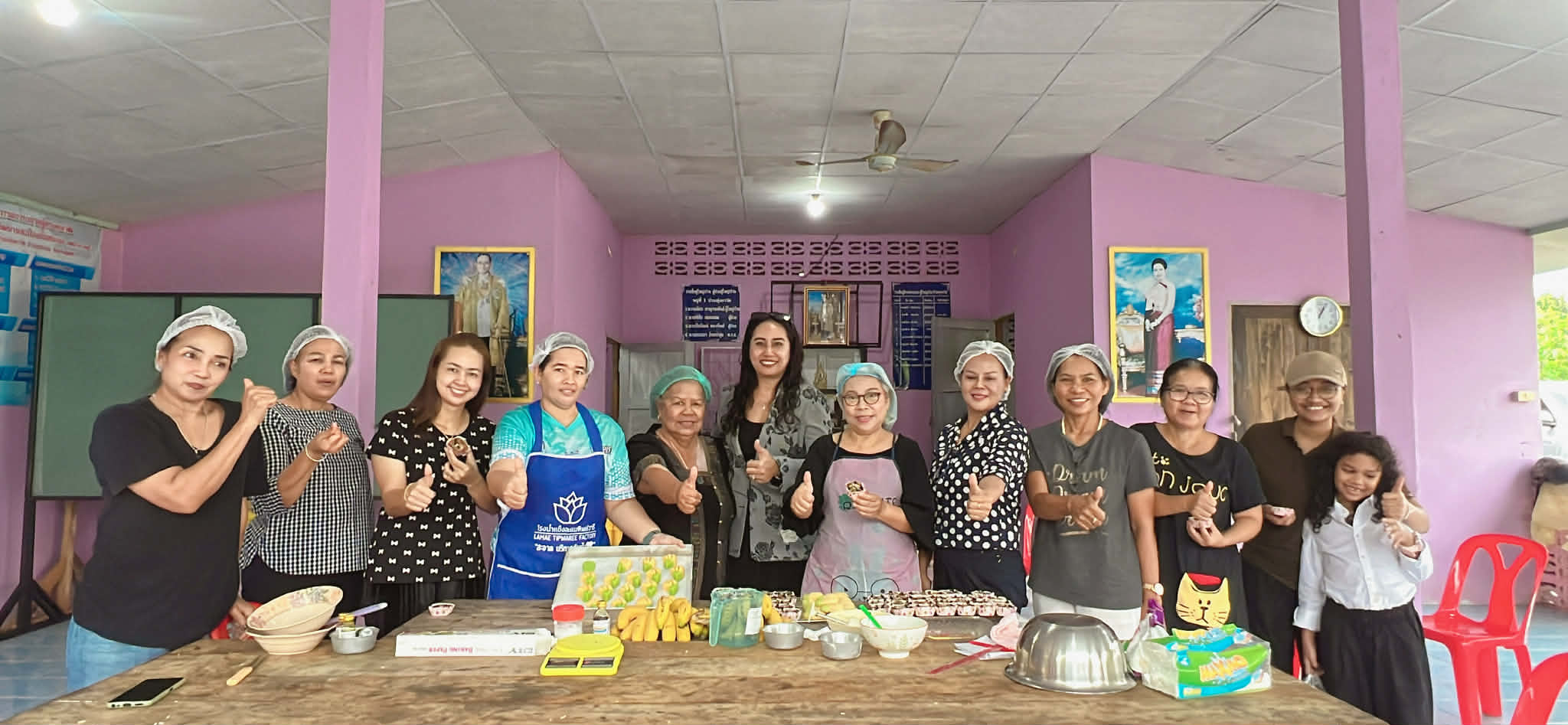 สรุปผลการดำเนินงาน กิจกรรมถ่ายทอดองค์ความรู้และฝึกอบรมการแปรรูปเค้กและทาร์ตกล้วยหอมทองวันที่ 19 พฤศจิกายน 2568 ภายใต้โครงการหมู่บ้านกล้วยหอมทองไซเดอร์ ประสบความสำเร็จตามเป้าหมาย ทั้งด้านการสร้างทักษะให้แก่สมาชิก การผลิตต้นแบบสินค้า การสร้างรายได้เสริม และการยกระดับความเข้มแข็งของชุมชน โดยมีทีมผู้เชี่ยวชาญจากมหาวิทยาลัยแม่โจ้–ชุมพร และการมีส่วนร่วมของผู้นำและสมาชิกชุมชนอย่างเข้มแข็ง ส่งผลให้เกิดผลิตภัณฑ์ใหม่ที่สามารถพัฒนาเป็นเชิงพาณิชย์และสร้างอัตลักษณ์สินค้าในพื้นที่ได้ในอนาคต