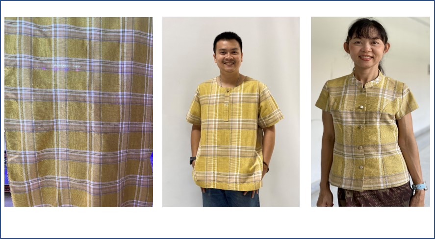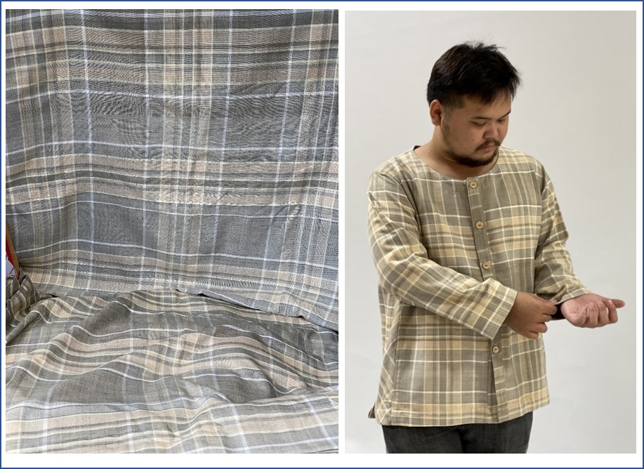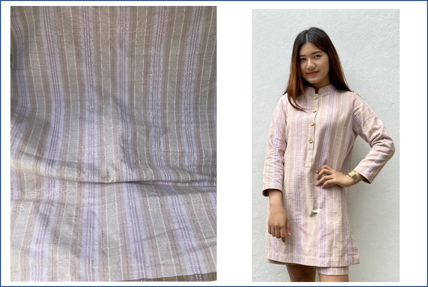 เทคนิคการทอ: ใช้วิธีการสืบเส้นยืนลายขัดธรรมดาสลับเกล็ดเต่า เส้นพุ่งสีเดียว