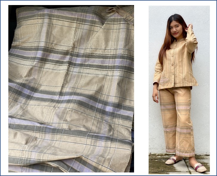 สีที่ใช้ย้อม : ได้จาก ใบสมอ+เปลือกมะม่วงป่า และเปลือกสมอ