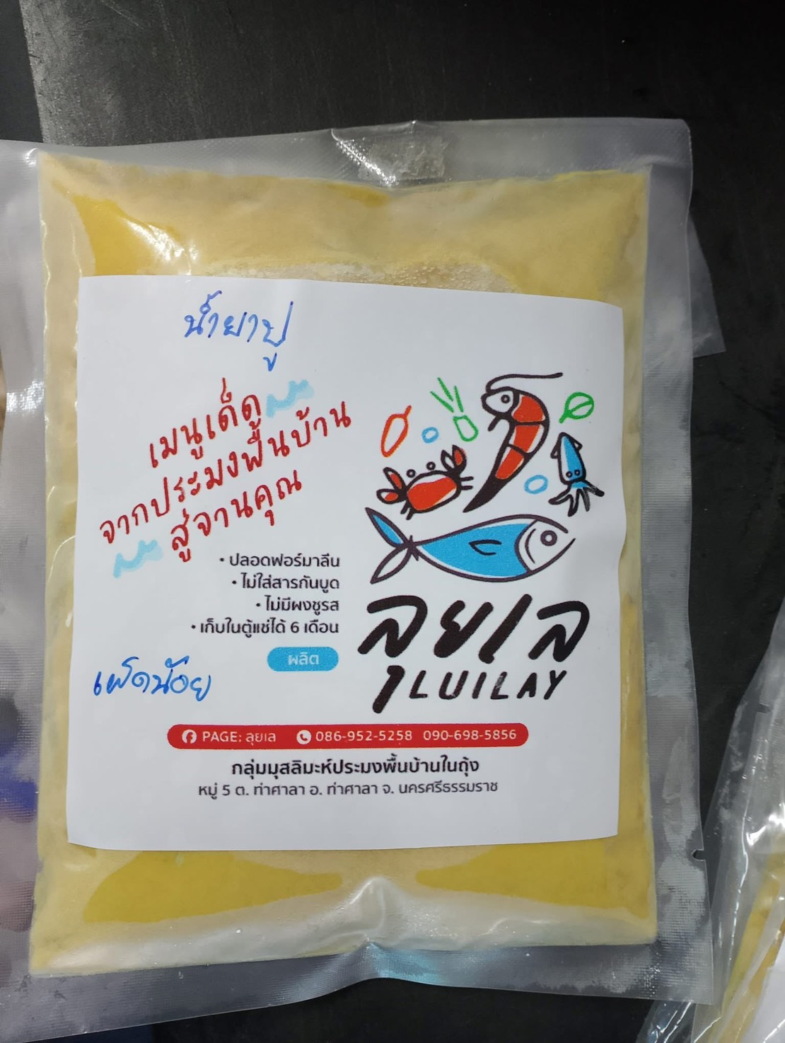 สอบถามรายละเอียดเพิ่มเติมได้ที่ Page ลุยเล ผลิตโดย กลุ่มมุสลิมะห์ประมงพื้นบ้านในถุ้ง ตำบลท่าศาลา อำเภอท่าศาลา โทร 086 952 5258 090 698 5856