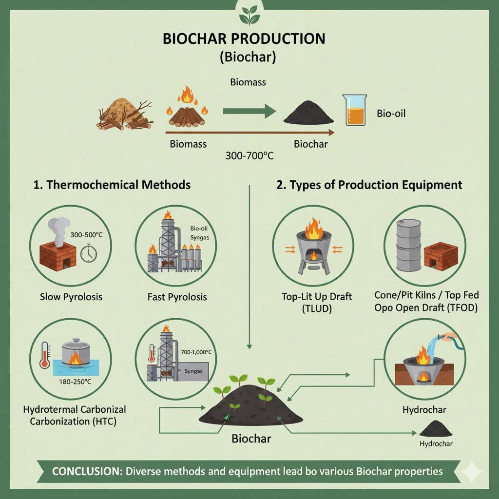 🌱 การผลิตถ่านไบโอชาร์ (Biochar)มี่กี่วิธี