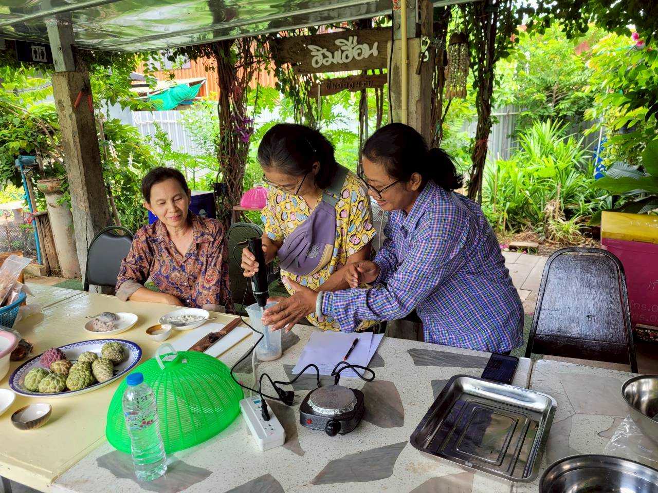 รายงานไตรมาส 4 การให้คำปรึกษาและข้อมูลเทคโนโลยีเพื่อชุมชน เรื่อง การศึกษาแนวทางการแก้ปัญหาผลผลิตน้อยหน่าตกเกรดของชุมชนบ้านน้ำจั้นโดยการแปรรูป