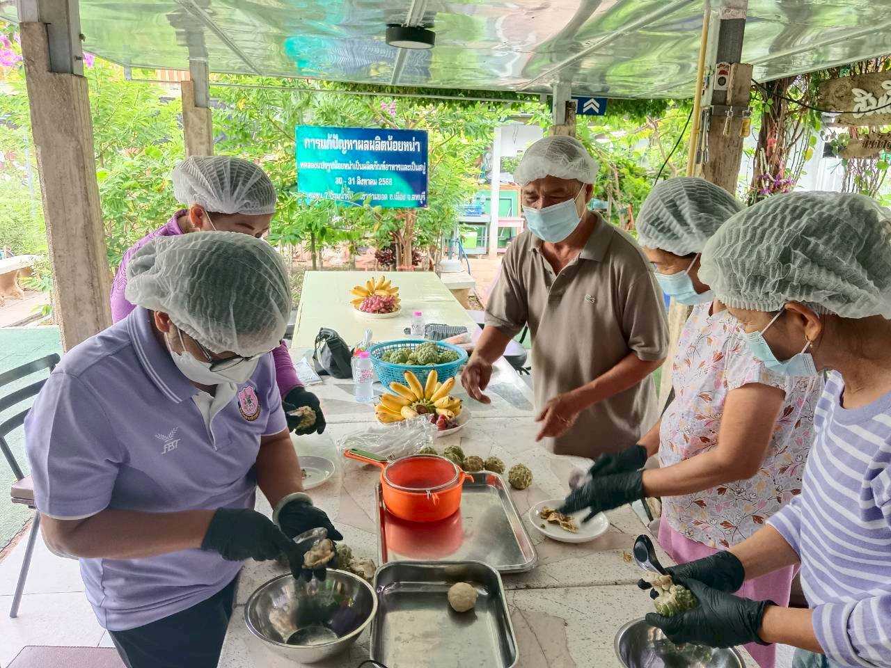 เมื่อวันที่ 30-31 สิงหาคม 2568 นำโดย ผู้ช่วยศาสตราจารย์ ดร.ภาราดร งามดี ได้ลงพื้นที่ ณ ชุมชนผู้ปลูกน้อยหน่าบ้านน้ำจั้น ตั้งอยู่ที่หมูที่ 2 ตำบลเขาสามยอด อำเภอเมือง จังหวัดลพบุรี ซึงผู้นำชุมชนได้แจ้งปัญหาเข้ามาทางสำนักงานคลินิกเทคโนโลยี มหาวิทยาลัยราชภัฏเทพสตรี เรื่อง การเน่าเสียของผลผลิตน้อยหน่า ทางคลินิกเทคโนโลยีจึงประสานงานไปทางผู้ช่วยศาสตราจารย์ ดร.ภาราดร งามดี ผู้ที่มีเชี่ยวชาญทางด้านวิทยาศาสตร์การอาหาร พร้อมทีมวิทยากร เพื่อลงพื้นที่แก้ปัญหาดังกล่าว ทางผู้ช่วยศาสตราจารย์ ดร.ภาราดร งามดี และทีมวิทยากรได้จัดทำองค์ความรู้และถ่ายทอดเทคโนโลยีการแปรรูปอาหารโดยการทำให้น้อยหน่าที่ได้รับผลกระทบแปรรูปเป็นกัมมี่น้อยหน่า และลูกอมน้อยหน่า ในส่วนการถ่ายทอดองค์ความรู้ลำดับที่ 2 คือการแปรรูปผลิตภัณฑ์น้อยหน่าให้เป็นสบู่กรีเซอรีน ทางผู้เข้าร่วมอบรมได้รับความรู้ที่ได้รับนำไปประยุกต์ใช้และแก้ปัญหาผลผลิตน้อยหน่าที่เสียหายได้