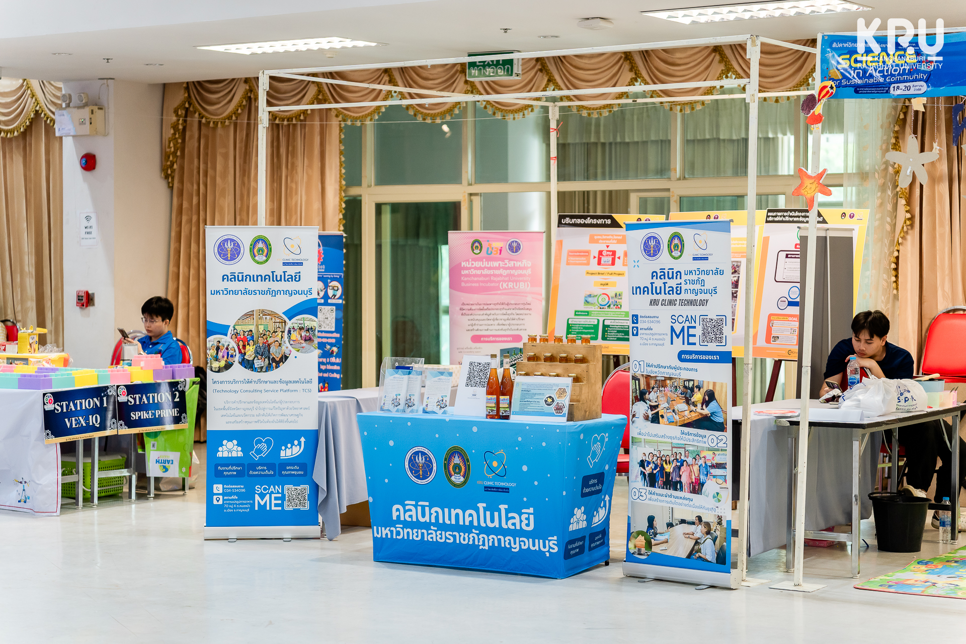 คลินิกเทคโนโลยี มหาวิทยาลัยราชภัฏกาญจนบุรี ร่วมออกบูธในกิจกรรม KRU Happy Fair 2025 "ตลาดนัด สำหรับบุคลากร นักศึกษา นักเรียน มหาวิทยาลัยราชภัฏกาญจนบุรี“ เพื่อประชาสัมพันธ์หน่วยงาน พร้อมทั้งให้บริการคำปรึกษาข้อมูลเทคโนโลยี องค์ความรู้ที่พร้อมถ่ายทอดสู่ชุมชน ณ ลานหน้าอาคาร 9 สำนักงานอธิการบดี มหาวิทยาลัยราชภัฏกาญจนบุรี