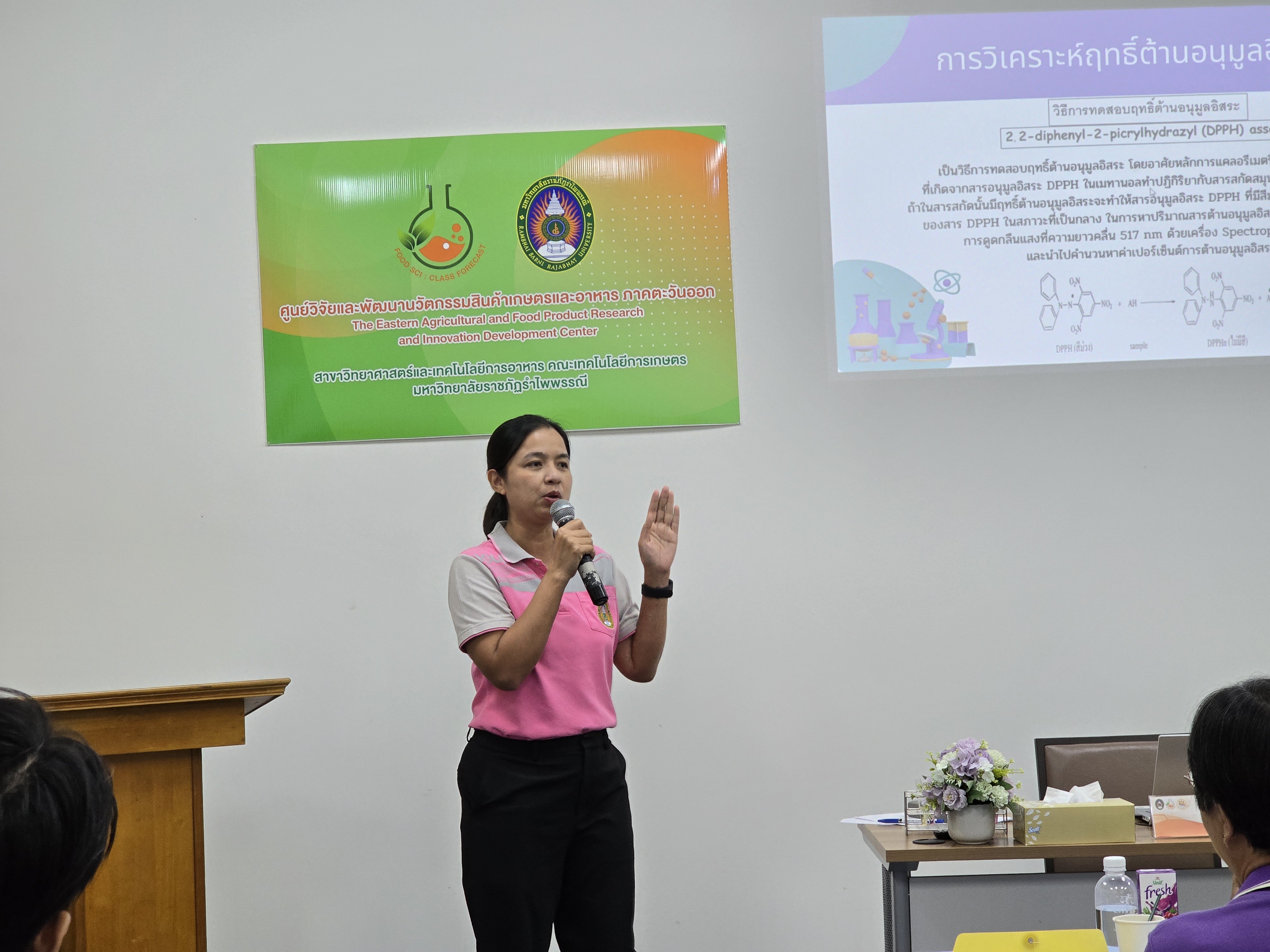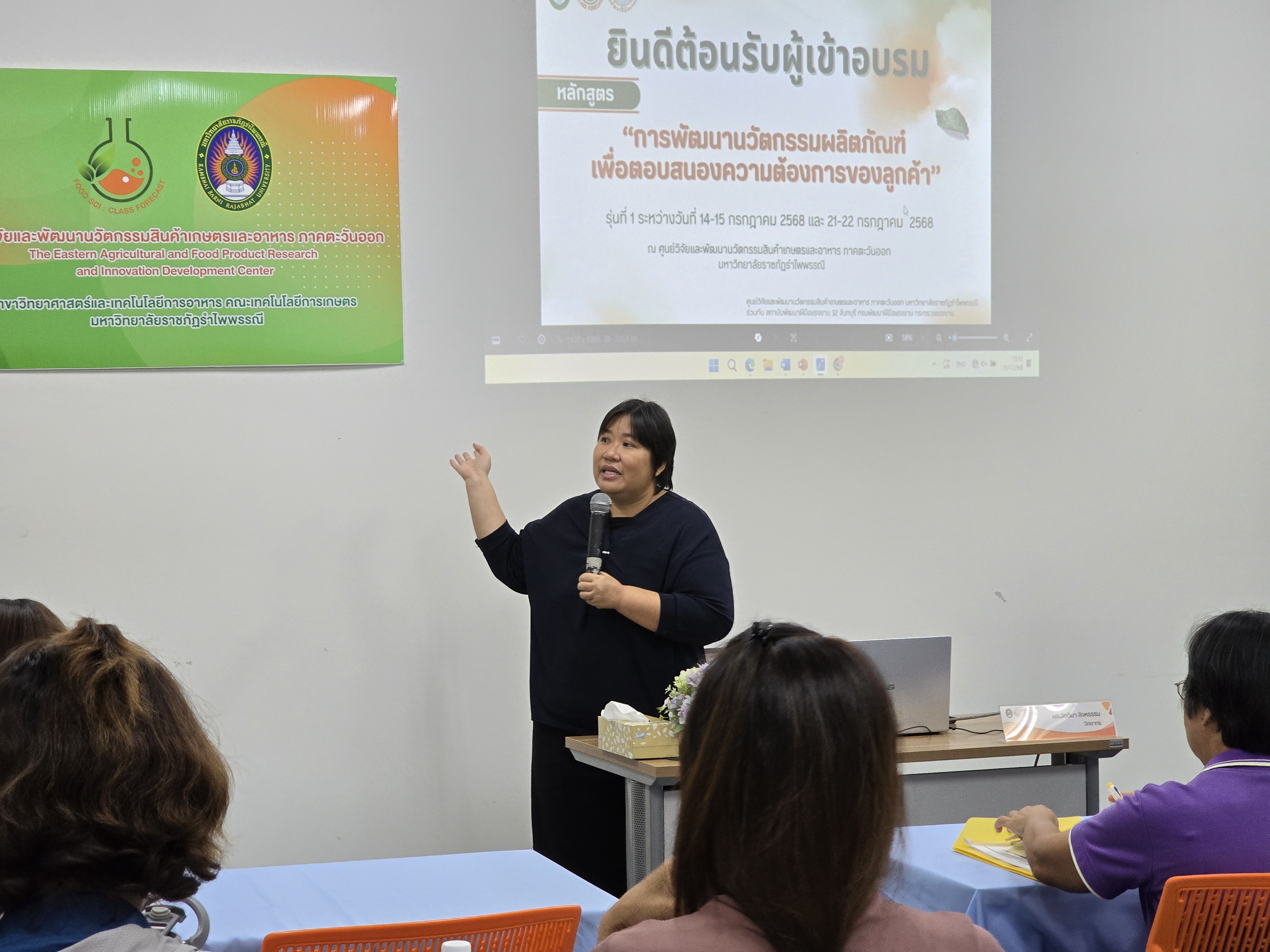 รายงานผลการดำเนินงาน ไตรมาสที่ 4 ประจำปีงบประมาณ 2568 เดือนกรกฎาคม 2568 - กันยายน 2568 ด้วยสถาบันพัฒนาฝีมือแรงงาน 32 จันทบุรี กรมพัฒนาฝีมือแรงงาน ได้ขอความอนุเคราะห์ศูนย์วิจัยและพัฒนานวัตกรรมสินค้าเกษตรและอาหาร ภาคตะวันออก คณะเทคโนโลยีการเกษตร มหาวิทยาลัยราชภัฏรำไพพรรณี และหน่วยงานที่เกี่ยวข้องภายมหาวิทยาลัย (คลินิกเทคโนโลยี ,หน่วยวิจัยและพัฒนาผลิตภัณฑ์สมุนไพรเพื่อสุขภาพและความงาม ,หน่วยบ่มเพาะวิสาหกิจ สำนักบริการวิชาการ) จัดอบรมเชิงปฏิบัติการภายใต้กิจกรรมพัฒนาศักยภาพแรงงานและผู้ประกอบการรองรับการ ขับเคลื่อน Eastern Thailand Food Valley หลักสูตร การพัฒนานวัตกรรมผลิตภัณฑ์ (Product Innovation) ในเรื่อง การพัฒนานวัตกรรมผลิตภัณฑ์เพื่อตอบสนองความต้องการของลูกค้า จำนวน 2 รุ่น คือ รุ่นที่ 1 ระหว่างวันที่ 14 - 15, 21 - 22 กรกฎาคม 2568 (4 วัน) รุ่นที่ 2 ระหว่างวันที่ 17 - 18, 21 - 25 กรกฎาคม 2568 (4 วัน) ณ ศูนย์วิจัยและพัฒนานวัตกรรมสินค้าเกษตรและอาหารภาคตะวันออก โดยกิจกรรมการอบรม มีหัวข้อการบรรยายและฝึกปฏิบัติ ดังต่อไปนี้ 1. การบรรยาย เรื่อง แนวโน้มธุรกิจและอุตสาหกรรม ,เทคนิคพัฒนาความคิดสร้างสรรค์ พัฒนานวัตกรรม และการพัฒนานวัตกรรมมังคุด เจลลี่ และสารสกัด โดยวิทยากร ผู้ช่วยศาสตราจารย์ ดร.เดือนรุ่ง เบญจมาศ ตำแหน่ง ที่ปรึกษาอธิการบดี 2. การบรรยาย เรื่อง แบบจำลองธุรกิจ Business Model Canvas,การวิเคราะห์ลูกค้าและกลุ่มเป้าหมาย ,กระบวนการคัดเลือกและประเมินไอเดียสร้างนวัตกรรม และการสร้างและทดสอบผลิตภัณฑ์ โดยวิทยากร ผู้ช่วยศาสตราจารย์จิตติมา สิงหธรรม อาจารย์สาขาวิชาการตลาด คณะวิทยาการจัดการ 3. การบรรยาย เรื่อง การสร้างแบรนด์และการสื่อสารการตลาด และการเปิดร้านค้าออนไลน์ โดยวิทยากร ผู้ช่วยศาสตราจารย์ ดร. บวรสรรค์ เจี่ยดำรง อาจารย์สาขาวิชาการจัดการนวัตกรรมการสื่อสาร คณะนิเทศศาสตร์ 4. การบรรยาย เรื่อง กฎหมายและมาตรฐานอาหาร โดยวิทยากร อาจารย์ขนิษฐา รัตน์ประโคน อาจารย์สาขาวิชานวัตกรรมและเทคโนโลยีการอาหาร คณะเทคโนโลยีการเกษตร 5. กิจกรรมบรรยายและฝึกปฏิบัติ การพัฒนาและยกระดับผลิตภัณฑ์แปรรูป กลุ่มที่ 1เรื่อง กัมมี่สละ ,กัมมี่มะปี๊ด ,เจลลี่นิ่มมะปี๊ด,วุ้นกรอบลำไย ,กิมจิหน่อไม้ โดยวิทยากร ผู้ช่วยศาสตราจารย์ จิรพร สวัสดิการ ,นางสาวกรรณิหาร์ แสงภู่ ,นางสาวสุวนันท์ เนื่องแนวน้อย จากศูนย์วิจัยและพัฒนานวัตกรรมสินค้าเกษตรและอาหารภาคตะวันออก กลุ่มที่ 2 เรื่อง สกัดสารจากเมล็ดลำไย ,สกัดสารเปลือกมังคุด,สกัดสารมะปี๊ด ,การเตรียมตัวอย่างสารต้านอนุมูลอิสระ ,การวัดสารต้าน น้ำลำไย น้ำมะปี๊ด น้ำมังคุด โดยว
