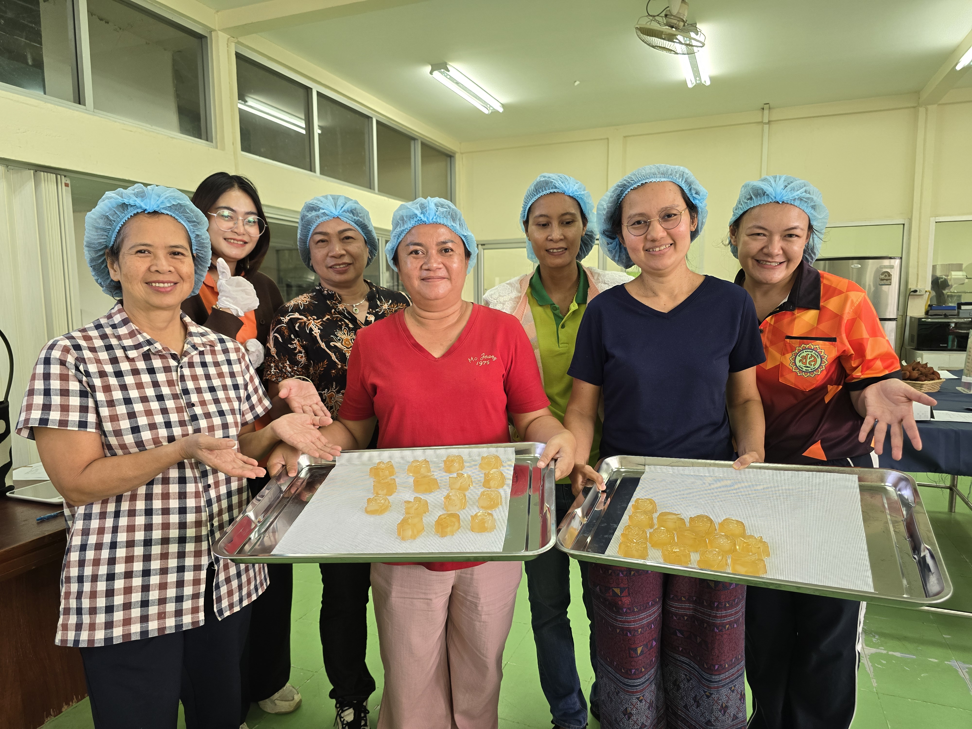 รายงานผลการดำเนินงาน ไตรมาสที่ 3 ประจำปีงบประมาณ 2568 เดือนเมษายน 2568 - มิถุนายน 2568 กิจกรรมที่ 4 ให้คำปรึกษาการพัฒนาศักยภาพสินค้าเกษตร จังหวัดตราด สำนักงานเกษตรและสหกรณ์จังหวัดตราด กำหนดจัดฝึกอบรมเกษตรกรโครงการ ฝึกอบรมเชิงปฏิบัติการเพื่อพัฒนาศักยภาพสินค้าเกษตรวิสาหกิจชุมชนบ้านห้วยแร้ง ภายใต้โครงการสินค้าเกษตรและบริการมูลค่าสูง 1 ท้องถิ่น 1 สินค้าเกษตรมูลค่าสูง ประจำปึงบประมาณ พ.ศ. 2568 โดยมี วัตถุประสงค์เพื่อดำเนินการพัฒนาผลิตภัณฑ์หรือบรรจุภัณฑ์เพื่อเพิ่มมูลค่าให้สูงขึ้นตามแผนความต้องการ การพัฒนาสินค้าเกษตรแปรรูปมูลค่าสูงของวิสาหกิจชุมชนบ้านห้วยแร้ง อำเภอเมือง จังหวัดตราด ชนิดพืชสับปะรดตราดสีทอง โดยใช้งานวิจัย/เทคโนโลยี/นวัตกรรมที่เกี่ยวข้องในการพัฒนาผลิตภัณฑ์ซึ่งวิสาหกิจชุมชน สามารถดำเนินการผลิตและจำหน่ายได้ในเชิงพาณิชย์อย่างต่อเนื่อง ในการนี้ สำนักงานเกษตรและสหกรณ์จังหวัดตราด จึงขอความอนุเคราะห์ท่านสนับสนุนวิทยากรจากมหาวิทยาลัยราชภัฏรำไพพรรณี เป็นวิทยากรอบรมให้ความรู้ โดยมีทีมวิทยากรไปให้ความรู้จำนวน 3 ท่าน ได้แก่ 1. ผู้ช่วยศาสตราจารย์ ดร.เดือนรุ่ง เบญจมาศ ตำแหน่ง ที่ปรึกษาอธิการบดี มหาวิทยาลัยราชภัฎรำไพพรรณี (ผู้เชี่ยวชาญด้านการแปรรูปผลผลิตทางการเกษตร) 2. นายคฑาวุธ สว่างดี ตำแหน่ง เจ้าหน้าที่คลินิกเทคโนโลยี 3. นางสาวสุวนันท์ เนื่องแนวน้อย ตำแหน่ง เจ้าหน้าที่วิจัยและพัฒนาผลิตภัณฑ์ ในโครงการฝึกอบรมเชิงปฏิบัติการเพื่อพัฒนาศักยภาพสินค้าเกษตรวิสาหกิจชุมชนบ้านห้วยแร้ง ภายได้โครงการสินค้าเกษตรและบริการมูลค่าสูง 1 ท้องถิ่น 1 สินค้าเกษตรมูลค่าสูง ประจำปีงบประมาณ พ.ศ.2568 ในวันที่ 6 มิถุนายน 2568 เวลา 08.30 – 17.00 น. ณ ห้องประชุมเกษตรจังหวัดตราด อำเภอเมือง จังหวัดตราด กิจกรรมการให้คำปรึกษาจะมีการบรรยายการผลิตอาหารให้เป็นไปตามข้อกำหนด GMP และการพัฒนาผลิตภัณฑ์คอมบูชาสับปะรด (เป็นผลิตภัณฑ์ที่วิจัยและพัฒนาโดยศูนย์วิจัยและพัฒนานวัตกรรมสินค้าเกษตรและอาหารภาคตะวันออก) วิทยากรบรรยาย โดย ผู้ช่วยศาสตราจารย์ ดร.เดือนรุ่ง เบญจมาศ และการฝึกปฏิบัติการแปรรูปผลิตภัณฑ์คอมบูชา สำเร็จรูป วิทยากรสาธิตและฝึกปฏิบัติโดย นายคฑาวุธ สว่างดี และ นางสาวสุวนันท์ เนื่องแนวน้อย มีผู้เข้ารับการบรรยายและฝึกอบรม จำนวน 12ท่าน ประกอบด้วยนักวิชาการส่งเสริมการเกษตร จำนวน 5 ท่าน และสมาชิกกลุ่มบ้านห้วยแร้ง จำนวน 7 ท่าน - ผลิตภัณฑ์ที่ได้คือ คอมบูชาสับปะรด - ผลิตภัณฑ์ที่ทำการต่อยอดหลังจากการอบรม คือ คอมบูชาสับปะรด ผสมขิง (พัฒนาต่อยอ