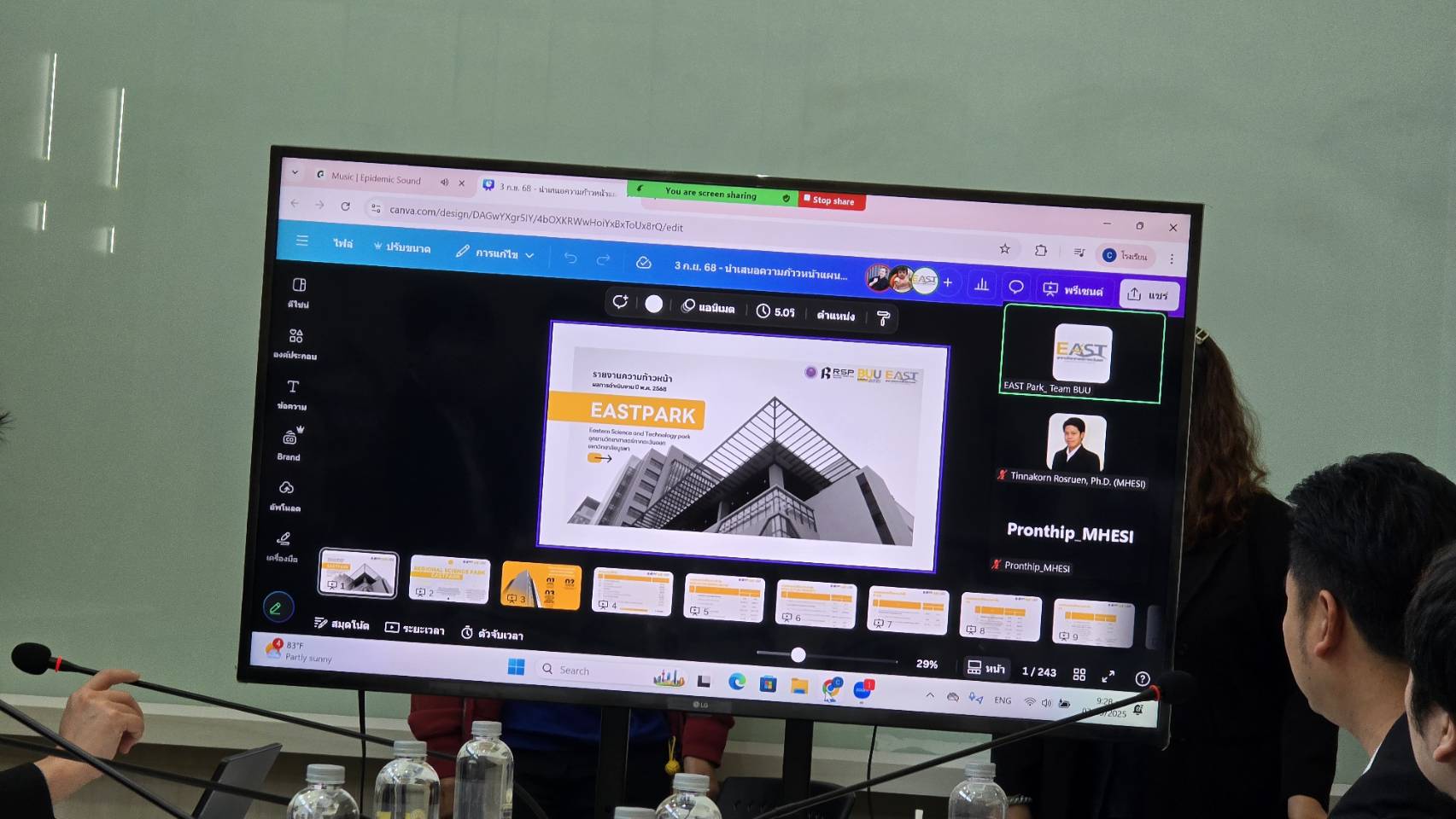 รายงานผลการดำเนินงาน ไตรมาสที่ 3 ประจำปีงบประมาณ 2568 เดือนเมษายน 2568 - มิถุนายน 2568 กิจกรรมที่ 5 การประชุมรายงานความก้าวหน้า การดำเนินงานและพัฒนาความร่วมมือกับเครือข่าย อุทยานวิทยาศาสตร์ภาคตะวันออก ปี พ.ศ. 2568 อุทยานวิทยาศาสตร์ มหาวิทยาลัยราชภัฏรำไพพรรณี เข้าร่วมการประชุมติดตาม การดำเนินงานและพัฒนาความร่วมมือกับเครือข่าย อุทยานวิทยาศาสตร์ภาคตะวันออก มหาวิทยาลัยบูรพา ในวันที่ 13 มิถุนายน 2568 ณ ชั้น ๒ อาคารศูนย์การเรียนรู้การเงินและการลงทุนธุรกิจระหว่างประเทศ มหาวิทยาลัยบูรพา รายละเอียด การประชุมติดตามความก้าวหน้าการดำเนินงานโครงการการประชุมติดตามการดำเนินงาน และพัฒนาความร่วมมือกับเครือข่าย อุทยานวิทยาศาสตร์ภาคตะวันออก มหาวิทยาลัยบูรพา โดยมีรายละเอียด ดังนี้ 1) ความก้าวหน้าการดำเนินงานอุทยานวิทยาศาสตร์ภูมิภาค ภายใต้โครงการ ส่งเสริมกิจการอุทยานวิทยาศาสตร์ (นิคมธุรกิจวิทยาศาสตร์ภูมิภาค) ของ อุทยานวิทยาศาสตร์ภาคตะวันออก มหาวิทยาลัยบูรพา ปีงบประมาณ พ.ศ. ๒๕๖๘ 2) ความก้าวหน้าการดำเนินงานโครงการยกระดับความพร้อมของเทคโนโลยี และส่งเสริมระบบนิเวศสำหรับสร้างผู้ประกอบการรุ่นใหม่ เพื่อตอบโจทย์การ พัฒนานวัตกรรมของประเทศ มีผู้แทนจากมหาวิทยาลัยราชภัฏรำไพพรรณี เข้าร่วม ดังนี้ 1. ผู้ช่วยศาสตราจารย์ ดร.อาภาพร บุญมี ตำแหน่ง ผู้ช่วยอธิการบดี กำกับดูแลอุทยานวิทยาศาสตร์ 2. อาจารย์สามารถ จันทนา ตำแหน่ง รองผู้อำนวยการสำนักบริการวิชาการ 3. นายพันธุ์ศักดิ์ สุทธิสวัสดิ์ ตำแหน่ง เจ้าหน้าที่บริหารงานทั่วไป สำนักบริการวิชาการ 4. นายคฑาวุธ สว่างดี ตำแหน่ง เจ้าหน้าที่คลินิกเทคโนโลยี 5. นายสหรัฐ ศรีครินทร์ ตำแหน่ง ผู้จัดการหน่วยบ่มเพาะวิสาหกิจ 6. นางสาวกนกวรรณ คงสวน ตำแหน่ง เจ้าหน้าที่หน่วยบ่มเพาะวิสาหกิจ ** งบประมาณ อุทยานวิทยาศาสตร์ มหาวิทยาลัยราชภัฏรำไพพรรณี รายงานโดย นายคฑาวุธ สว่างดี วันที่รายงาน 05/07/2568 [19530] |