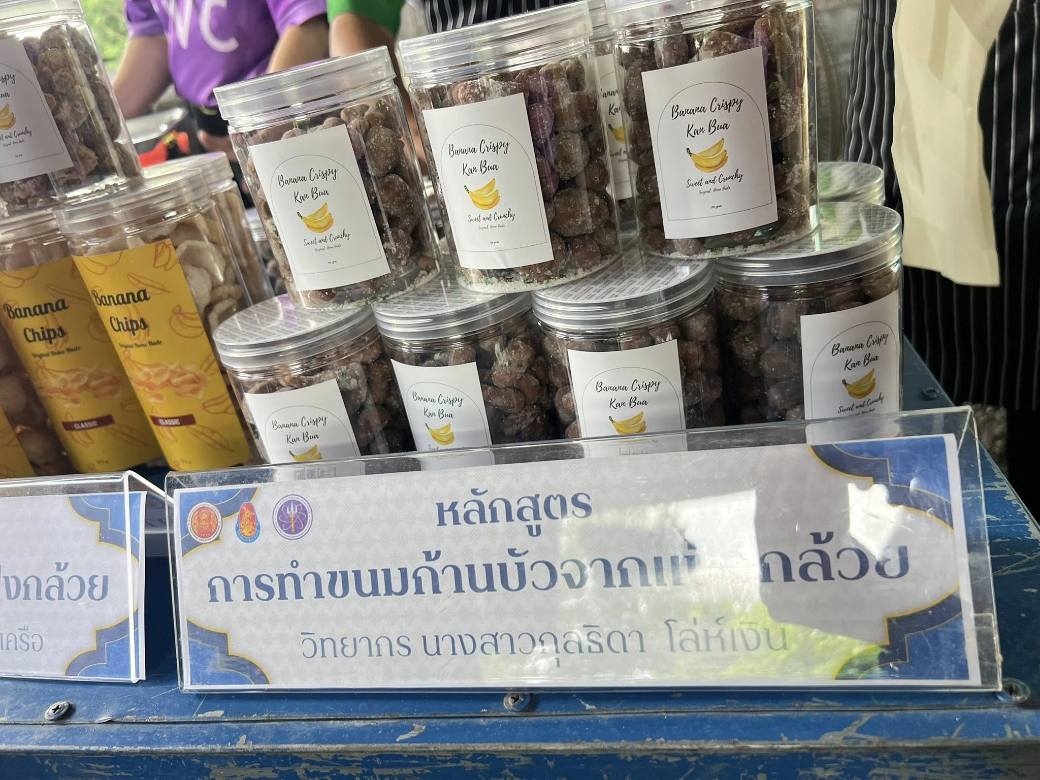 ผล ผลผลิตที่ได้จากการถ่ายทอดเทคโนโลยีอาหาร ได้แก่ ข้าวเกรียบจากแป้งกล้วย และขนมก้านบัวจากแป้งกล้วย