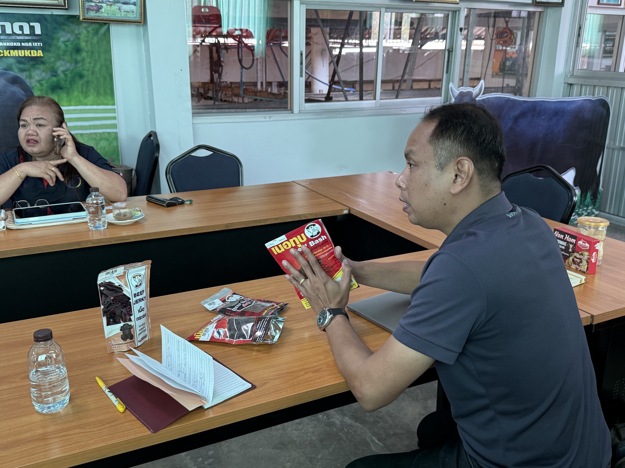 วันที่ 23 กรกฎาคม 2568 คลินิกเทคโนโลยี มหาวิทยาลัยเทคโนโลยีราชมงคลอีสาน วิทยาเขตสกลนคร ร่วมกับอาจารย์กนกอร นักบุญ จากสาขาวิทยาศาสตร์และเทคโนโลยีการอาหาร และอาจารย์พิลาสลักษณ์ ปานประเสริฐ จากสาขาสัตวศาสตร์ คณะทรัพยากรธรรมชาติ ได้ลงพื้นที่ให้บริการคำปรึกษาเชิงลึกแก่สหกรณ์การเกษตรหนองสูง จำกัด ณ อำเภอหนองสูง จังหวัดมุกดาหาร โดยมีวัตถุประสงค์เพื่อร่วมกันกำหนดแนวทางการแปรรูปวัตถุดิบจากวัวของสหกรณ์ฯ ให้กลายเป็นผลิตภัณฑ์ที่มีมูลค่าเพิ่ม พร้อมทั้งวางกลยุทธ์การตลาดเพื่อสร้างการรับรู้และขยายโอกาสเชิงพาณิชย์ให้กับผลผลิตของสหกรณ์ ในการหารือได้ให้ความสำคัญกับการแปรรูปชิ้นส่วนเนื้อรองและเครื่องใน เพื่อเพิ่มศักยภาพในการใช้ประโยชน์จากวัตถุดิบอย่างคุ้มค่าและเกิดประโยชน์สูงสุด ทั้งนี้การลงพื้นที่ครั้งดังกล่าวไม่เพียงแต่ช่วยเสริมสร้างองค์ความรู้ด้านการแปรรูปและการตลาดแก่สหกรณ์ฯ เท่านั้น แต่ยังเป็นการสร้างความร่วมมือระหว่างสถาบันการศึกษากับชุมชนในการพัฒนาผลผลิตทางการเกษตรอย่างยั่งยืนและต่อยอดไปสู่การสร้างรายได้ที่มั่นคงแก่เกษตรกรในอนาคต
