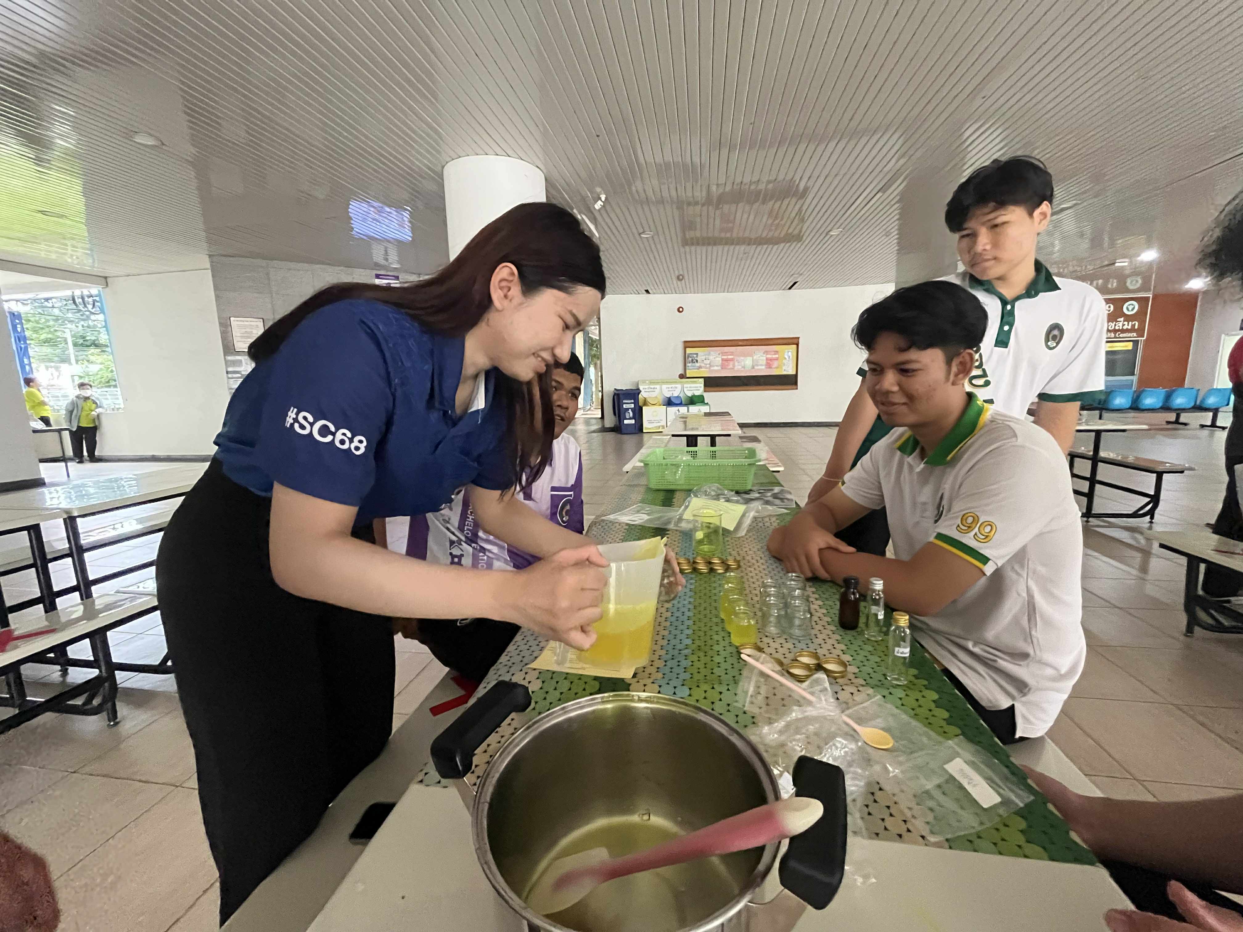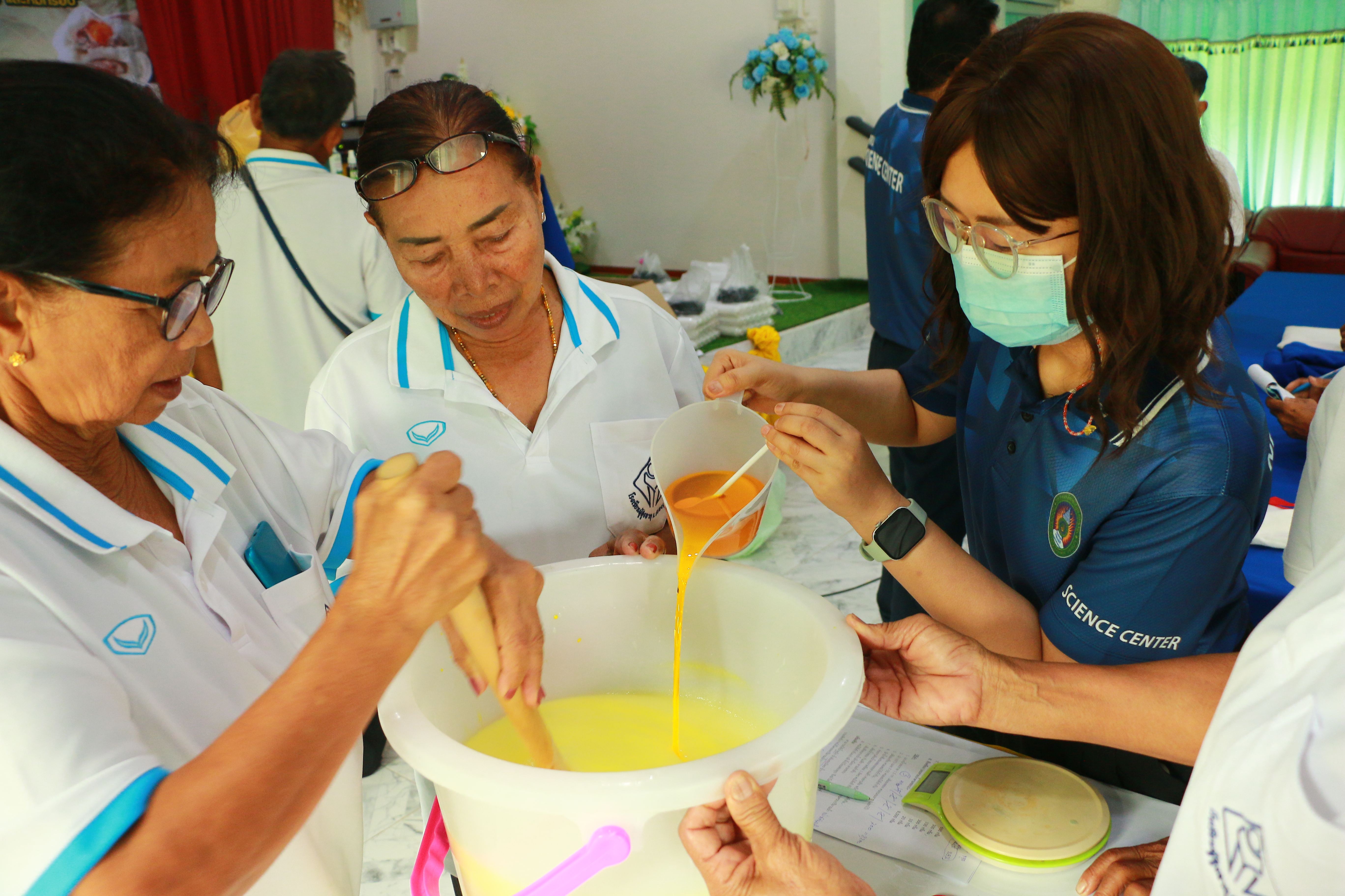 เมื่อวันที่ 29 พฤษภาคม 2568 คลินิกเทคโนโลยี ร่วมกับ โครงการอนุรักษ์พันธุกรรมพืชอันเนื่องมาจากพระราชดำริ สมเด็จพระกนิษฐาธิราชเจ้า กรมสมเด็จพระเทพรัตนราชสุดาฯ สยามบรมราชกุมารี จัดการอบรมเชิงปฏิบัติการเกี่ยวกับการแปรรูปสมุนไพรจากพืชท้องถิ่น โดยบุคลากรจากศูนย์วิทยาศาสตร์ ลงพื้นที่ให้บริการวิชาการ ณ ชุมชนมหาชัย ตำบลในเมือง อำเภอเมืองนครราชสีมา จังหวัดนครราชสีมา เพื่อดำเนินการจัดการอบรมเชิงปฏิบัติการในหัวข้อ “การผลิตผลิตภัณฑ์สเปรย์ตะไคร้หอมไล่ยุง และเทียนหอมอโรม่า”ภายในกิจกรรมดังกล่าว กลุ่มเป้าหมายซึ่งเป็นผู้สูงอายุในชุมชน จำนวน 50 คน ได้มีโอกาสเรียนรู้กระบวนการผลิตผลิตภัณฑ์จากสมุนไพรผ่านการถ่ายทอดองค์ความรู้โดยบุคลากรผู้เชี่ยวชาญจากศูนย์วิทยาศาสตร์ พร้อมฝึกปฏิบัติจริงในทุกขั้นตอนของการผลิต โดยผลิตภัณฑ์ที่ได้รับการถ่ายทอดความรู้ประกอบด้วย