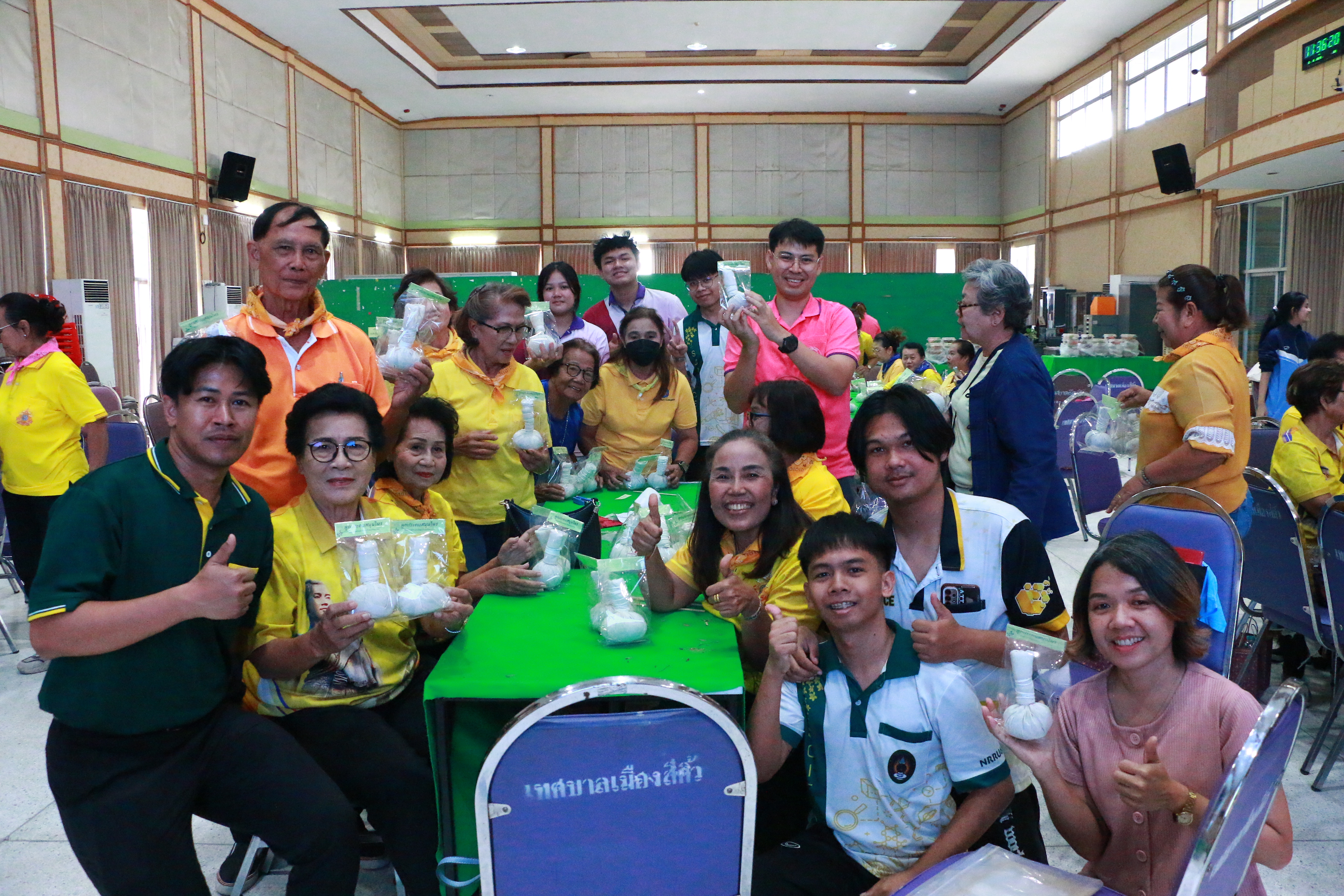 เมื่อวันที่ 5 สิงหาคม 2568 คลีนิกเทคโนโลยี พร้อมด้วยบุคคลากรศูนย์วิทยาศาสตร์เข้าร่วมเป็นวิทยากรในการอบรมเชิงปฏิบัติการภายใต้โครงการเรื่อง การบูรณาการนวัตกรรมวิทยาศาสตร์และเทคโนโลยีเพื่อพัฒนาท้องถิ่น ประจำปีงบประมาณ พ.ศ.2568 โดยนายยุทธนา ตอสกุล หมอบหมายให้ นางสาวพิชญานิน ปลื้มสุด นักวิชาการศึกษา นางสาวฐานิฏฐ์กานต์ ทวนไธสง นักวิทยาศาสตร์ และนายวินัฐ จิตรเกาะ นักวิทยาศาสตร์ เป็นวิทยากรประจำกลุ่ม พร้อมด้วยนายธีระวัฒน์ เรืองมะเริง เจ้าหน้าที่คลีนิกเทคโนโลยี ลงพื้นที่บริการวิชาการ ณ เทศบาลเมืองสีคิ้ว อำเภอสีคิ้ว จังหวัดนครราชสีมา ทั้งนี้เป็นการลงพื้นที่แบ่งกลุ่มฝึกปฏิบัติการวิธีการทำผลิตภัณฑ์ชาจากใบหม่อน และการทำลูกประคบสมุนไพร ซึ่งโครงการดังกล่าวจัดขึ้นเพื่อบูรณาการวิชาการการพัฒนานวัตกรรม วิทยาศาสตร์และเทคโนโลยีกับการเรียนการสอน การบริการวิชาการและงานวิจัย โดยบุคลากรผู้เชี่ยวชาญจากศูนย์วิทยาศาสตร์ รวมถึงนักศึกษาคณะวิทยาศาสตร์และเทคโนโลยี โดยกลุ่มเป้าหมายเป็นกลุ่มผู้งสูงอายุในชุมชนจำนวน 125 คน ได้ลงมือฝึกปฏิบัติจริงในทุกขั้นตอนการทำผลิตภัณฑ์