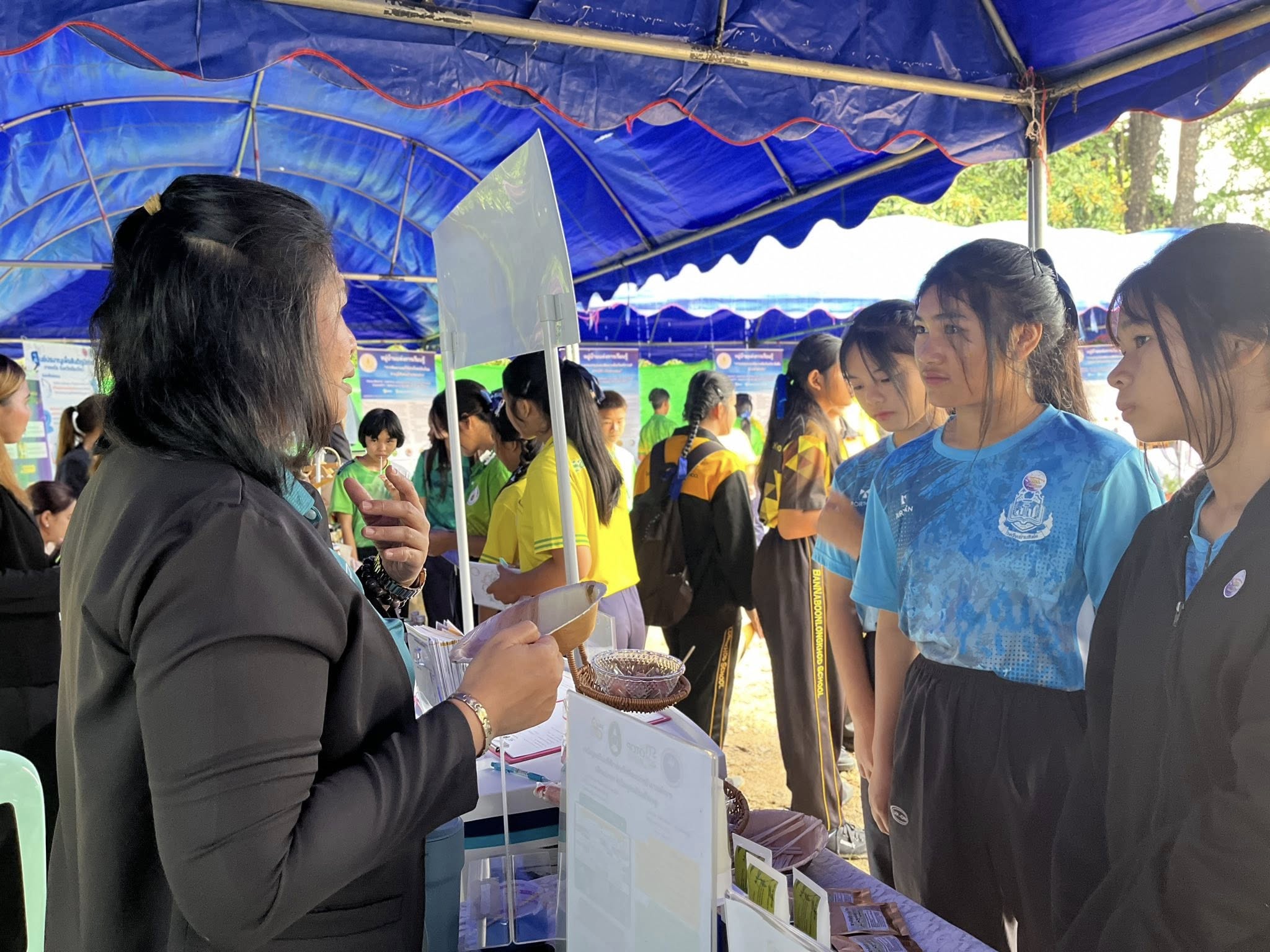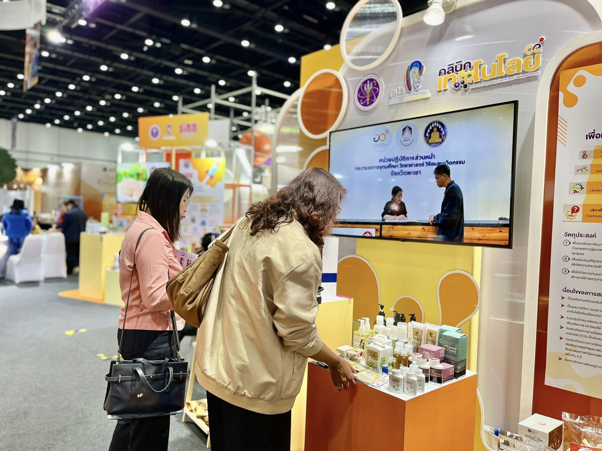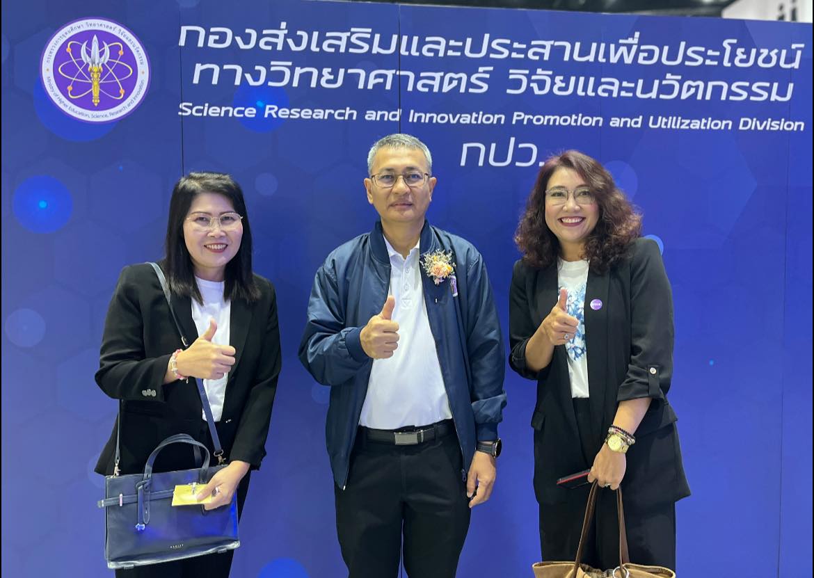 โดยได้รับเกียรติจาก ดร.ชาญวิทย์ ตรีเดช ผู้อำนวยการกลุ่มส่งเสริมธุรกิจเทคโนโลยีและนวัตกรรม กองส่งเสริมและประสานเพื่อประโยชน์ทาง วิทยาศาสตร์ วิจัยและนวัตกรรม (กปว.) พร้อมคณะเยี่ยมชมบูธและให้แนวทางต่อยอดการพัฒนาผลิตภัณฑ์และการตลาด