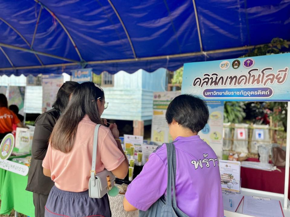 มหาวิทยาลัยราชภัฏอุตรดิตถ์ โดย ผศ.ดร.กิตติ เมืองตุ้ม ผู้อำนวยการสถาบันวิจัยและพัฒนา รศ.ดร.สิริวดี พรหมน้อย รองผู้อำนวยการศูนย์วิทยาศาสตร์และเทคโนโลยี และคลินิคเทคโนโลยี ร่วมกับผู้ประกอบการกลุ่มวิสาหกิจชุมชนส่งเสริมอาชีพบ้านหาดไก่ต้อย จังหวัดอุตรดิตถ์ และกลุ่มวิสาหกิจชุมชนแปรรูปมะไฟจีนบ้านกอก จังหวัดน่าน จัดแสดงผลงานและขยายผลด้านการตลาดสำหรับการยกระดับสินค้า OTOP ด้วยวิทยาศาสตร์ เทคโนโลยีและนวัตกรรม