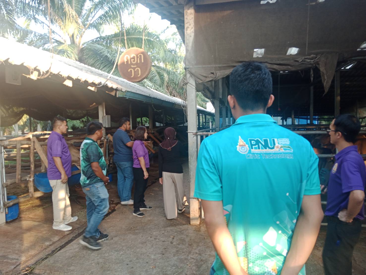 เมื่อวันที่ 8 พฤษภาคม 2568 ทางคลินิกเทคโนโลยี ได้ร่วมอบรมถ่ายทอดเทคโนโลยี ให้กับเกษตรกรผู้เลี้ยงโคเนื้อ ภายใต้โครงการ การเพิ่มประสิทธิภาพการบริหารจัดการฟาร์มโคเนื้อด้วยเทคโนโลยีและนวัตกรรมเพื่อยกระดับเศรษฐกิจของพื้นที่จังหวัดนราธิวาส โดยกิจกรรมดังกล่าว มีผู้เข้าร่วม 20 คน จัดขึ้น ณ ห้อง AG 509 คณะเกษตรศาสตร์ มหาวิทยาลัยนราธิวาสราชนครินทร์ ในกิจกรรม ได้มีการถ่ายทอดเทคโนโลยี กระบวนการ และขั้นตอนในการเตรียมพื้นหนังโค สำหรับนำมา พัฒนาเป็นผลิตภัณฑ์แปรรูป แคบวัว และเนื้อแดดเดียวพร้อมทาน โดยมีกระบวนการทำดังนี้ 1. การทำแคบวัวเป็นกระบวนการที่ต้องใช้ความประณีตและความสะอาด เริ่มจากการคัดเลือกหนังวัวที่สดใหม่ ไม่มีขนตกค้าง จากนั้นล้างหนังวัวให้สะอาด และขูดขนออกให้หมด ก่อนจะนำไปต้มในน้ำเดือดพร้อมเกลือเล็กน้อย เพื่อให้หนังนุ่มและลดกลิ่นคาว เมื่อต้มจนสุกดีแล้วจึงนำขึ้นมาพักให้เย็น แล้วหั่นเป็นชิ้นขนาดพอดีคำหลังจากนั้น ให้นำชิ้นหนังวัวที่หั่นแล้วไปตากแดดแรงประมาณ 1–2 วันจนแห้งสนิท หรือใช้ตู้อบลมร้อนแทนหากต้องการความรวดเร็ว เมื่อแห้งดีแล้วจึงนำไปทอดครั้งแรกด้วยไฟอ่อน เพื่อให้น้ำมันแทรกเข้าไปในเนื้อหนัง แล้วพักไว้ให้เย็นสนิทจากนั้นจึงทอดซ้ำครั้งที่สองด้วยไฟแรงจัด เพื่อให้หนังวัวพองตัวและกรอบฟูเต็มที่ เมื่อลงจากกระทะให้สะเด็ดน้ำมันและพักให้เย็นก่อนบรรจุลงในถุงหรือภาชนะที่ปิดสนิท เพื่อป้องกันความชื้นและคงความกรอบของแคบวัวให้นานที่สุด โดยอาจปรุงรสเพิ่มเติมในขั้นตอนสุดท้ายเพื่อเพิ่มความหลากหลายของรสชาติ เช่น รสเค็ม รสพริก หรือสมุนไพรต่างๆ ตามต้องการ