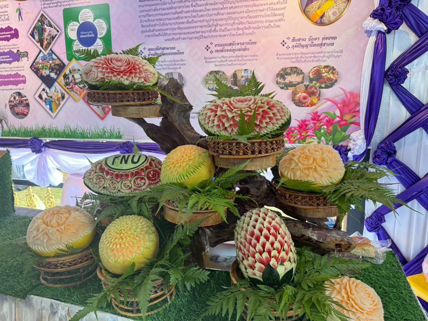 เมื่อวันที่ 16 – 22 กันยายน 2568 ทางคลินิกเทคโนโลยี มหาวิทยาลัยนราธิวาสราชนครินทร์ ได้ร่วมจัดบูทนิทรรศการ ภายใต้หัวข้อ “สมเด็จพระกนิษฐาธิราชเจ้า กรมสมเด็จพระเทพรัตนราชสุดา ฯ กับงานแกะสลักอาหารไทย” ในงานของดีจังหวัดนราธิวาส ครั้งที่ 48 ประจำปี 2568 เพื่อ เผยแพร่พระปรีชาสามารถและพระปณิธานของสมเด็จพระกนิษฐาธิราชเจ้า ในการสืบสานและอนุรักษ์งานศิลปวัฒนธรรมไทย โดยเฉพาะงานแกะสลักอาหารไทย ให้ประชาชนและเยาวชนได้เรียนรู้และซาบซึ้งในคุณค่าของศิลปะไทย ตลอดจนสร้างแรงบันดาลใจในการสืบทอดศิลปะประเพณีไทยสู่อนาคต รายงานโดย นายวิรัตน์ หน่อแดง วันที่รายงาน 29/09/2568 [20369] |